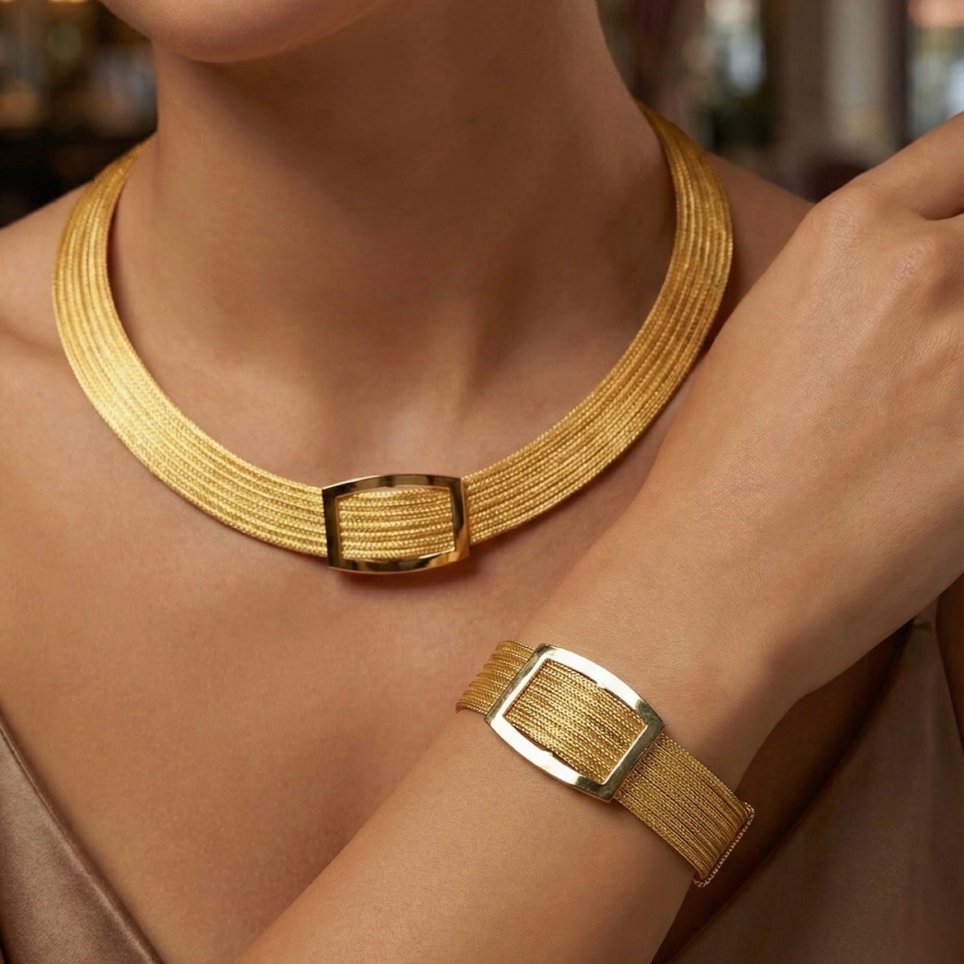 22K Gold Renk Kayzer Model Gümüş Set Takım