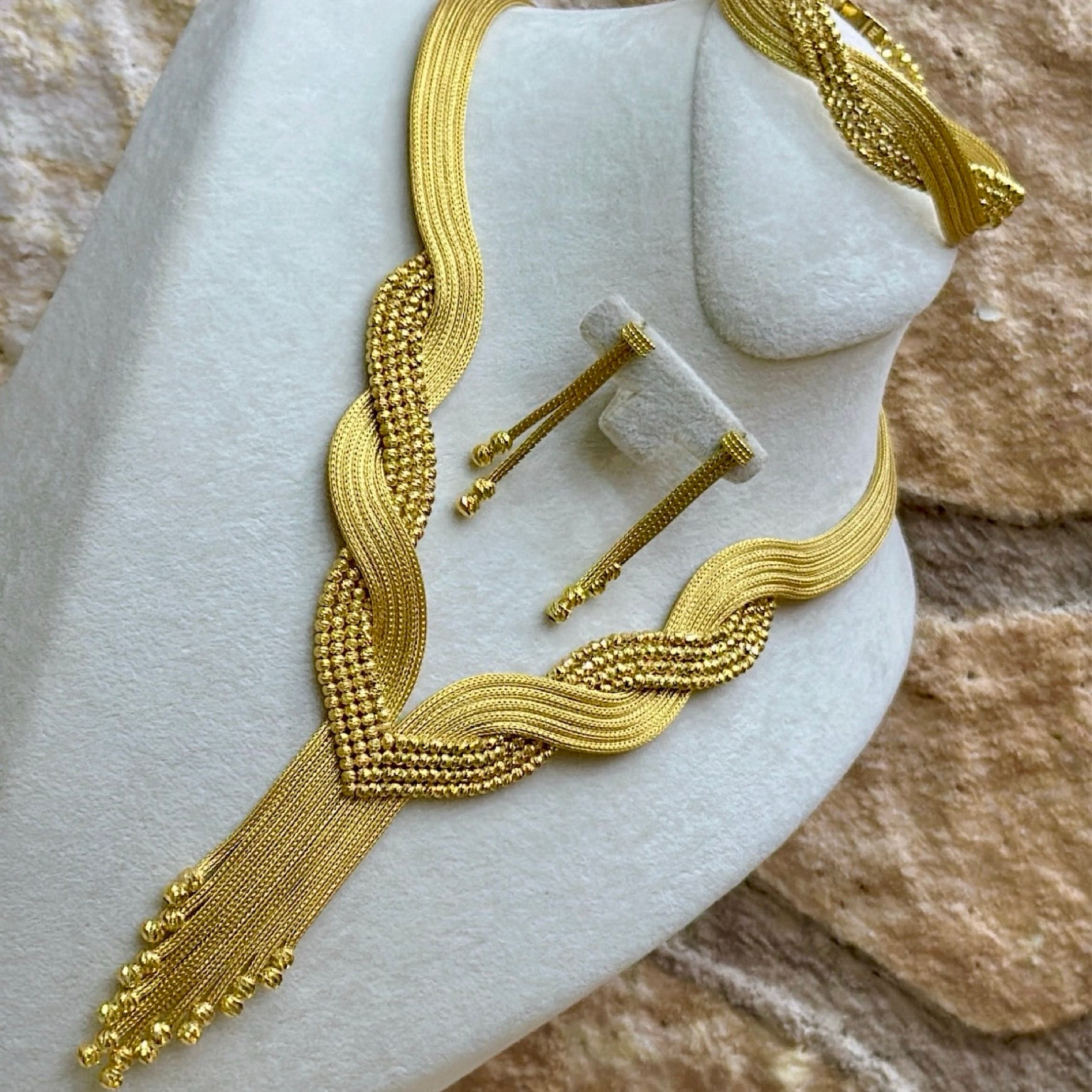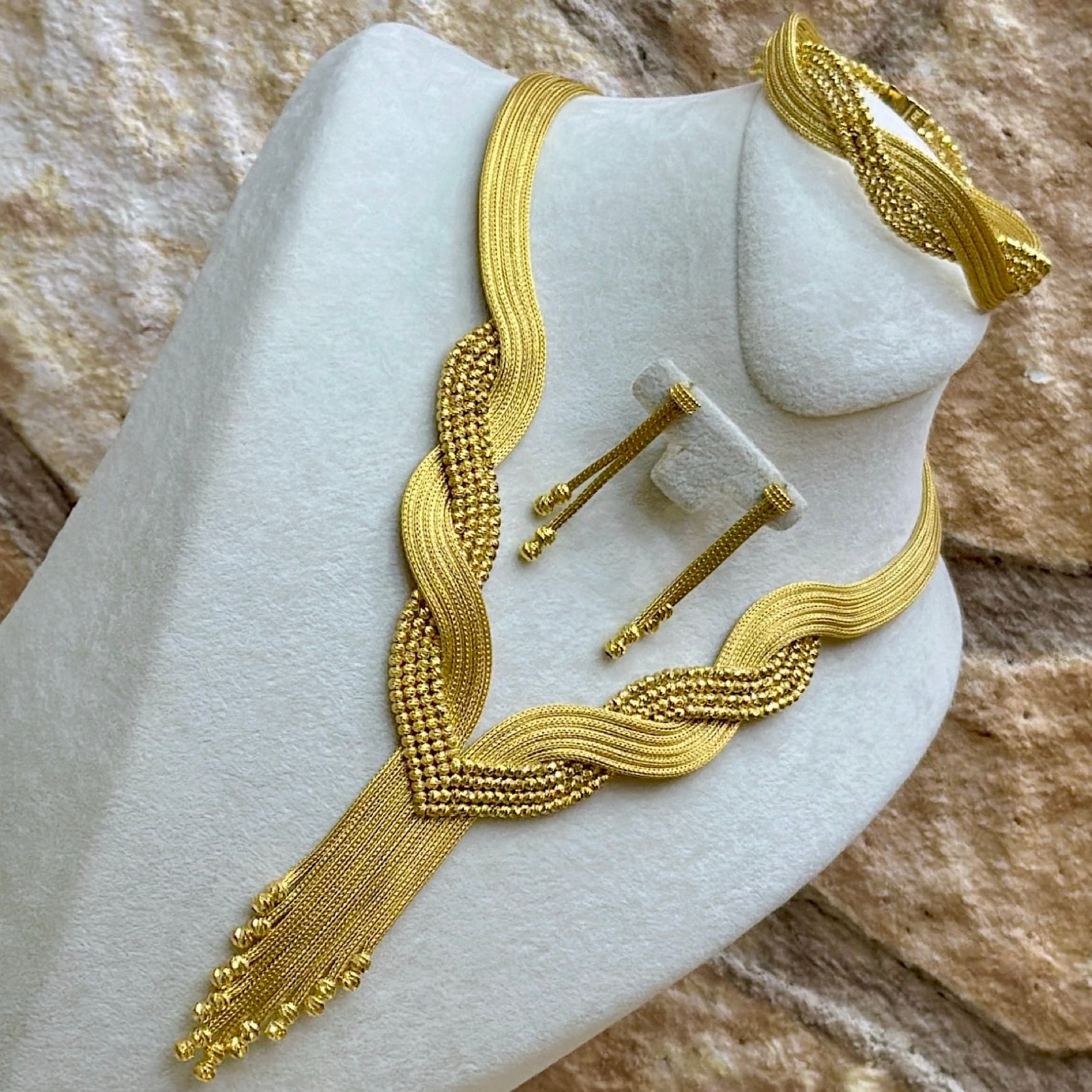*Dört Sıralı Kayzer Model Gümüş Set Takım(Bileklik-Gerdanlık-Küpe)