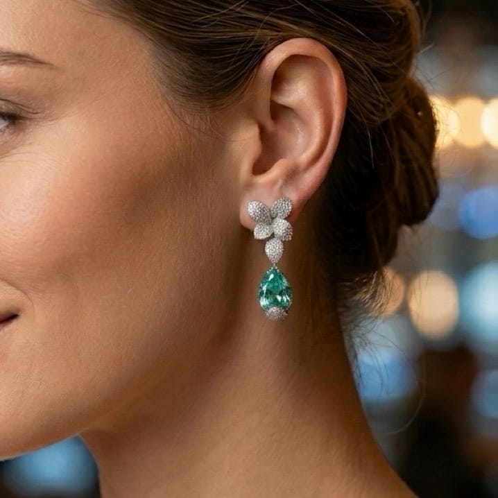 *Aquamarine Taşlı Gümüş Küpe