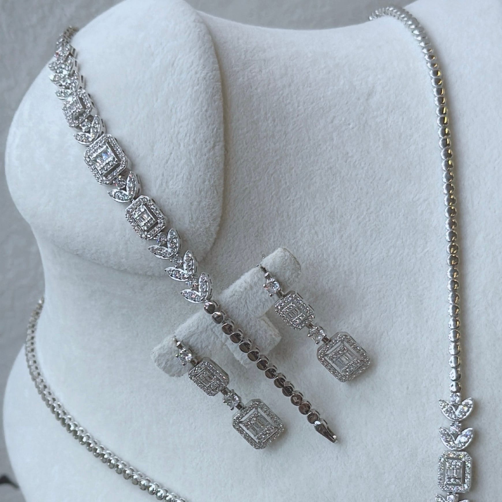 Pırlanta Montür Dört Sıralı Model Gümüş Set
