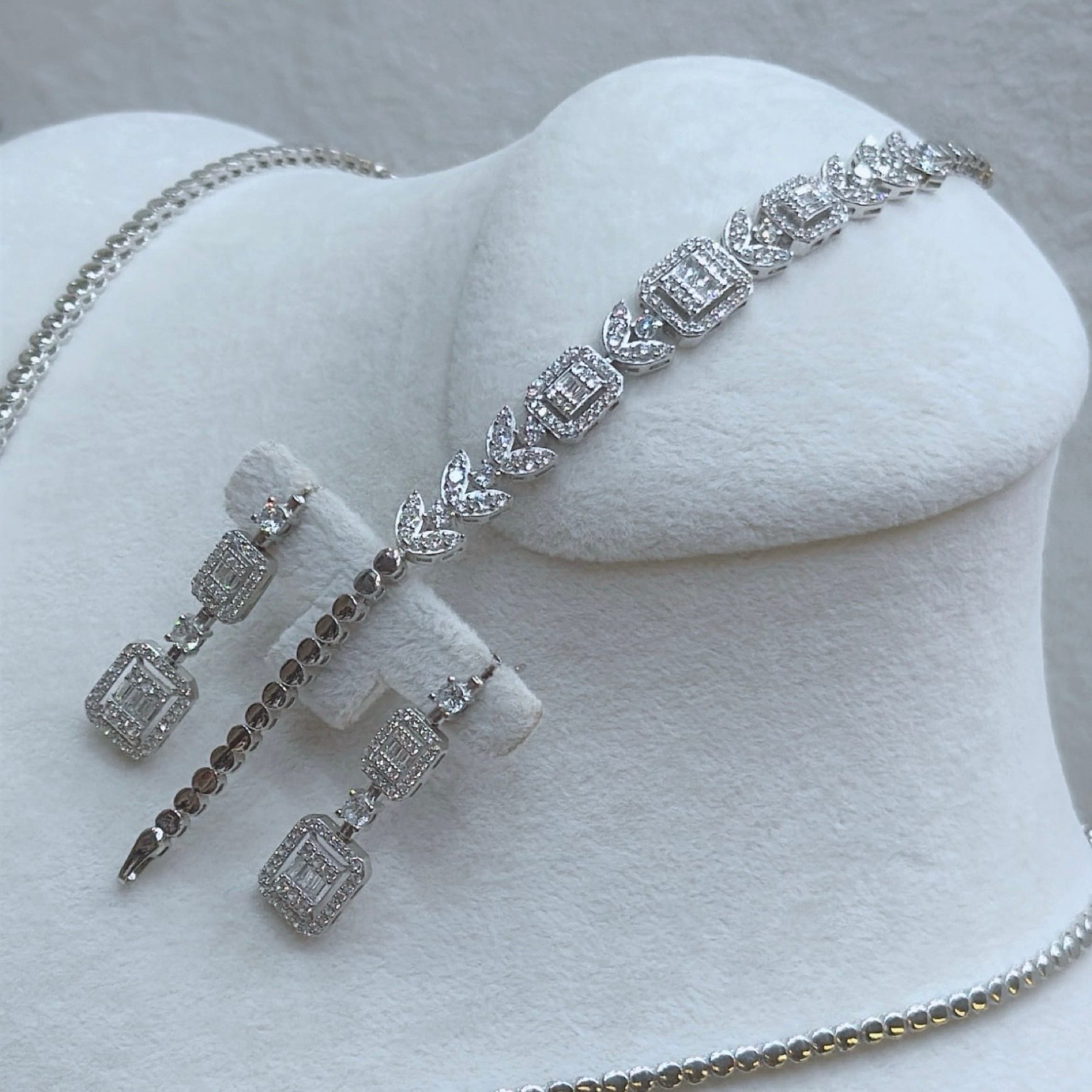 Baget Model Pırlanta Montür Gümüş Set Takım