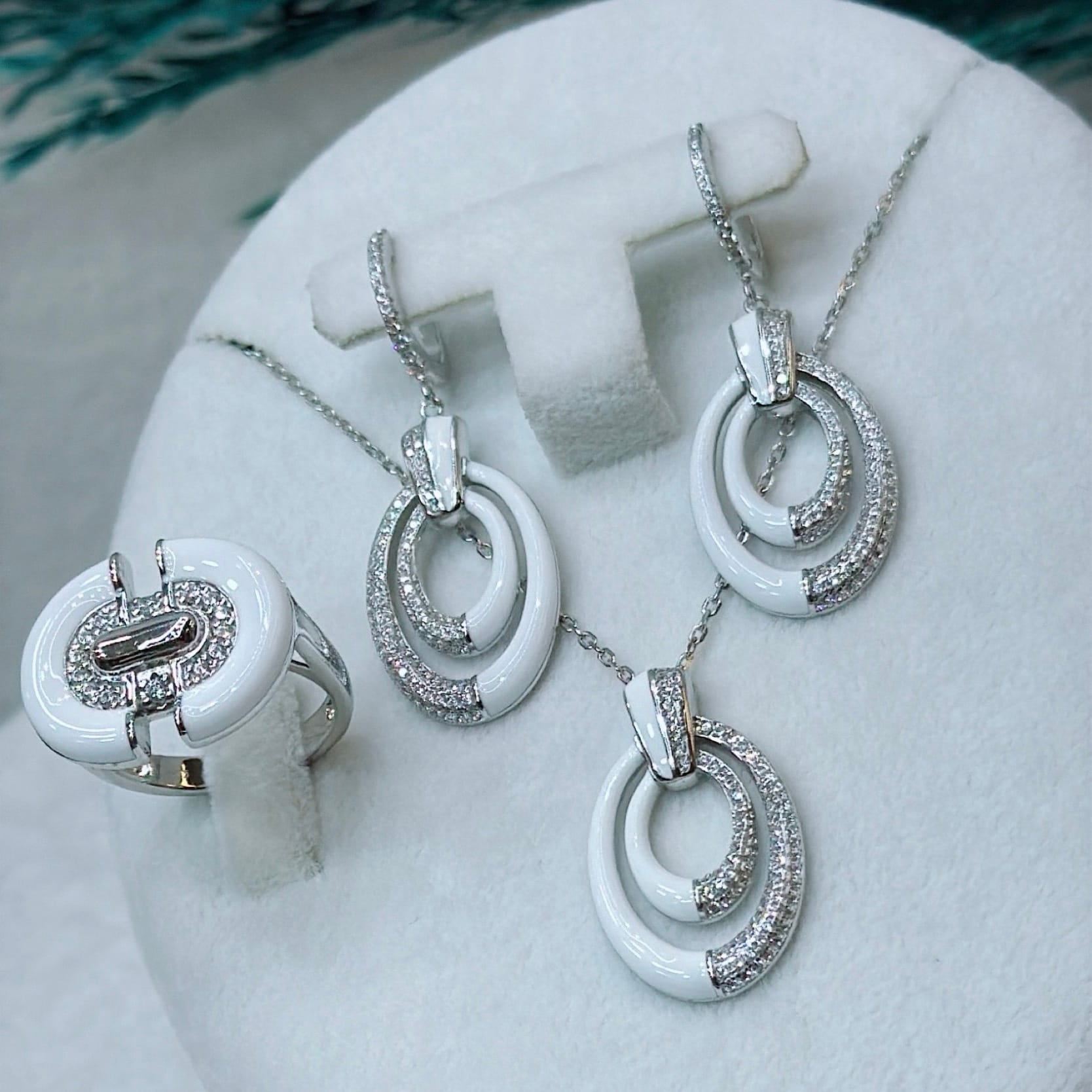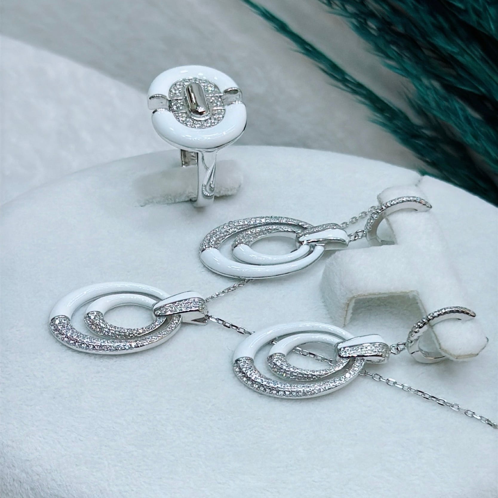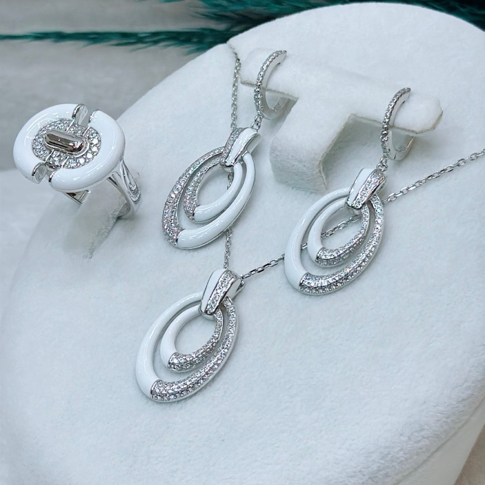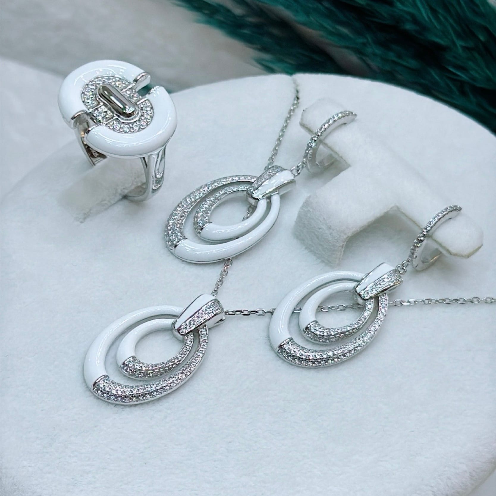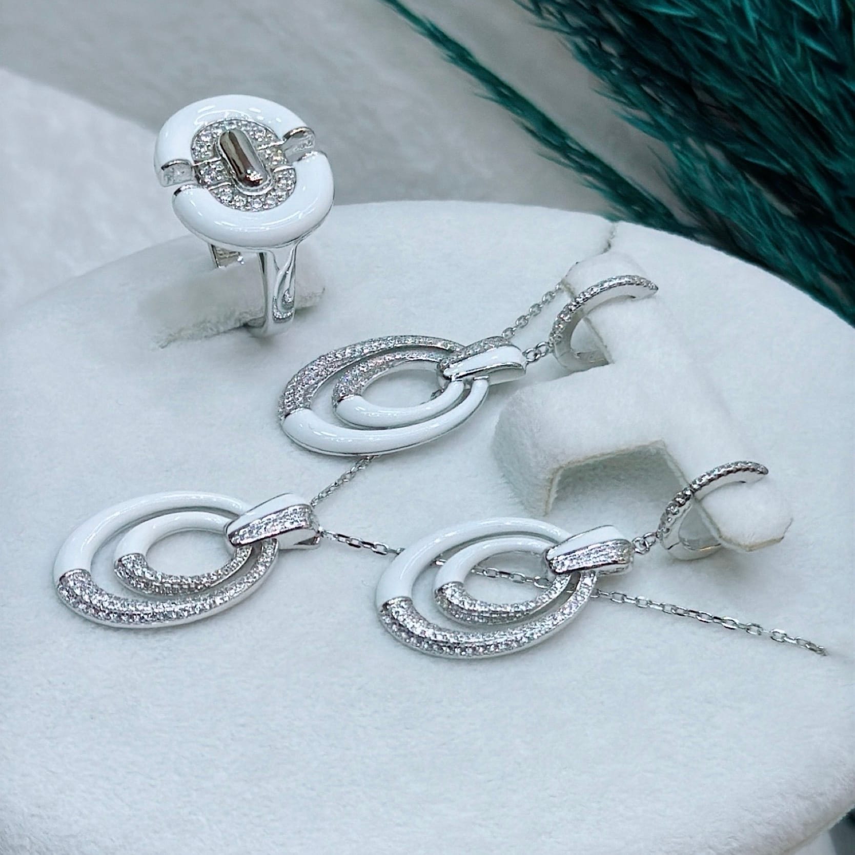 *Zirkon Taşlı &Beyaz Mineli Model Özel Üretim Üçlü Set Takım