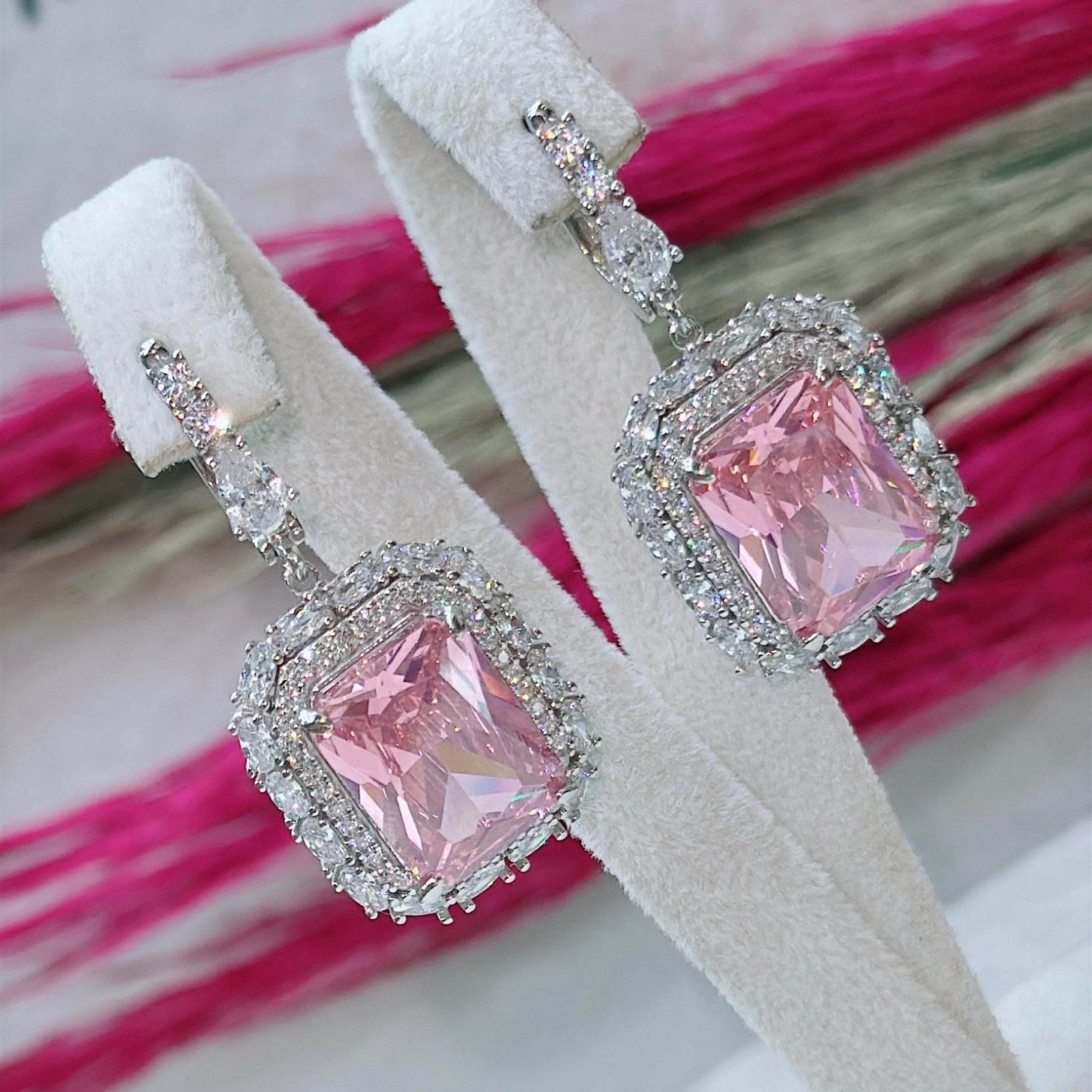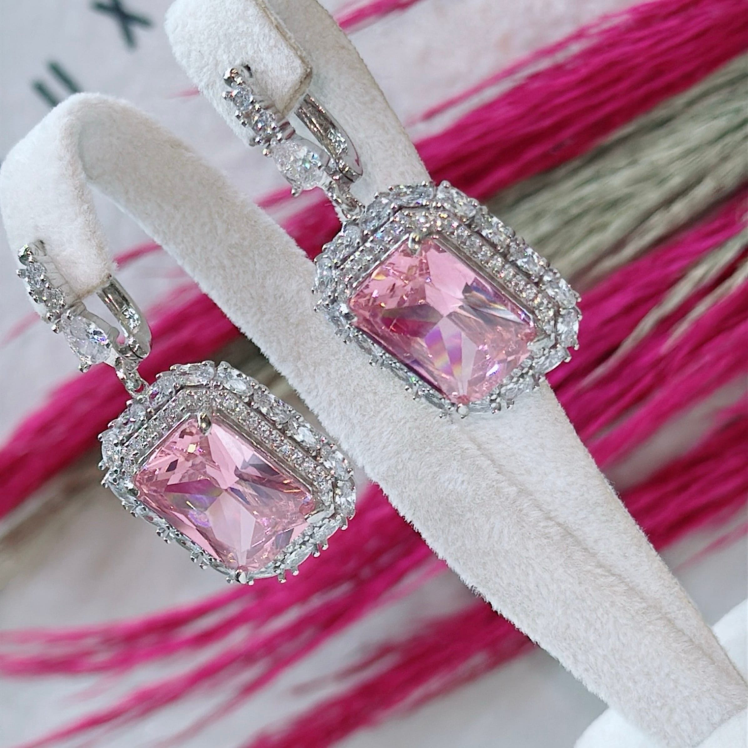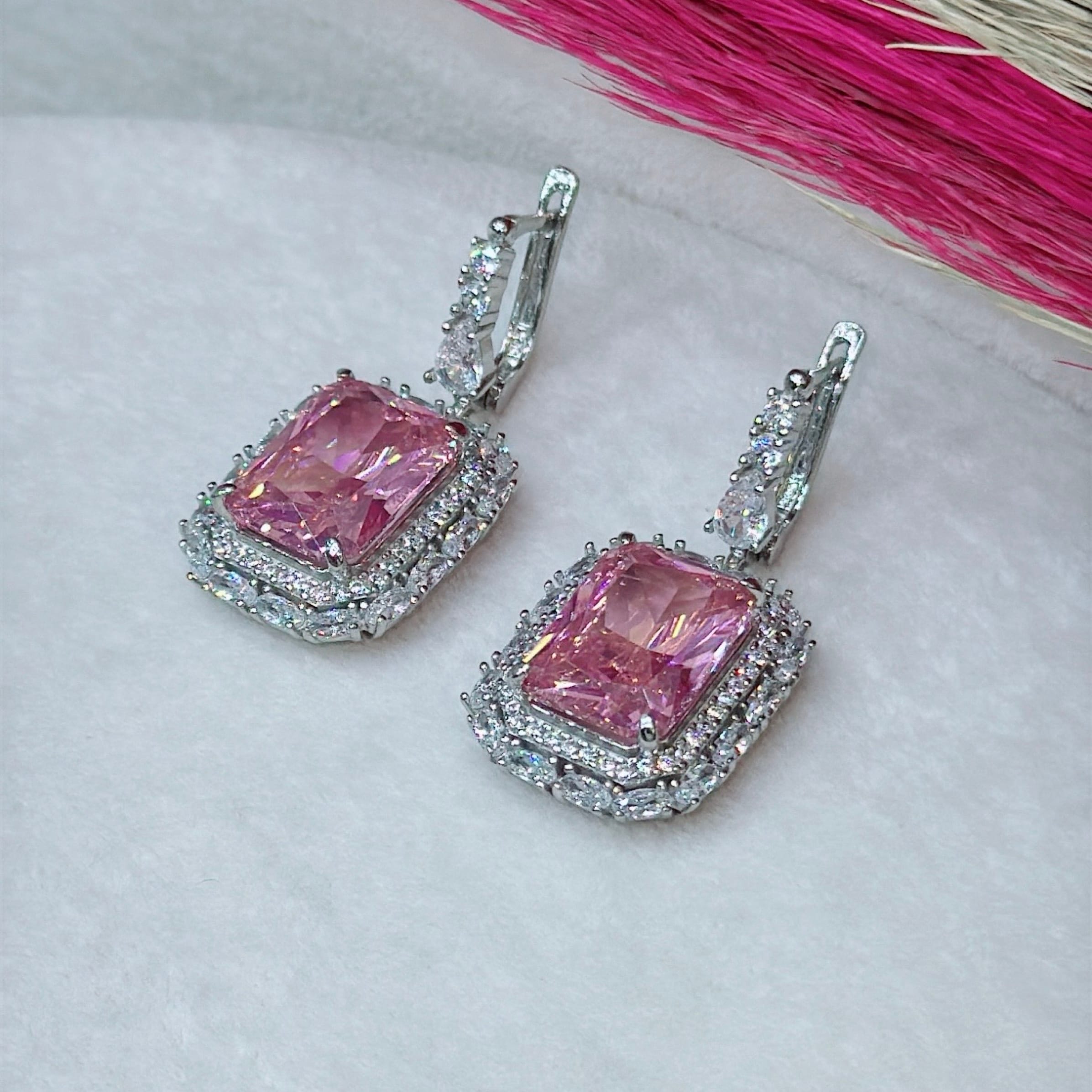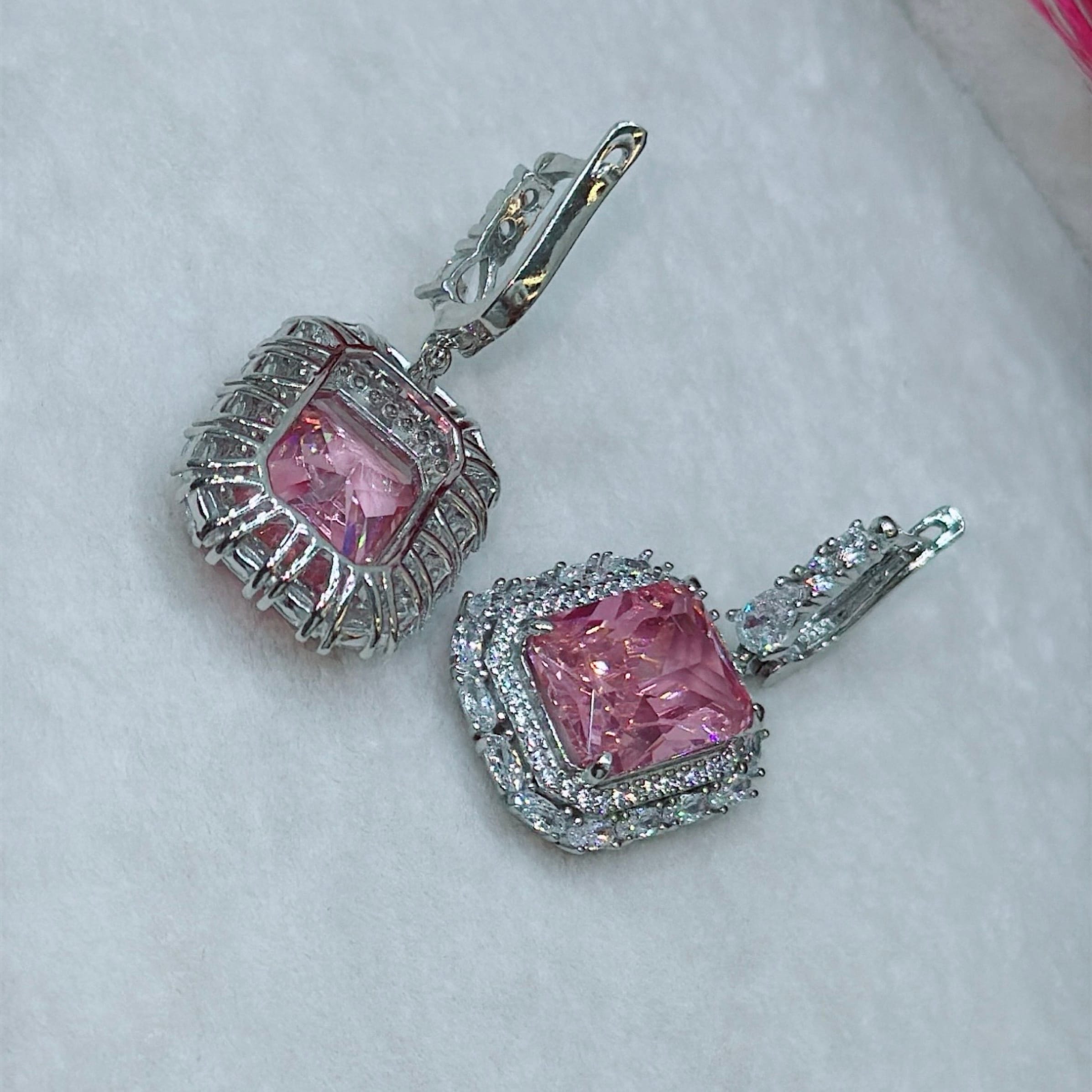 *Pırlanta Montür Pembe Renk Zirkon Taşlı Gümüş Küpe