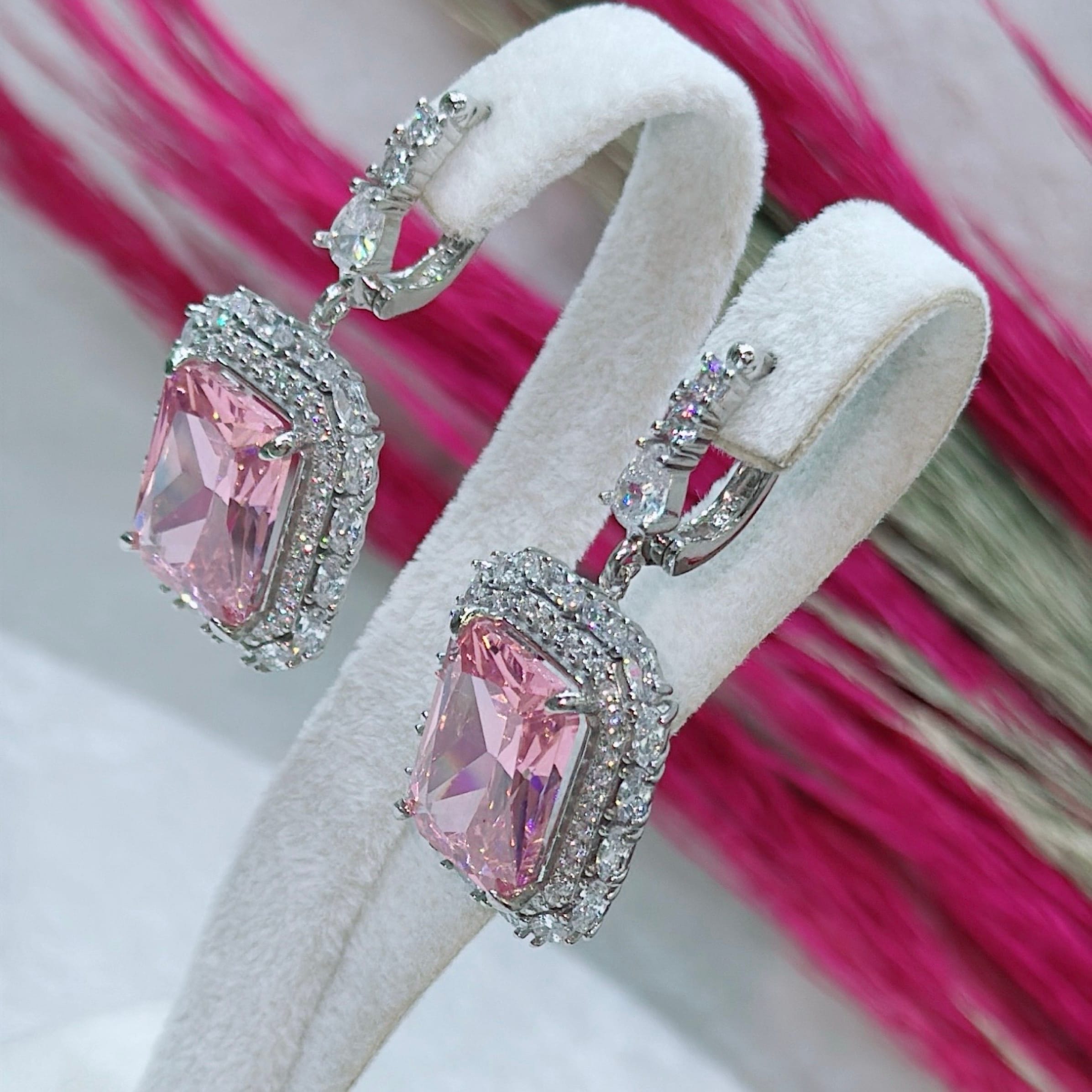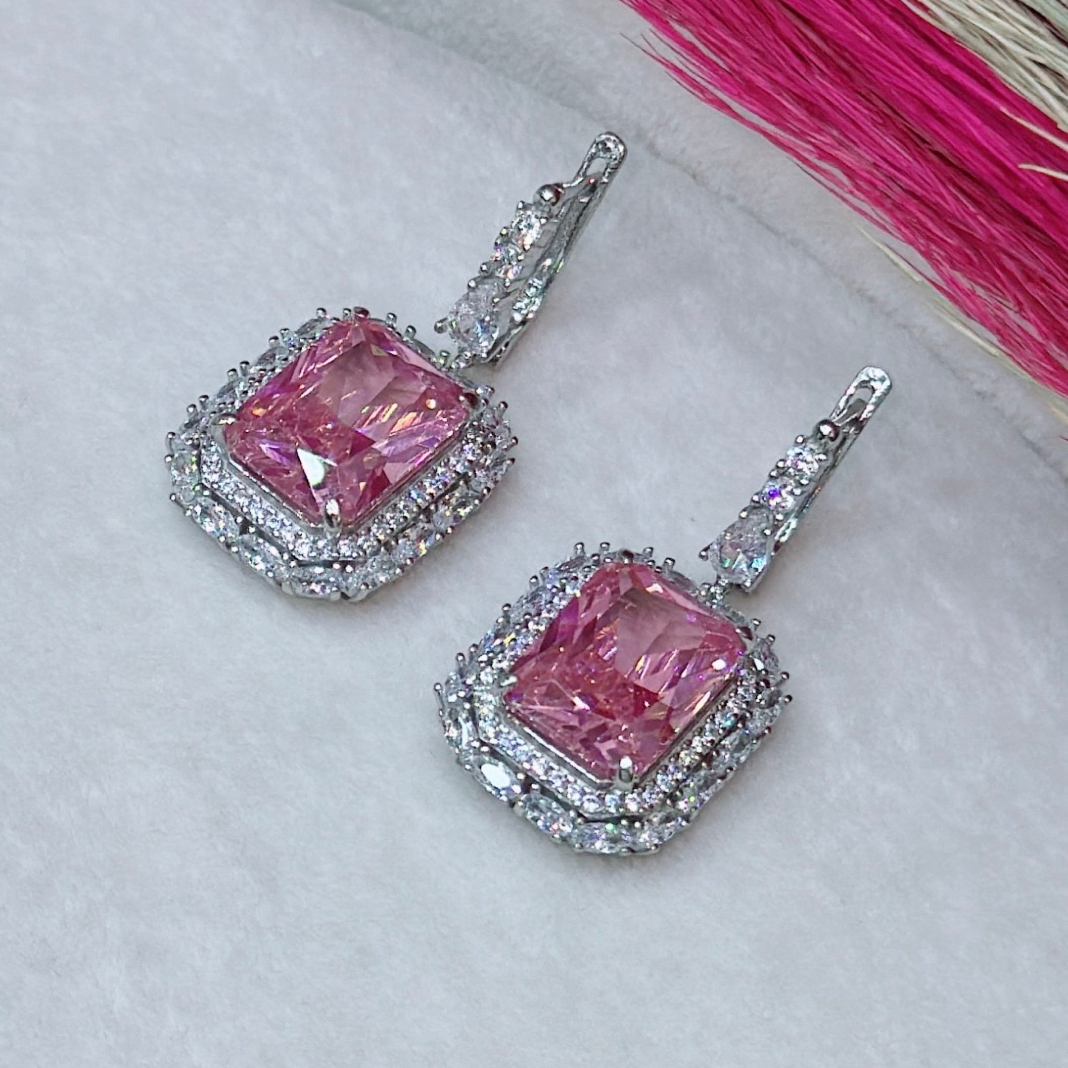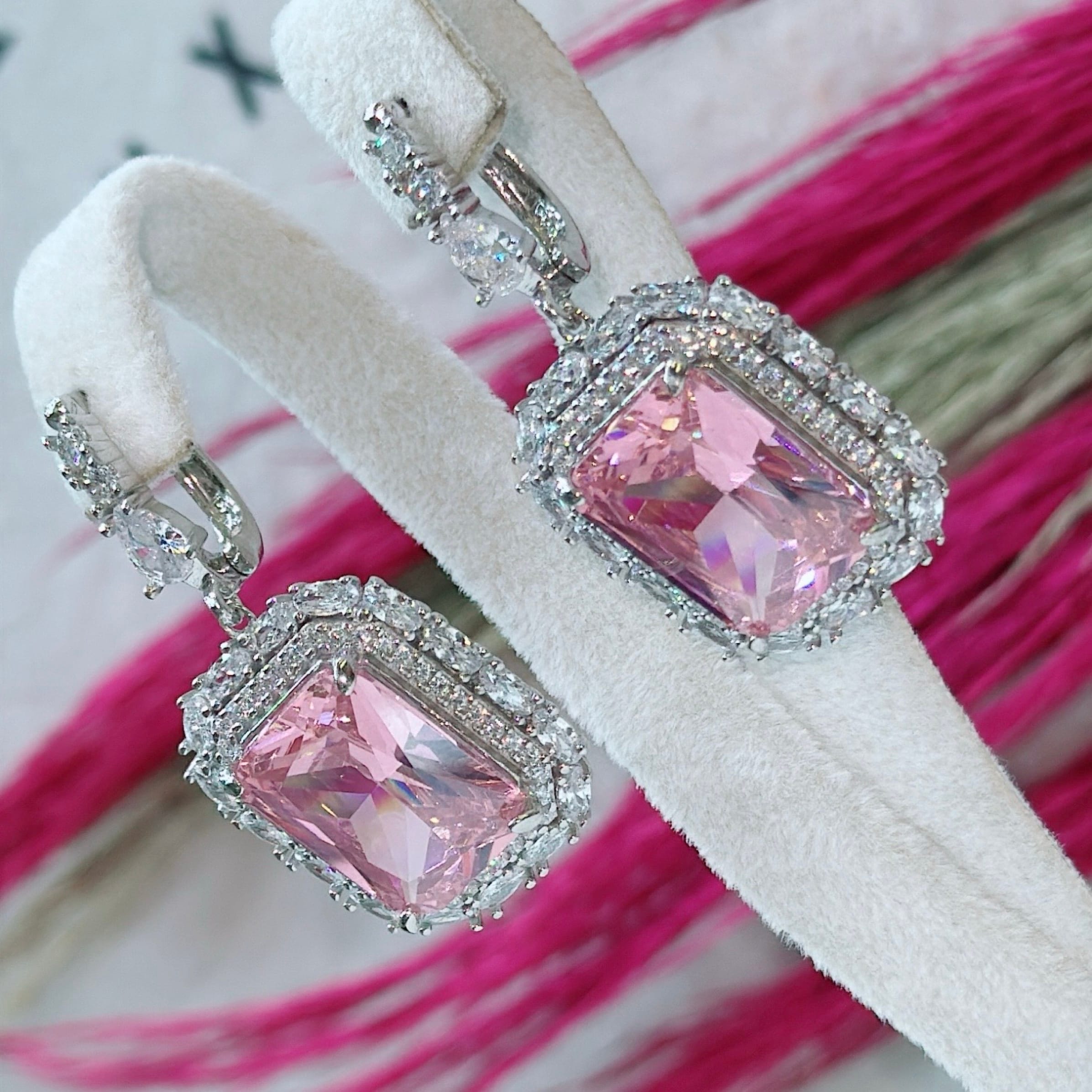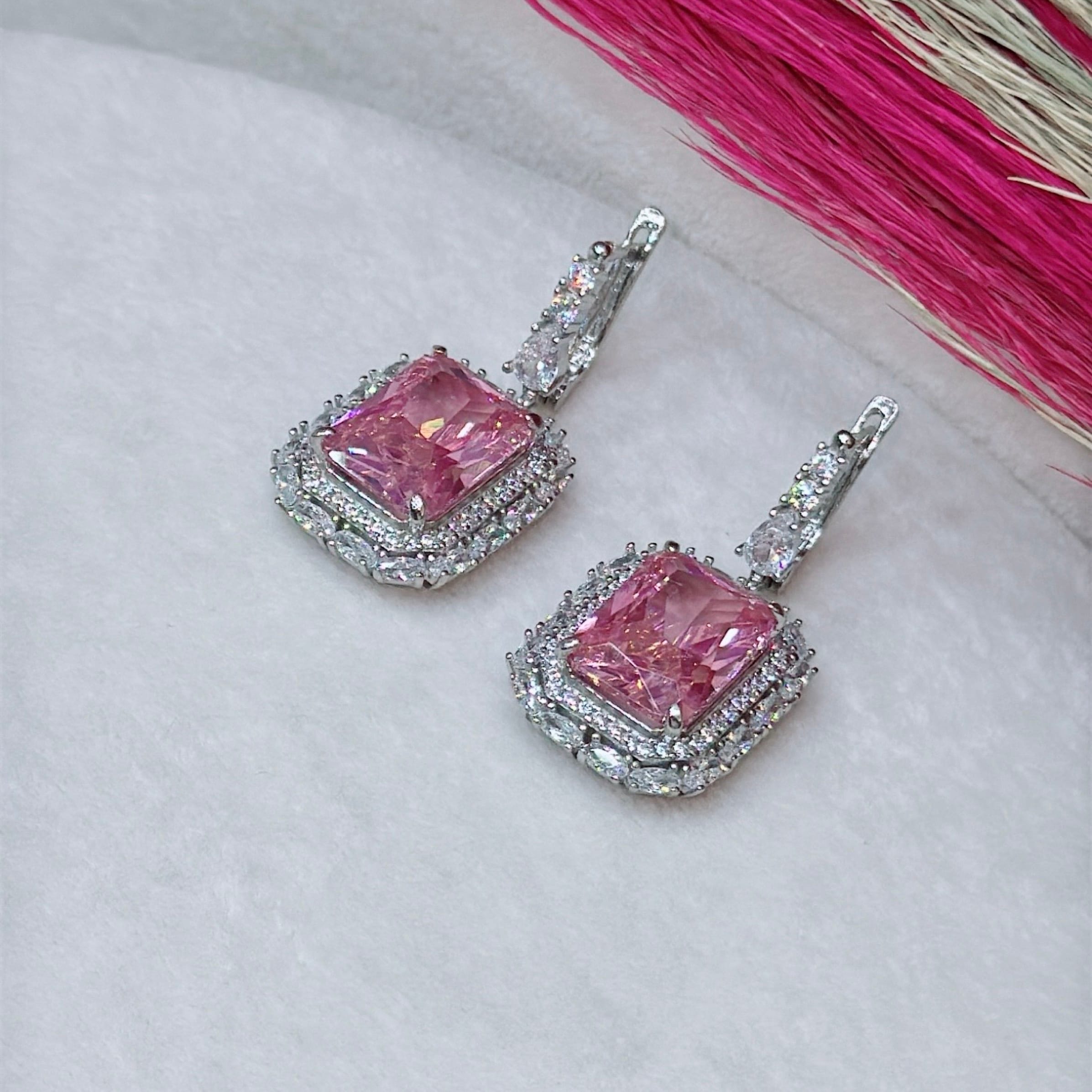 *Pırlanta Montür Pembe Renk Zirkon Taşlı Gümüş Küpe