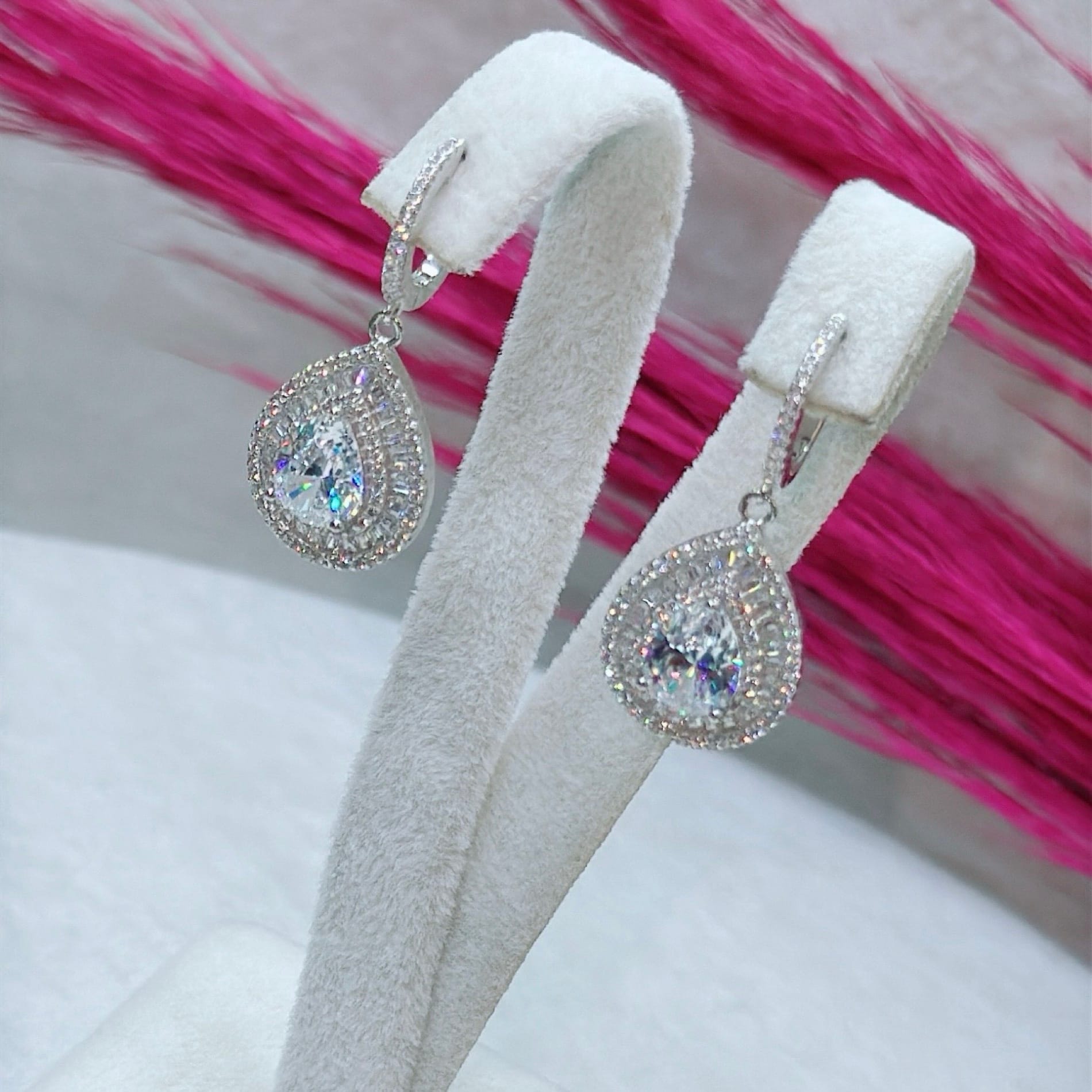 *Pırlanta Montür Zirkon Taşlı Gümüş Küpe