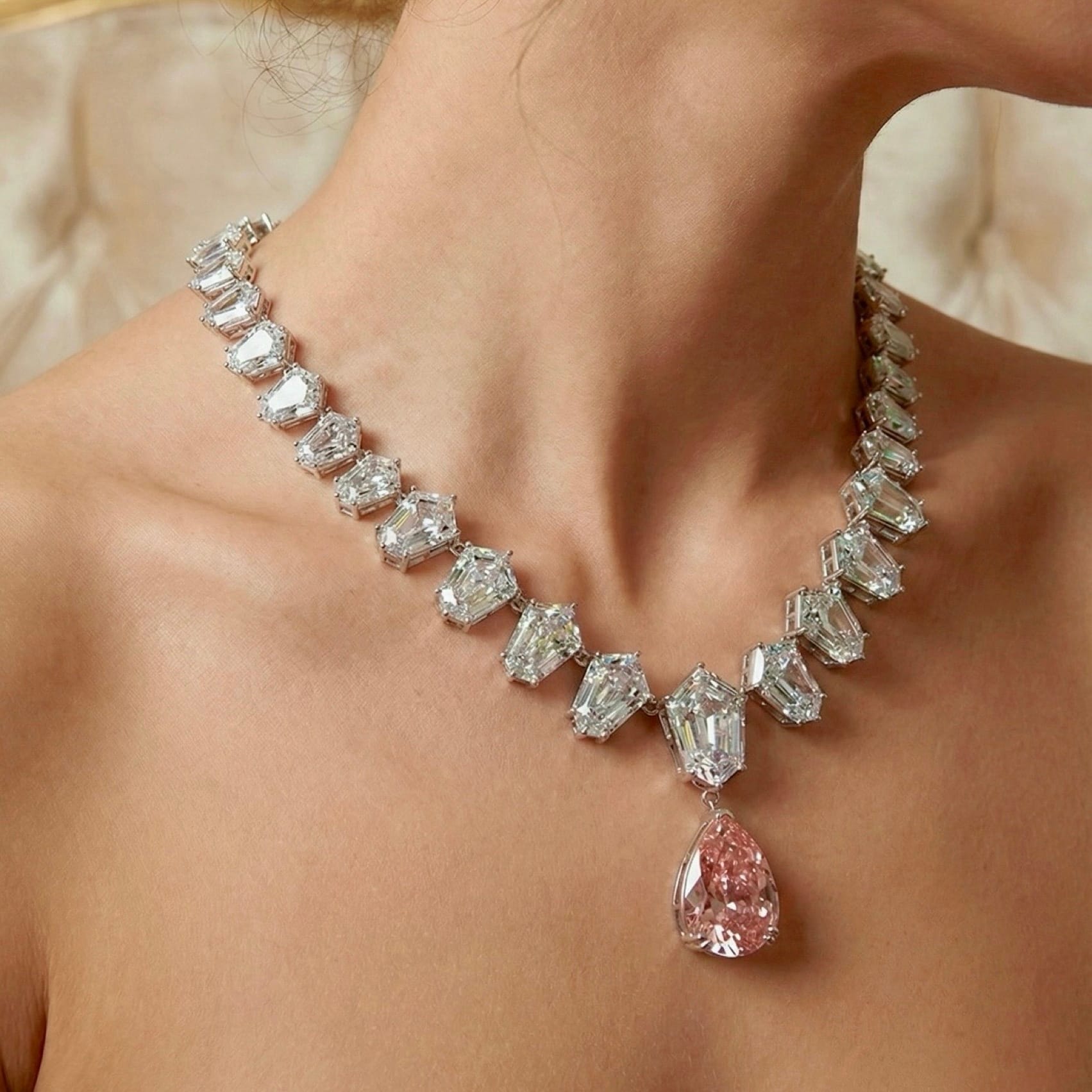 Damla Pembe Kuvars Taşlı Özel Üretim Gümüş Gerdanlık