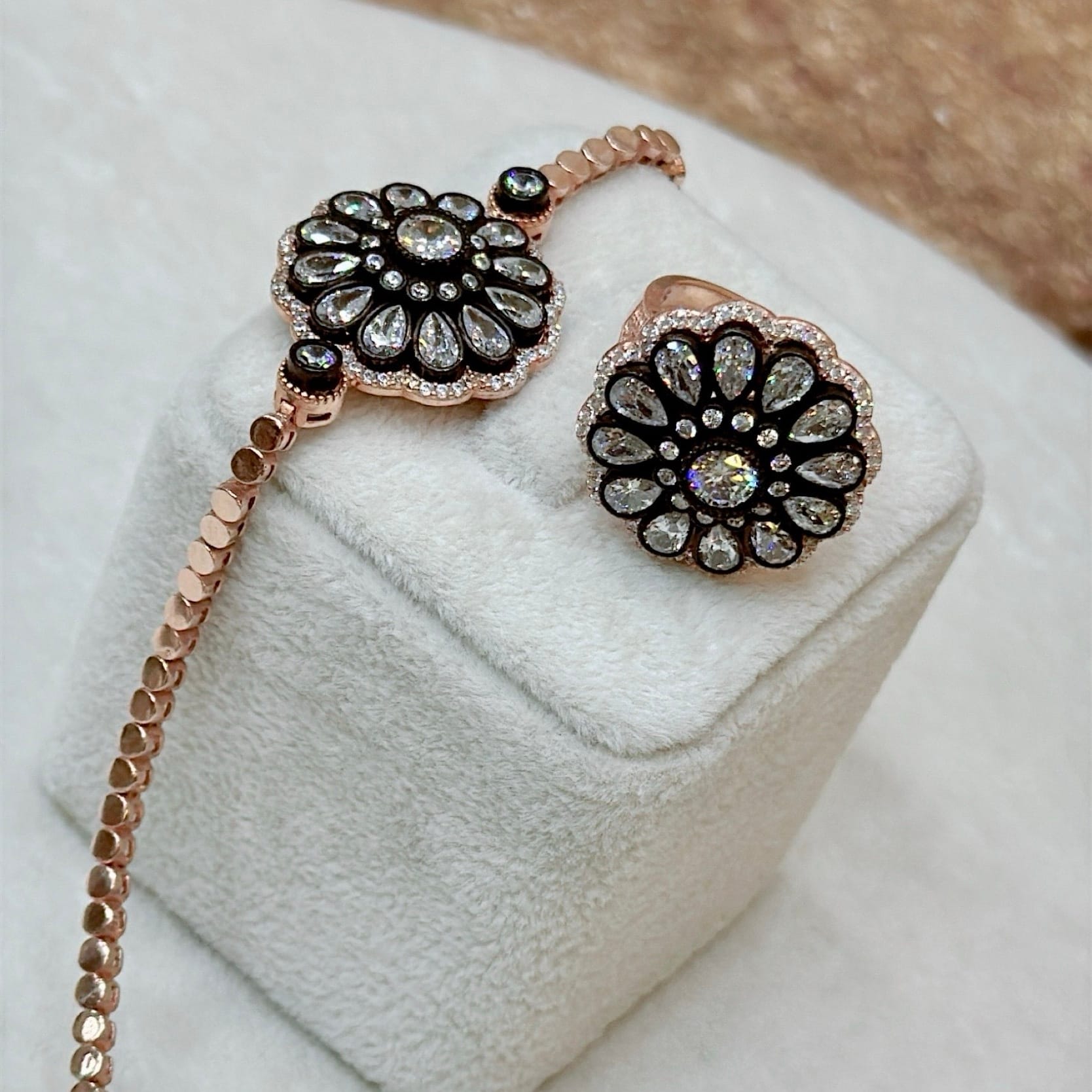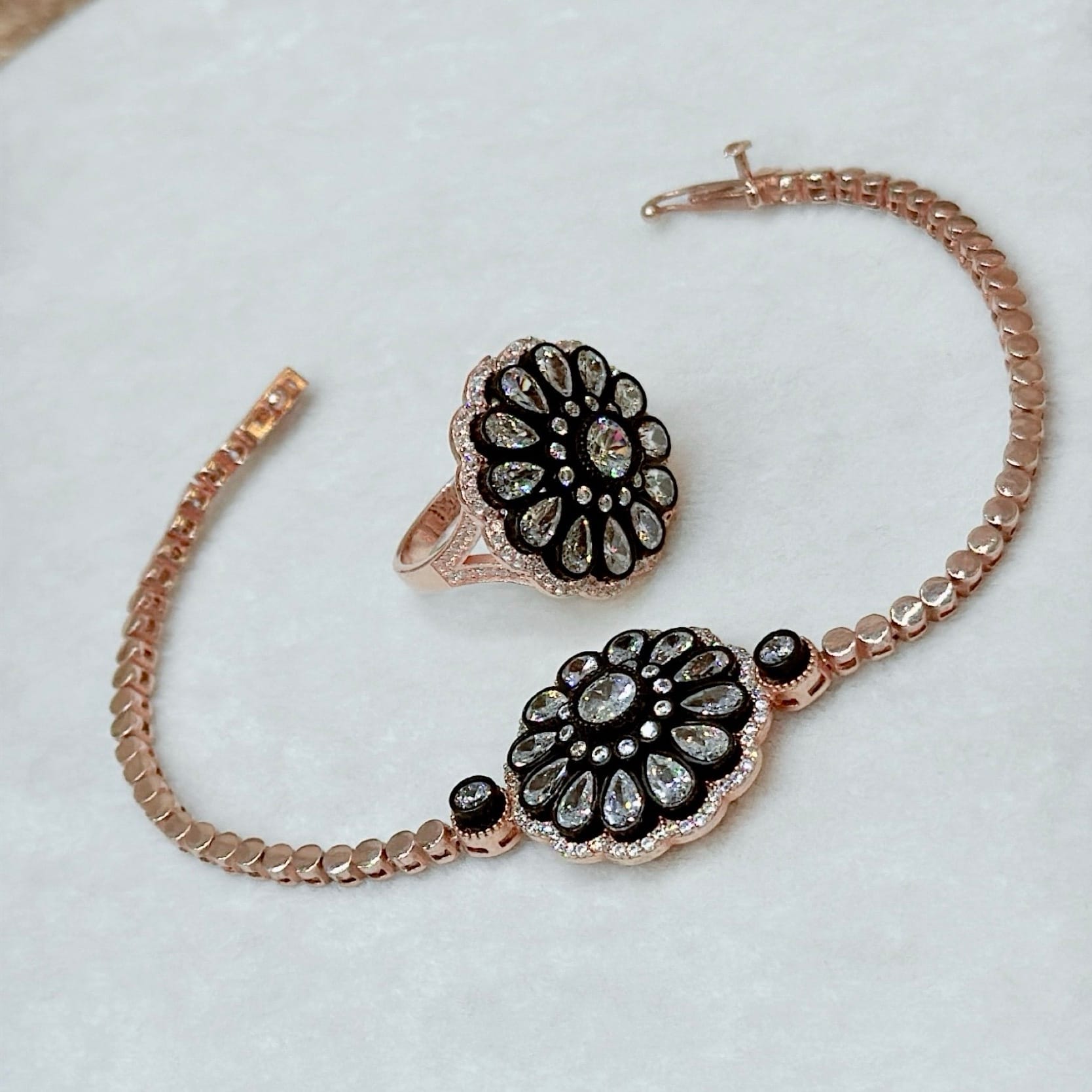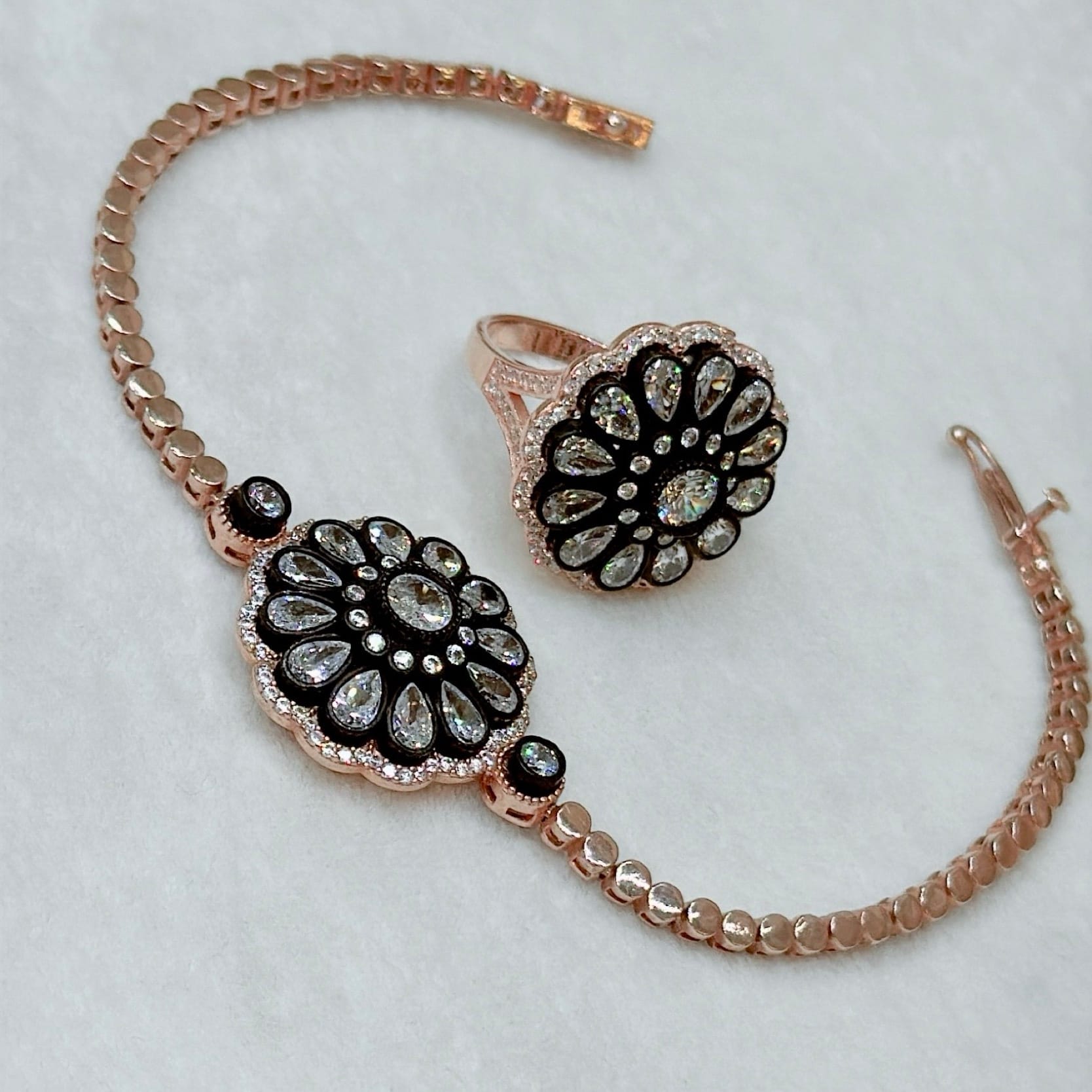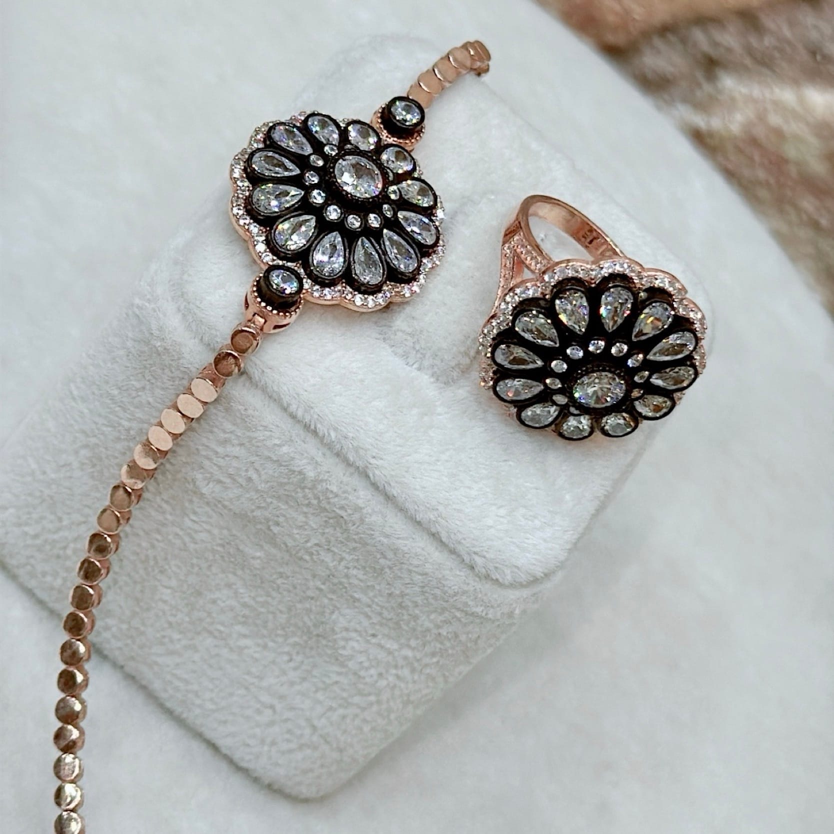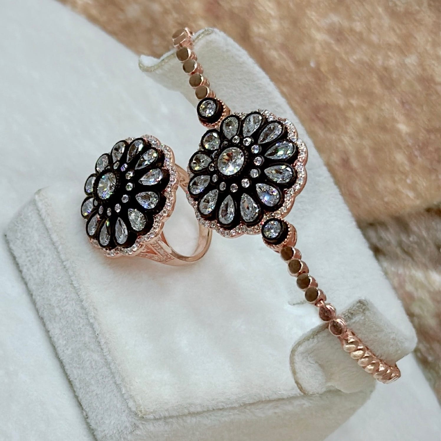 Elmas Montür Yüzük & Bileklik Gümüş Takım