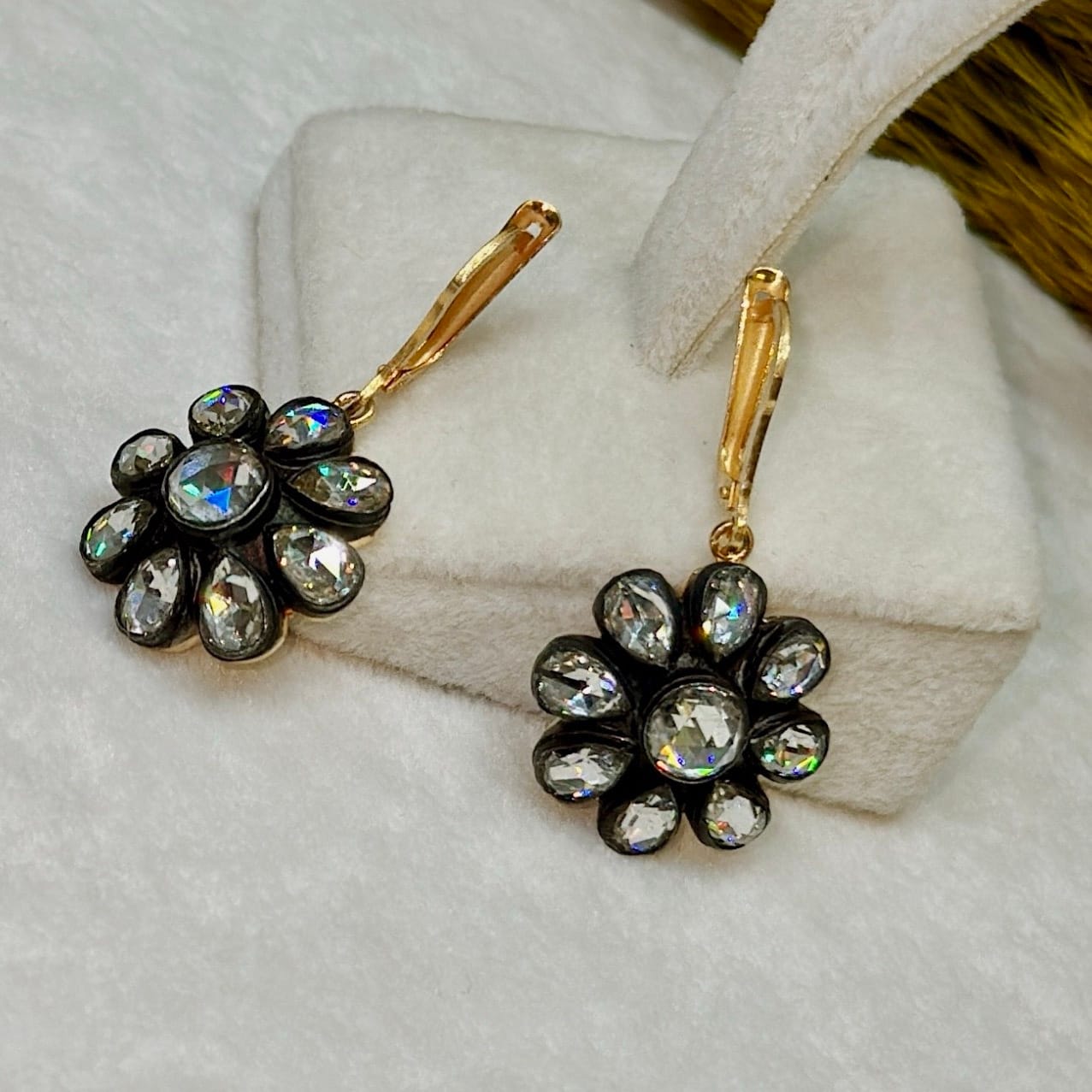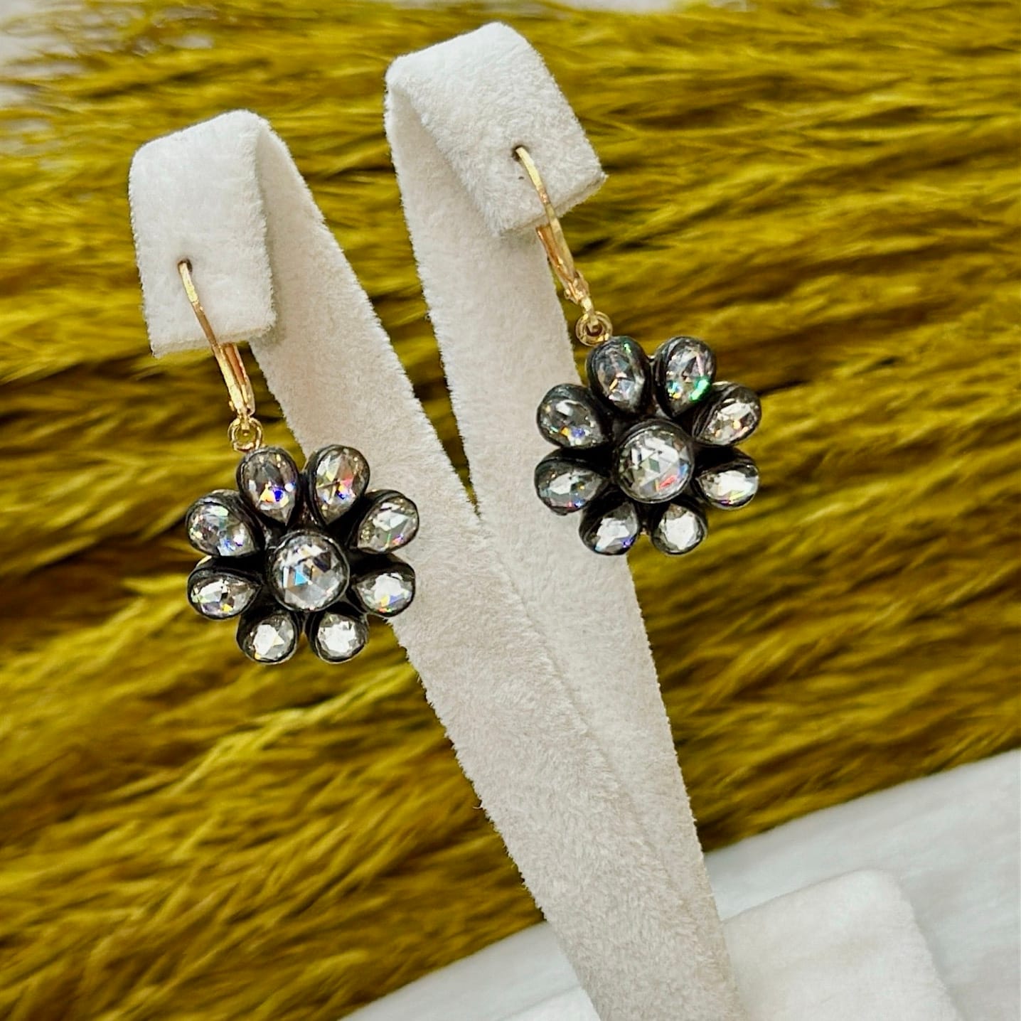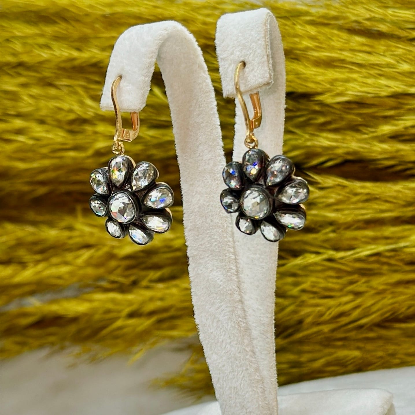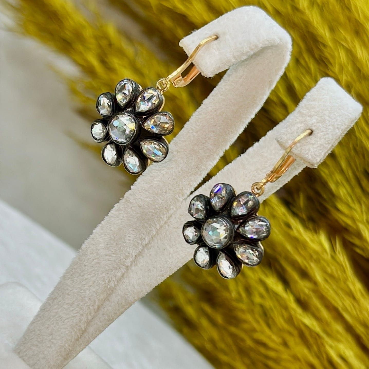 Elmas Montür Yuvarlak Çiçek Model Küpe