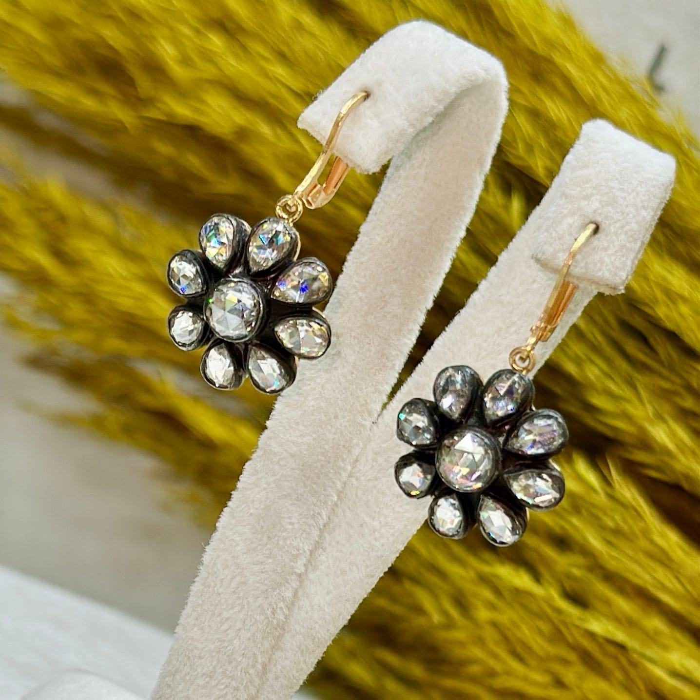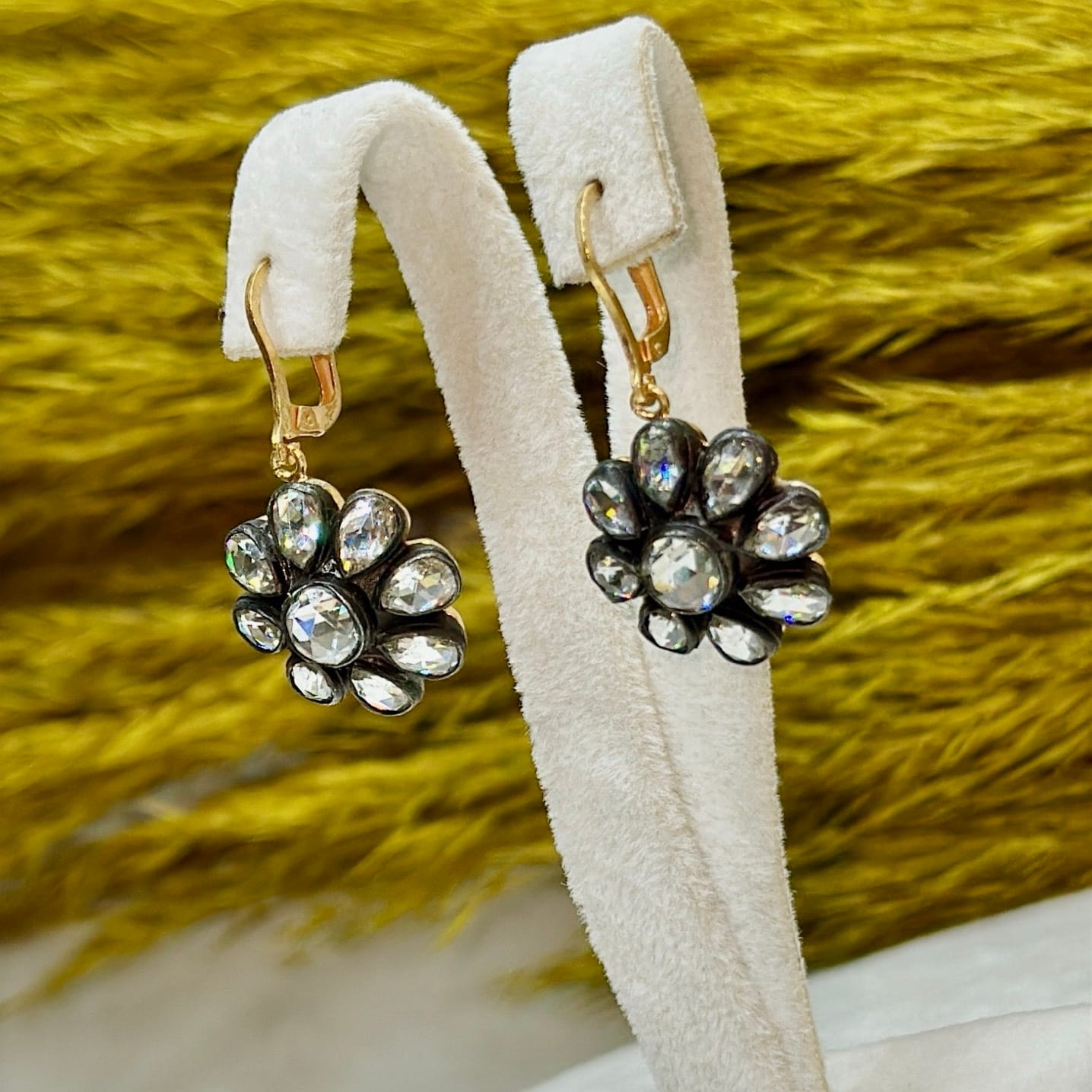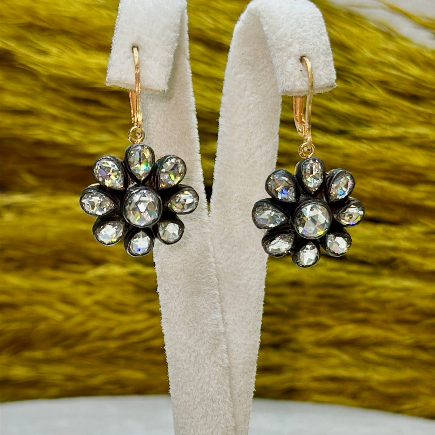 Elmas Montür Yuvarlak Çiçek Model Küpe