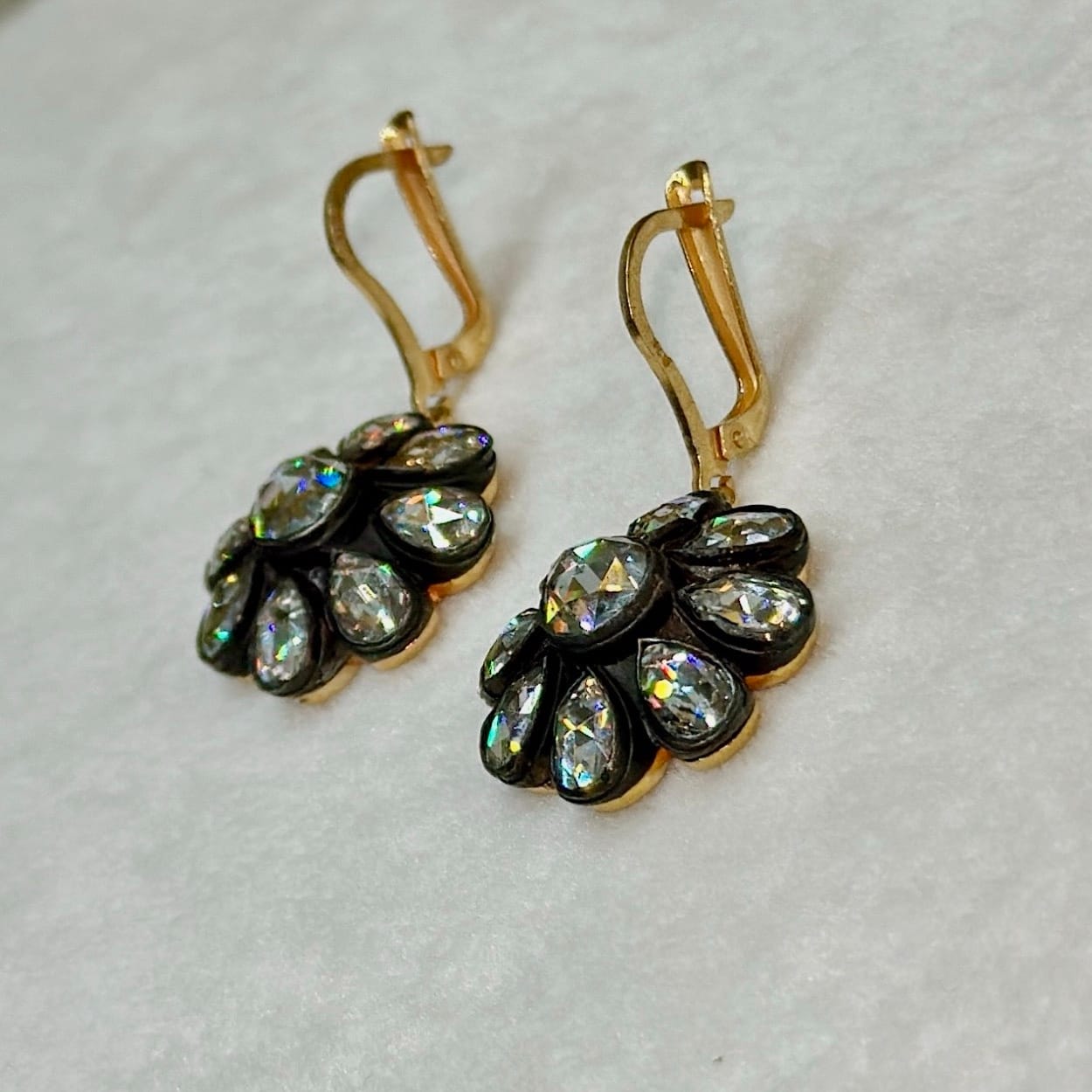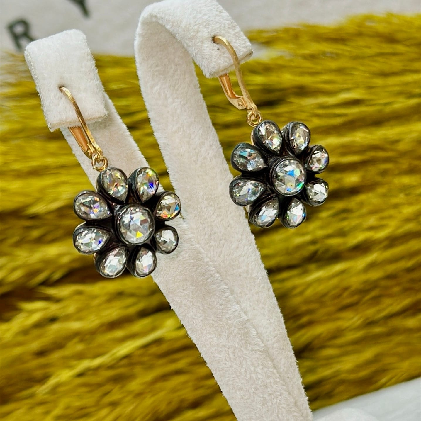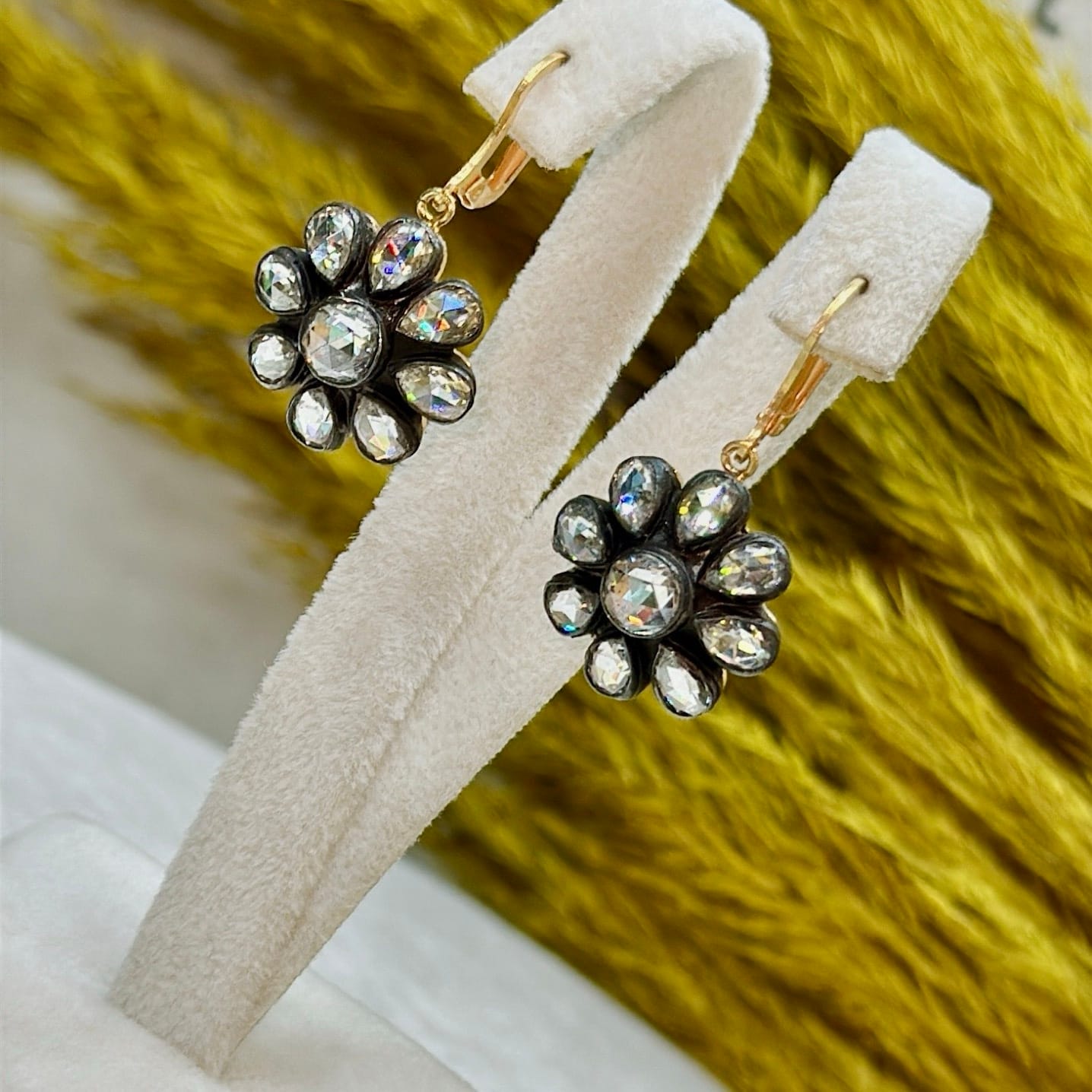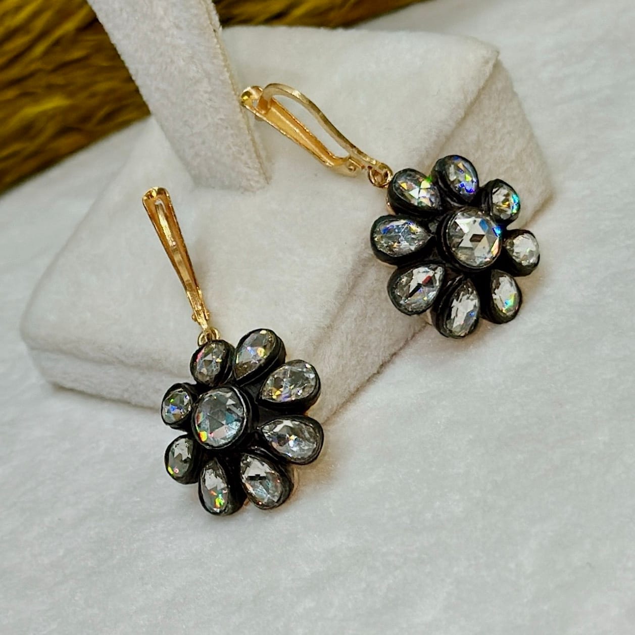 Elmas Montür Yuvarlak Çiçek Model Küpe