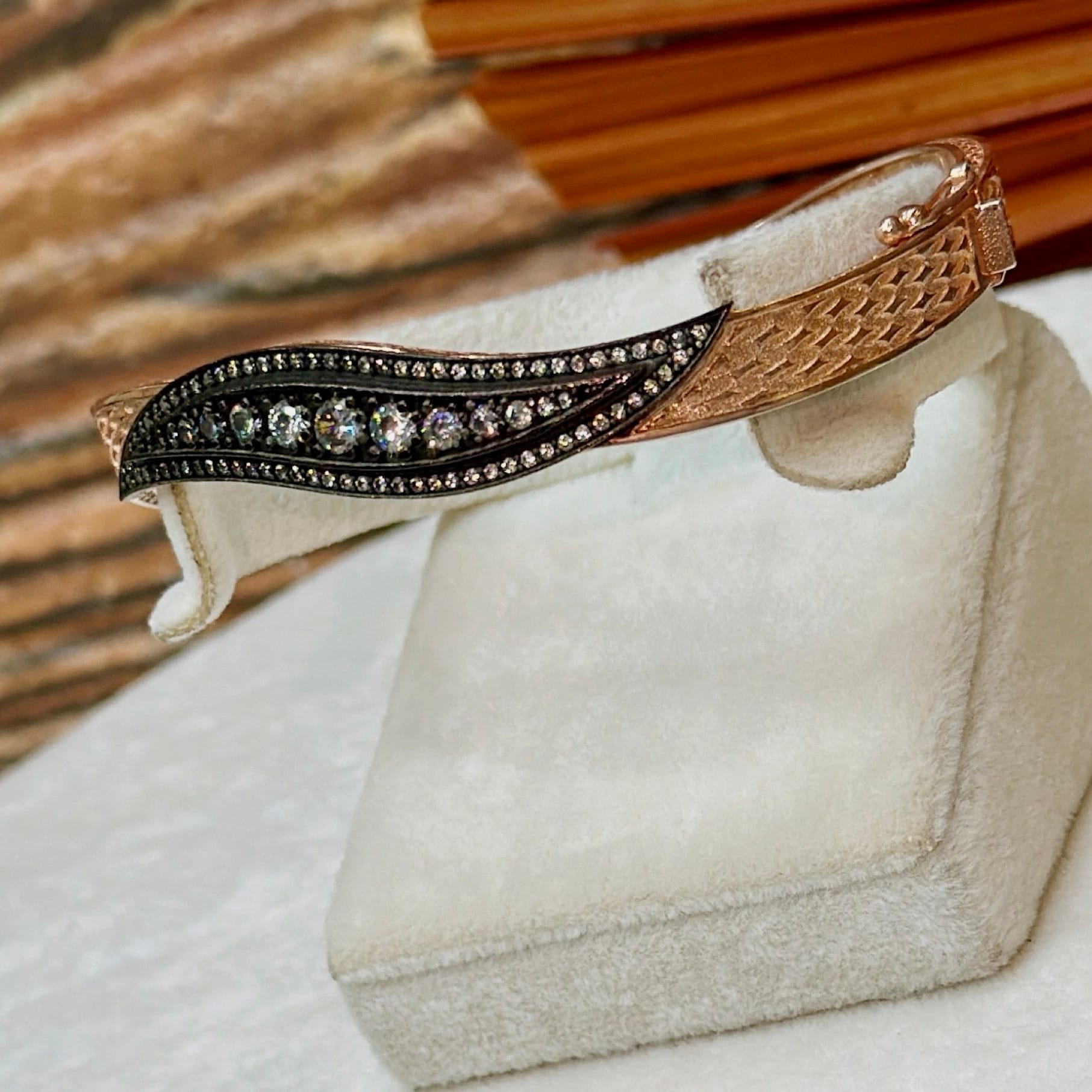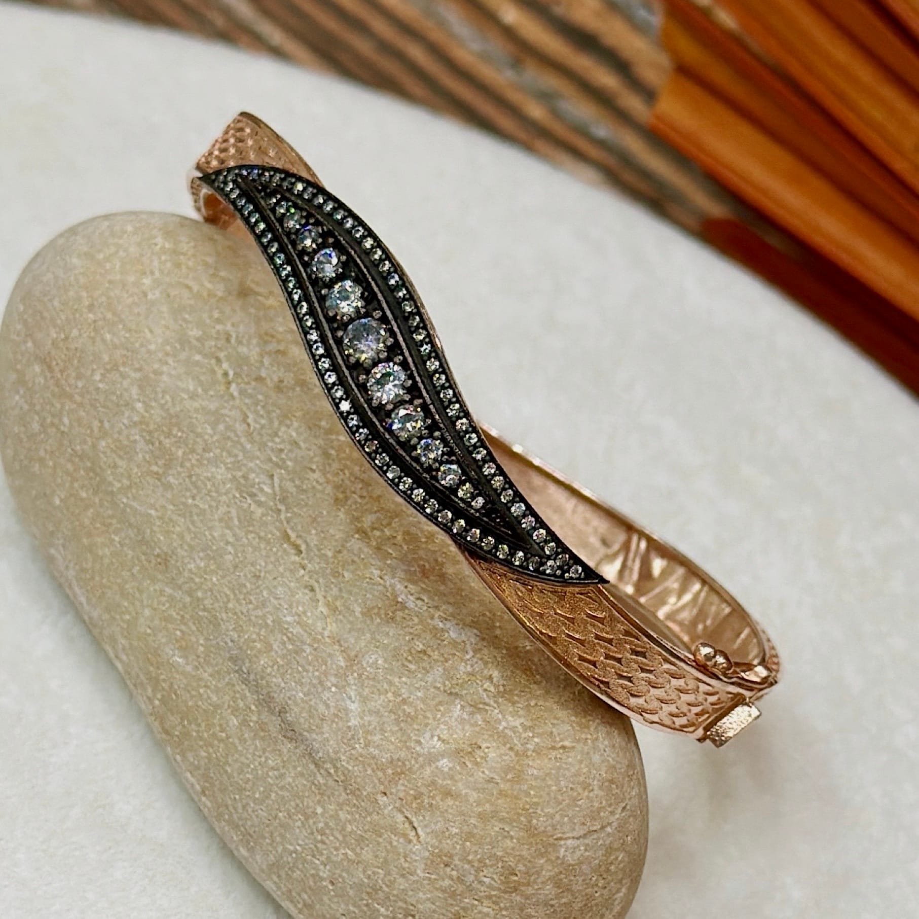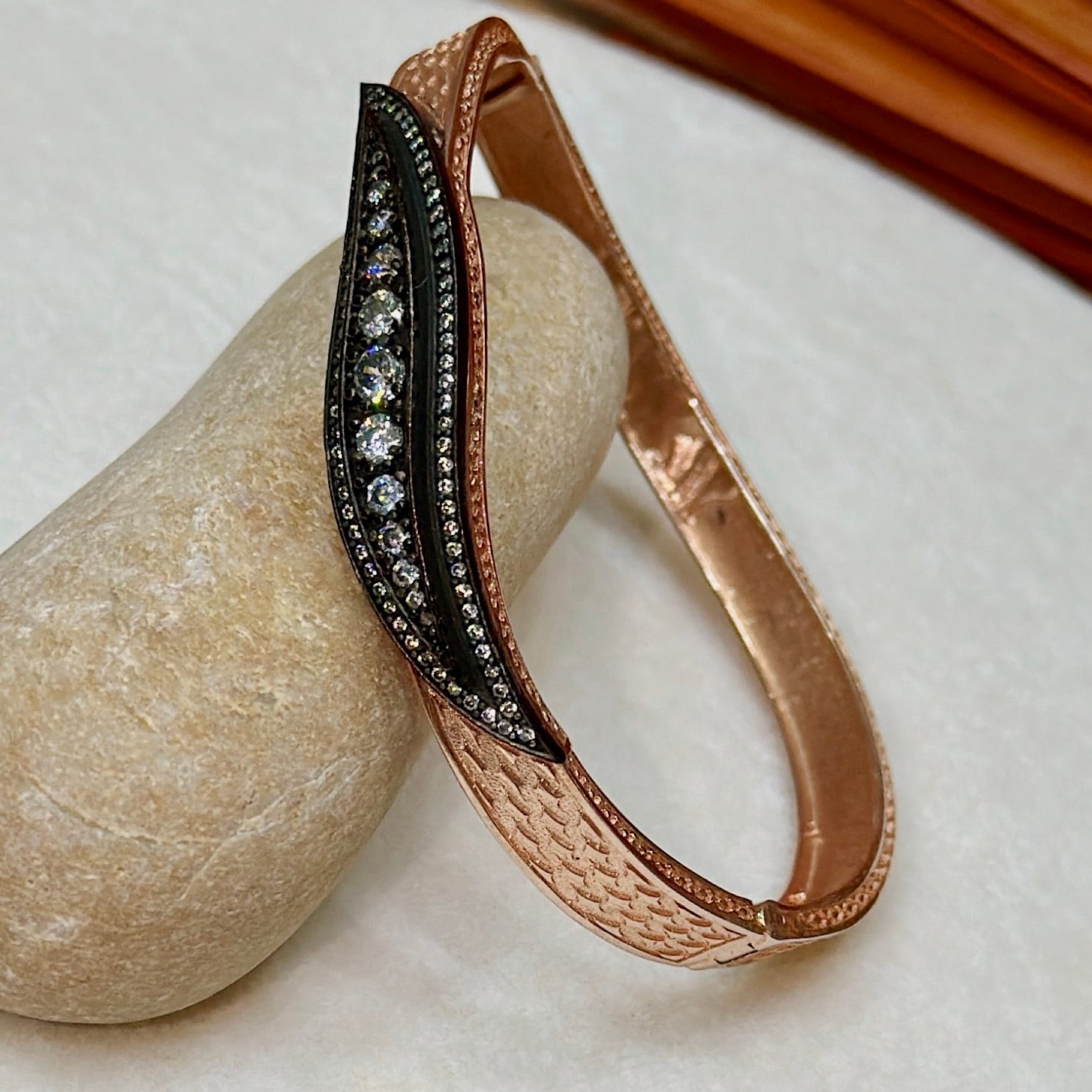 Elmas Montür Rosegold Gümüş Kelepçe Bileklik