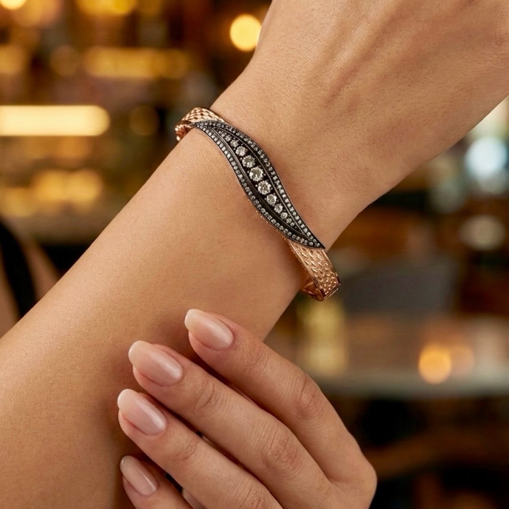 Rosegold Gümüş Elmas Montür Kelepçe Bilezik