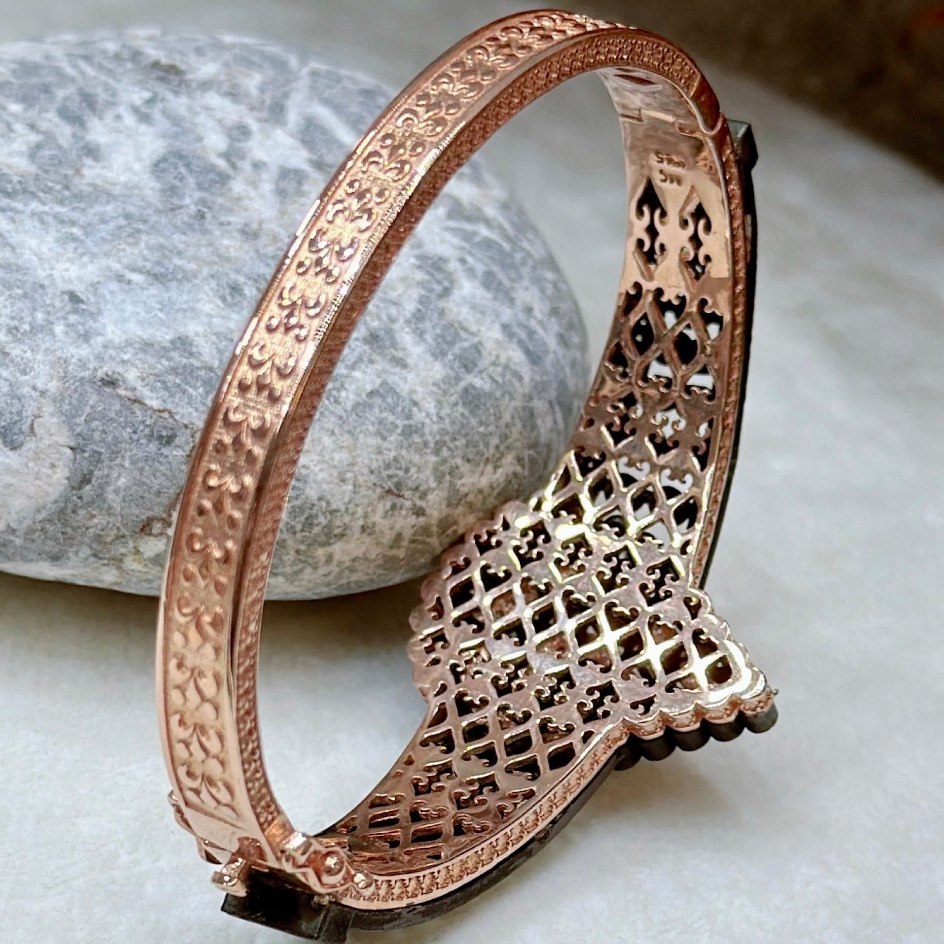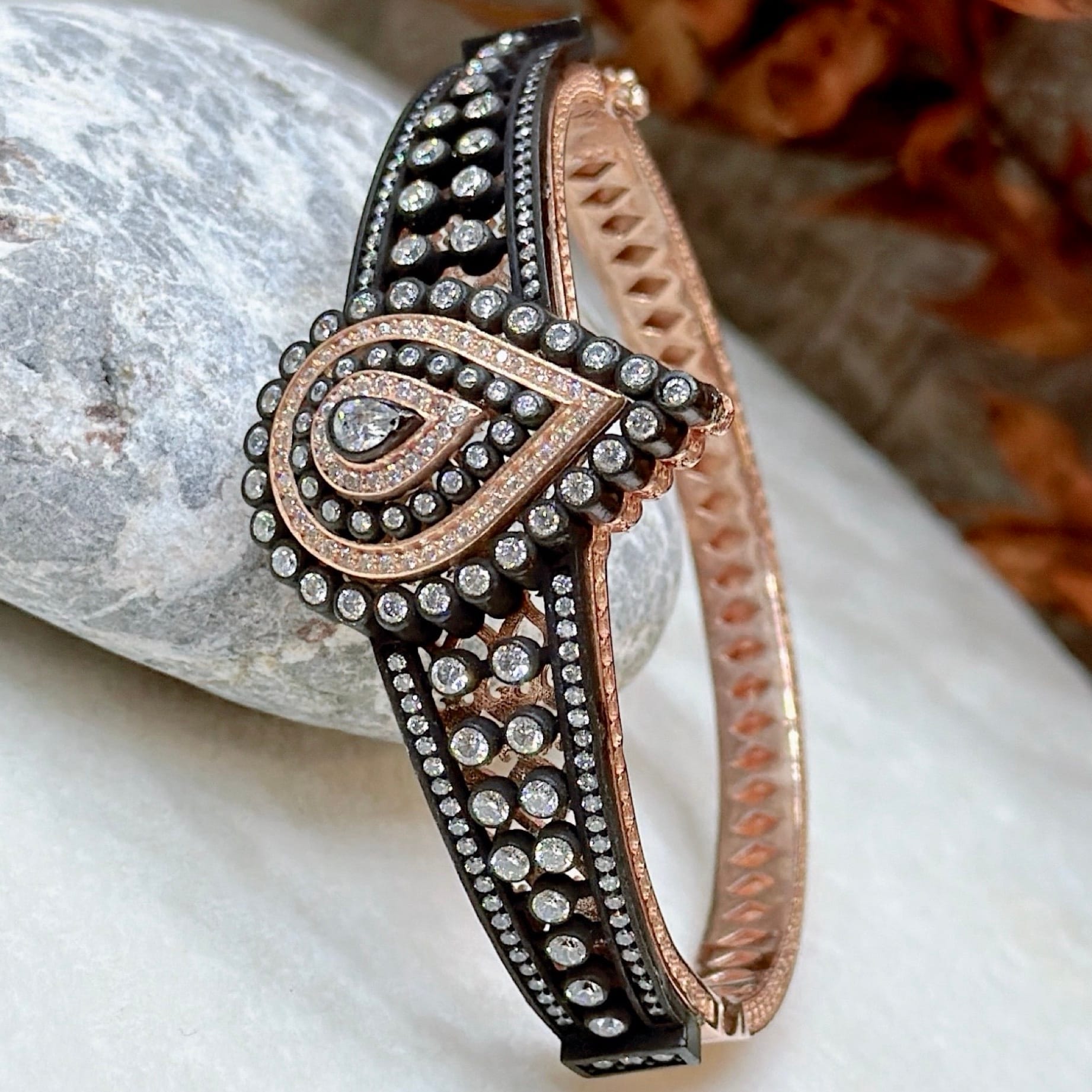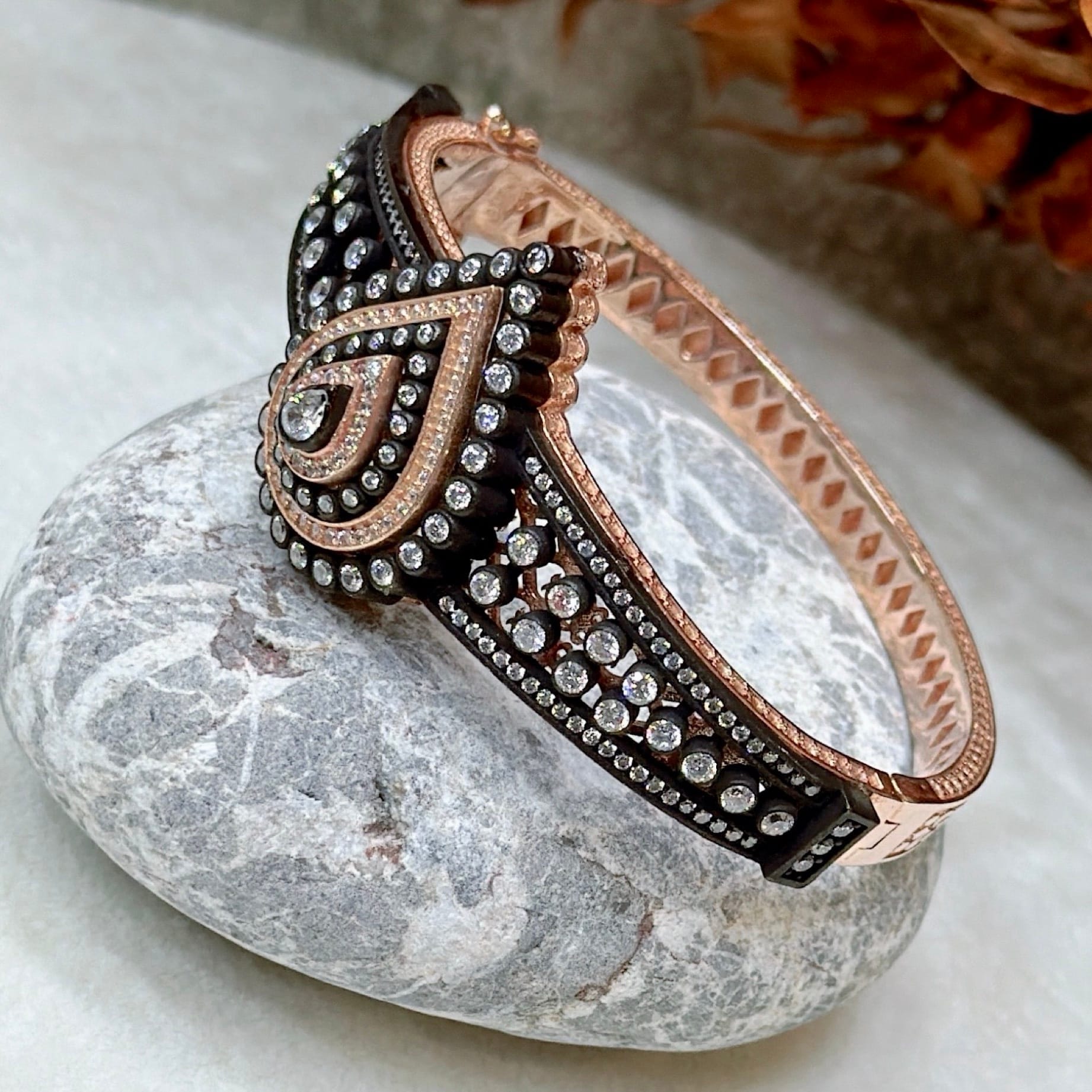 Elmas Montür Rosegold Gümüş Kelepçe Bileklik