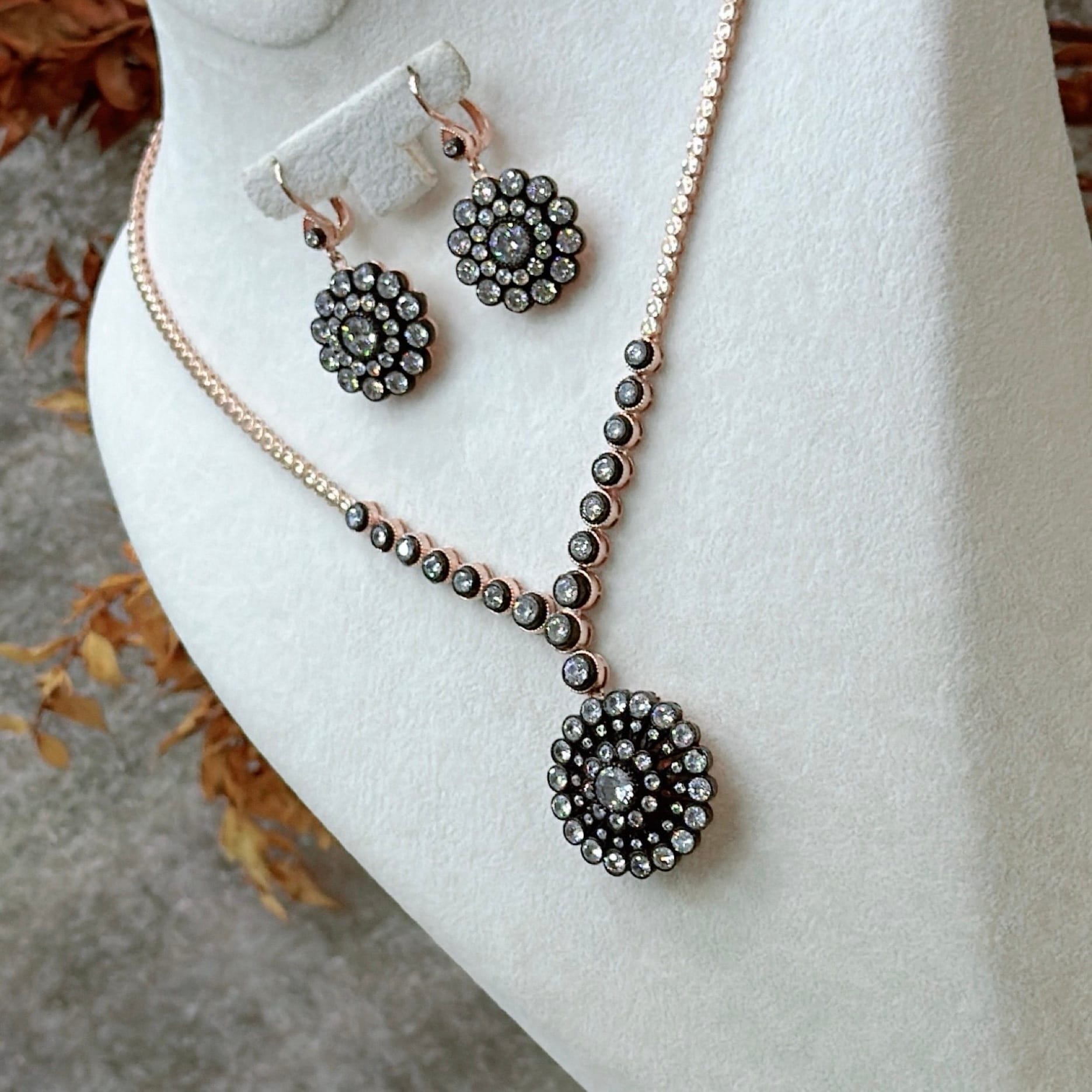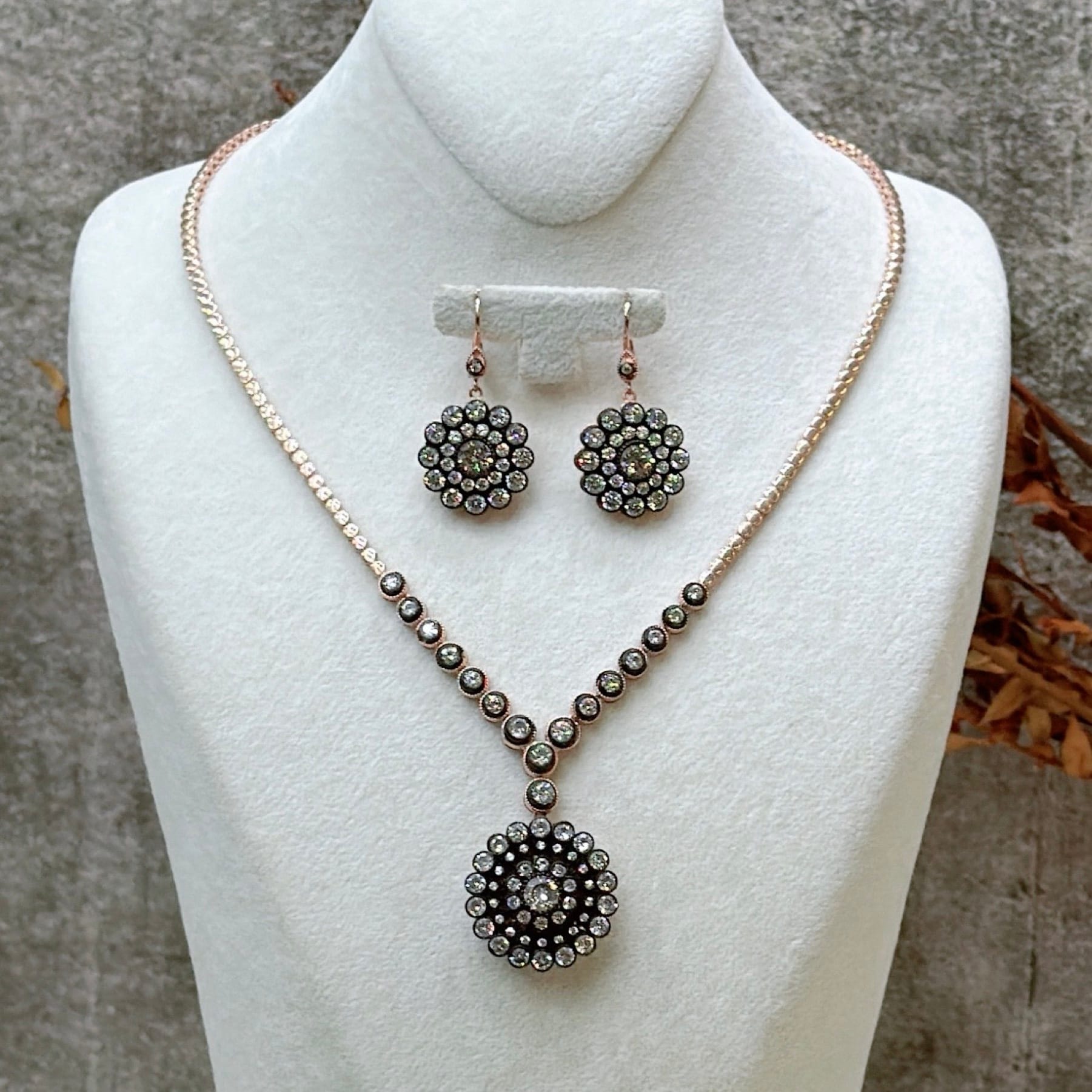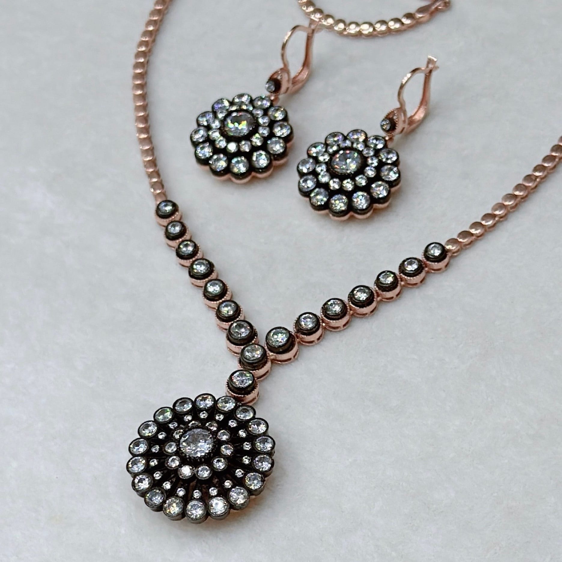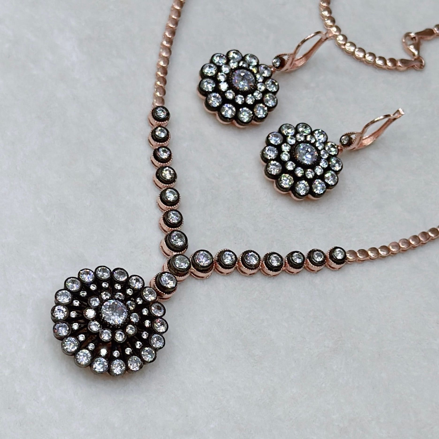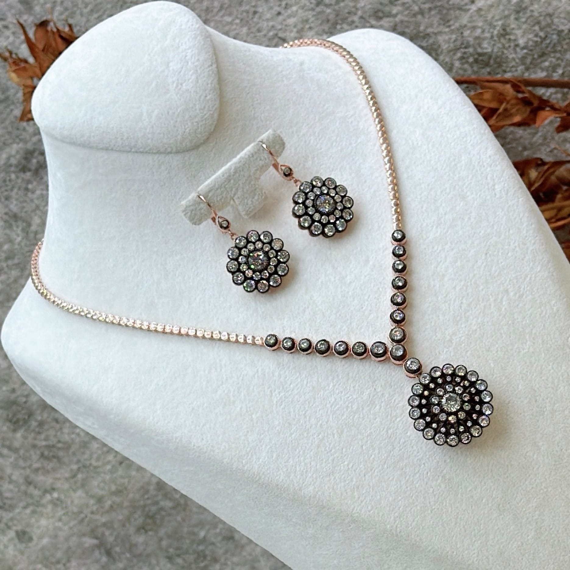 Elmas Montür Rosegold Gümüş Gerdanlık ve Küpe