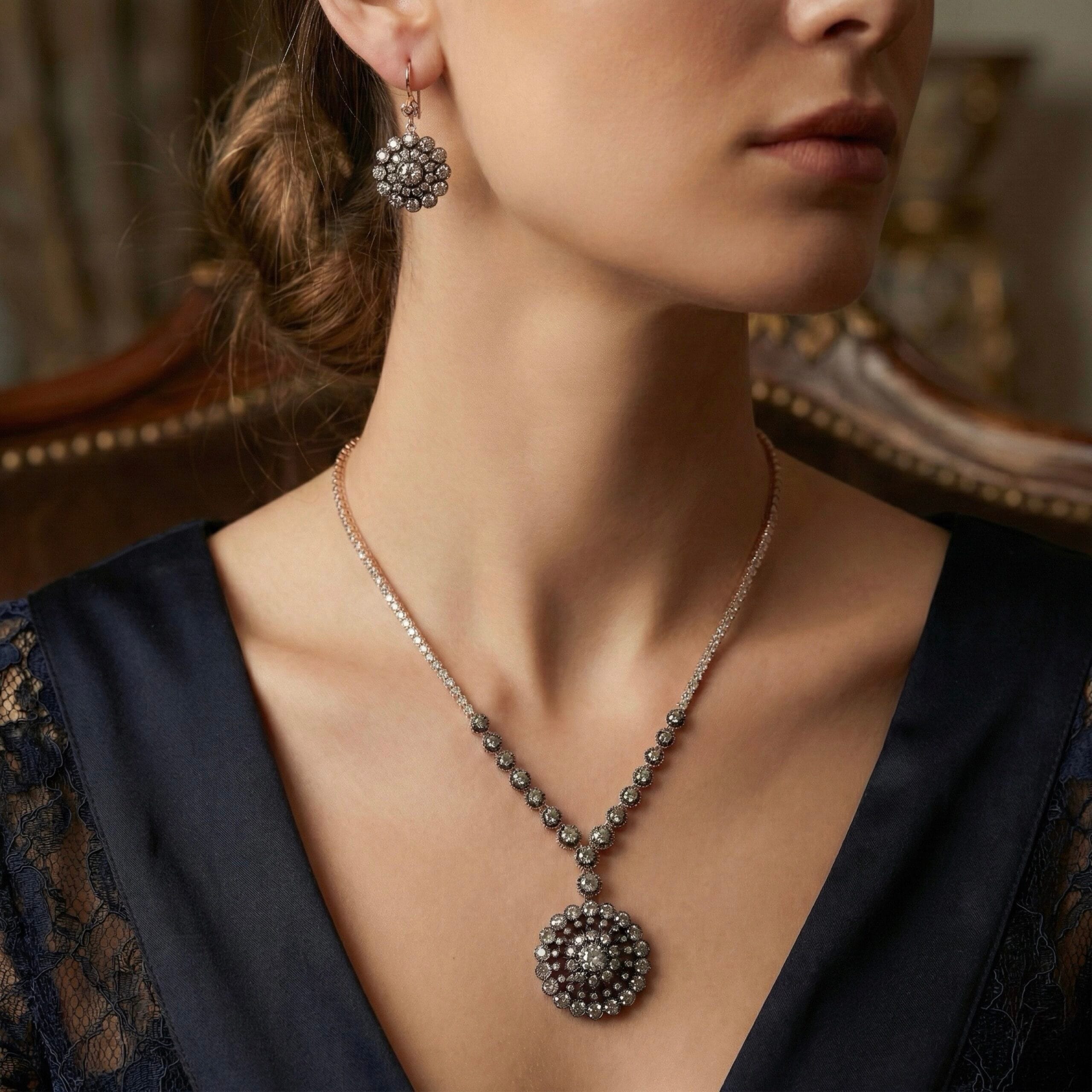 Elmas Montür Kolye & Küpe Gümüş Takım