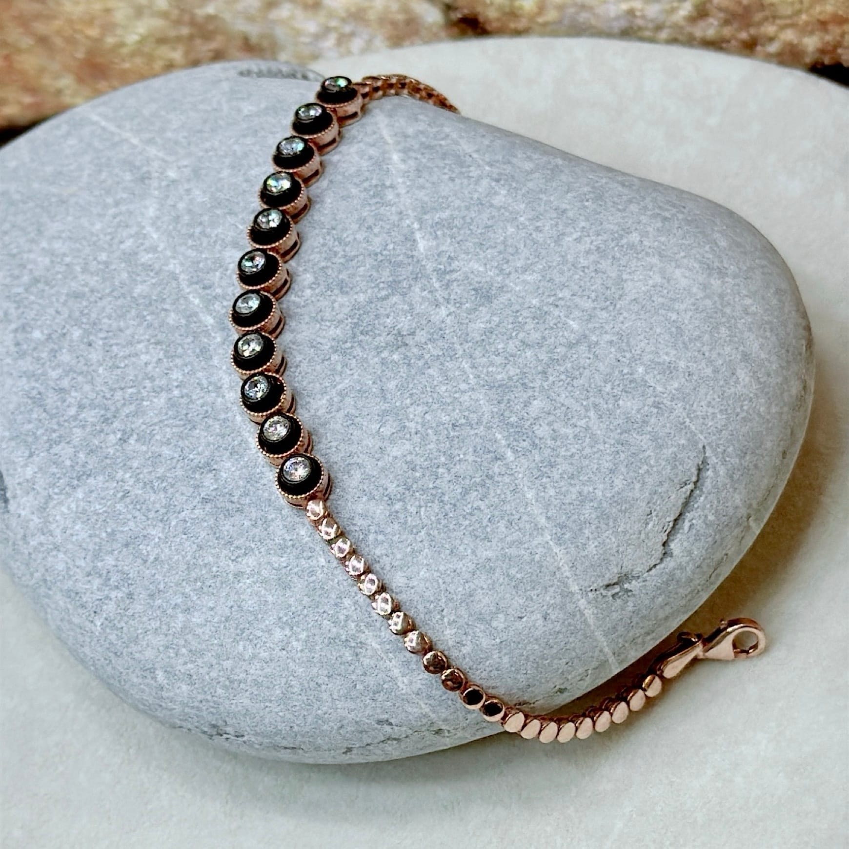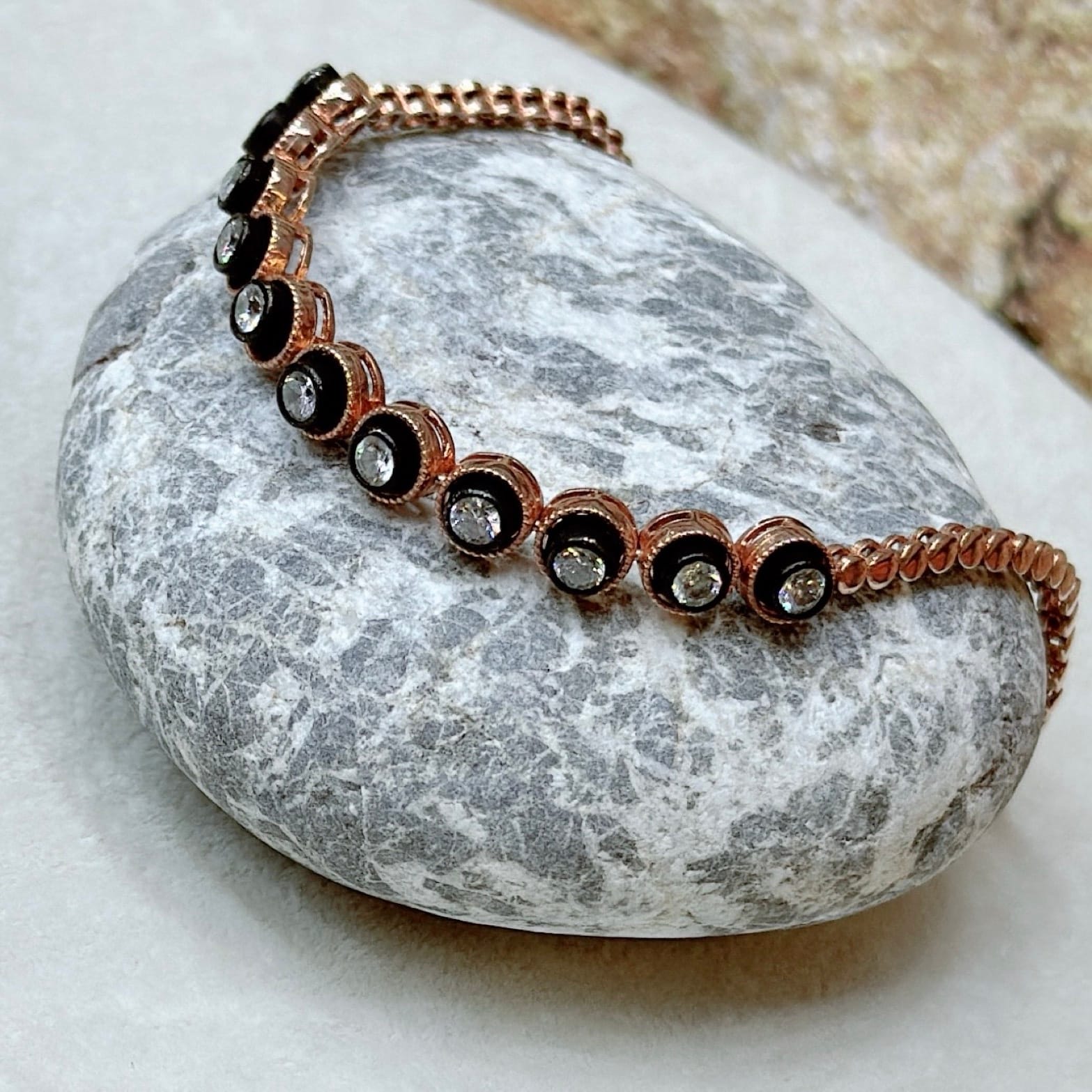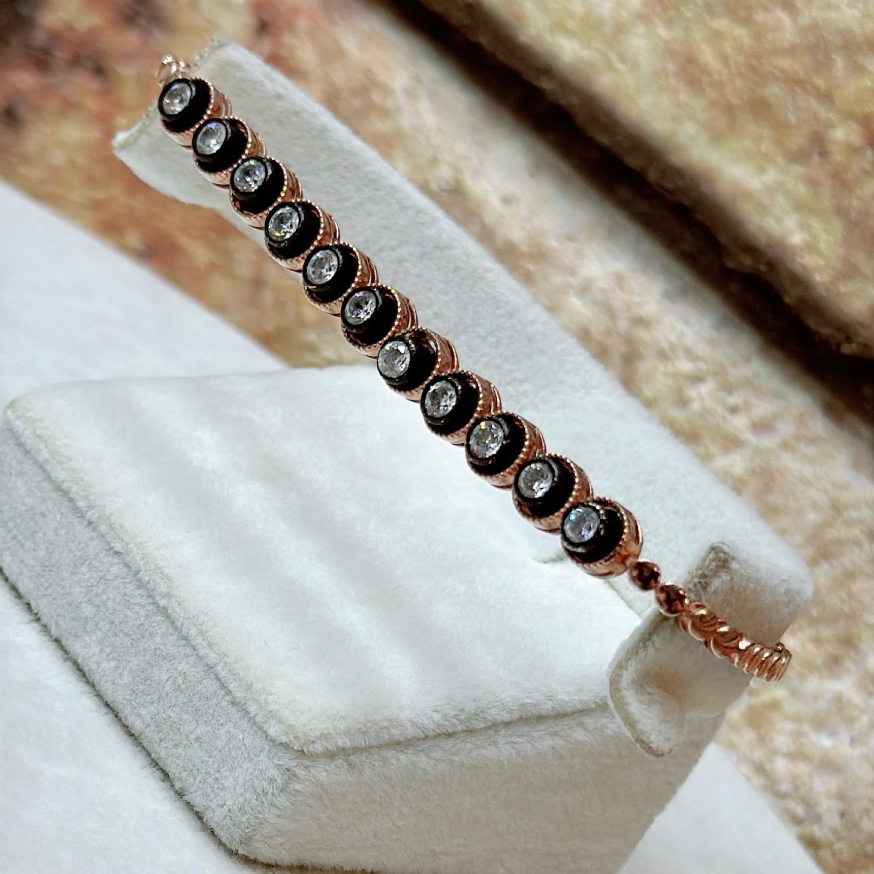 Elmas Montür Rosegold Gümüş Kelepçe Bileklik