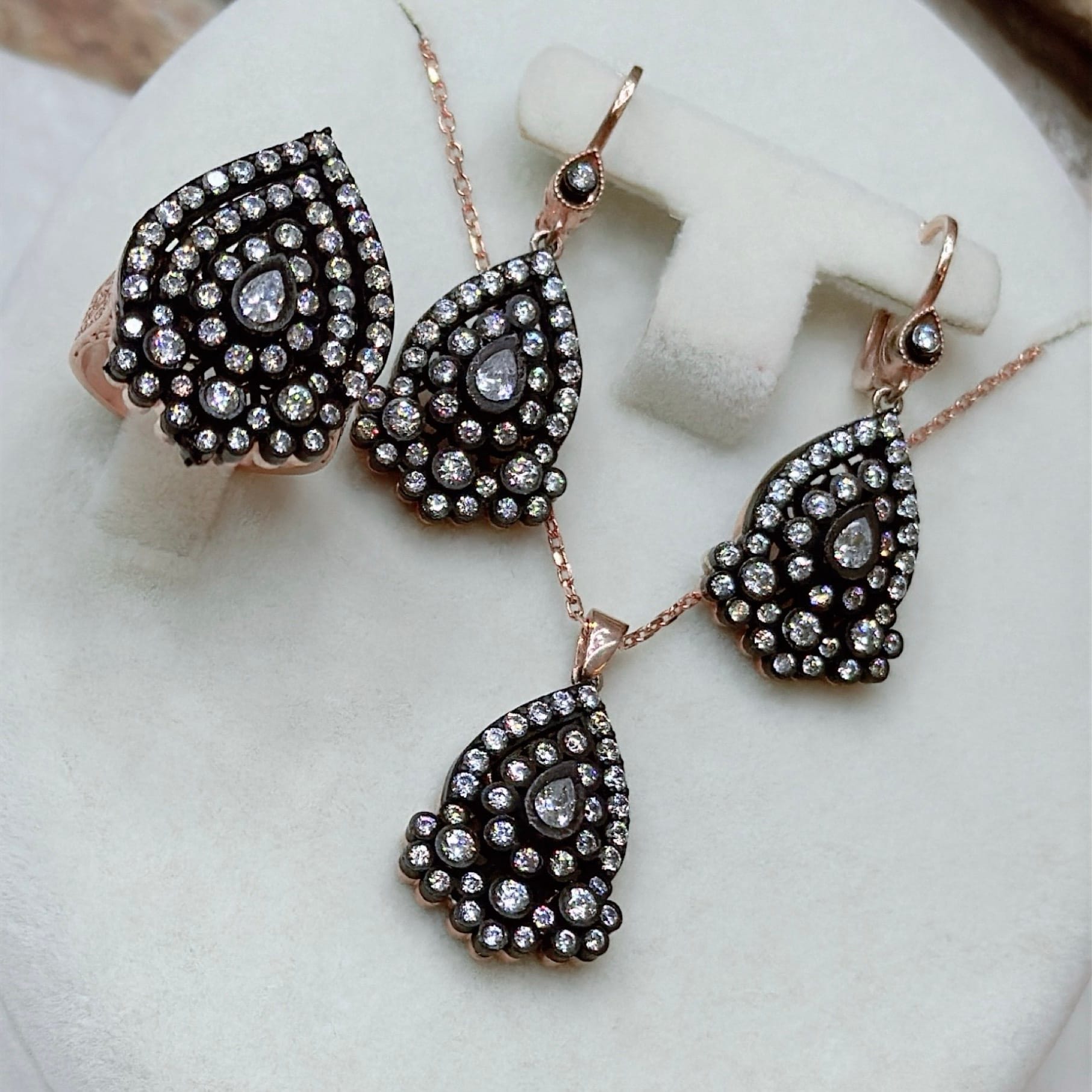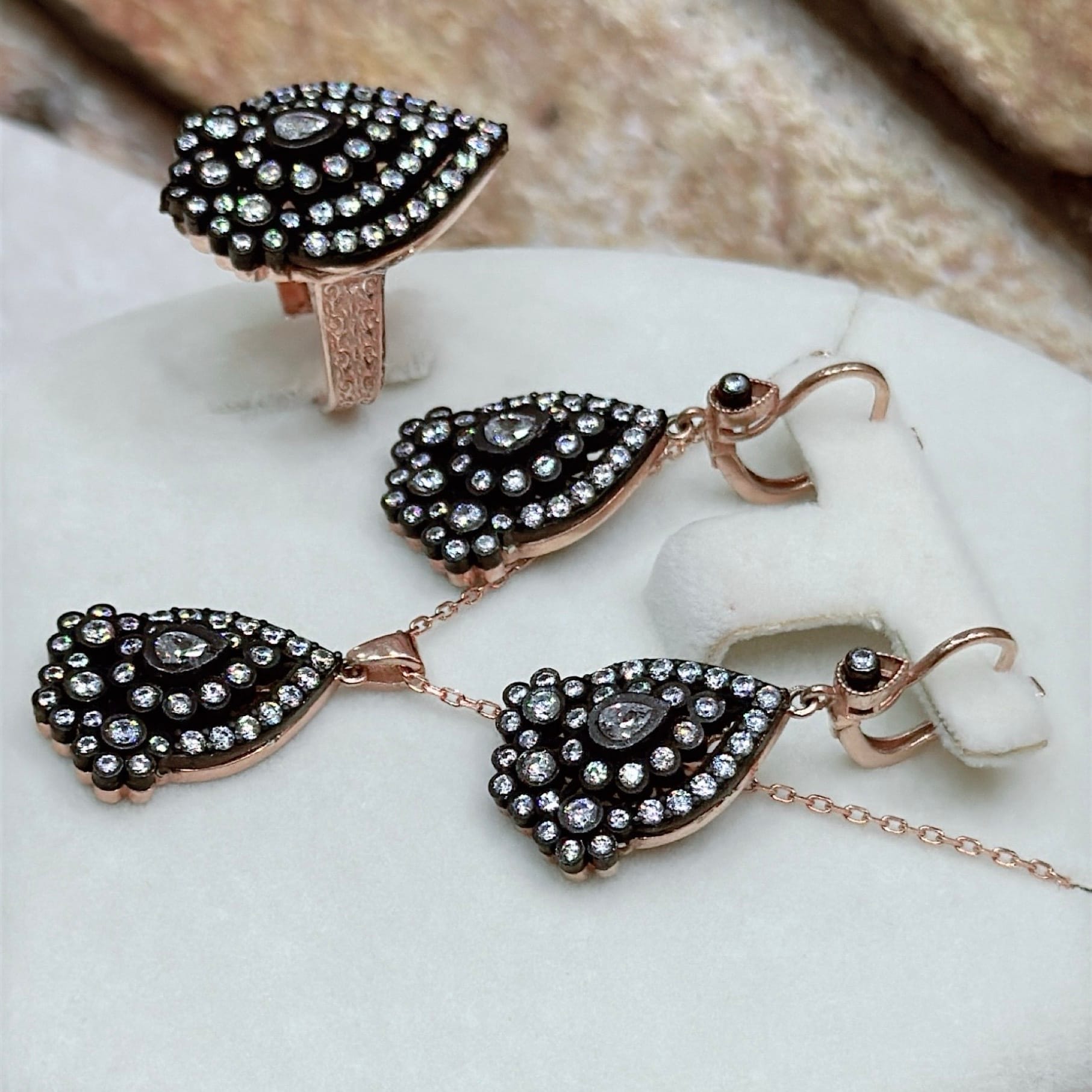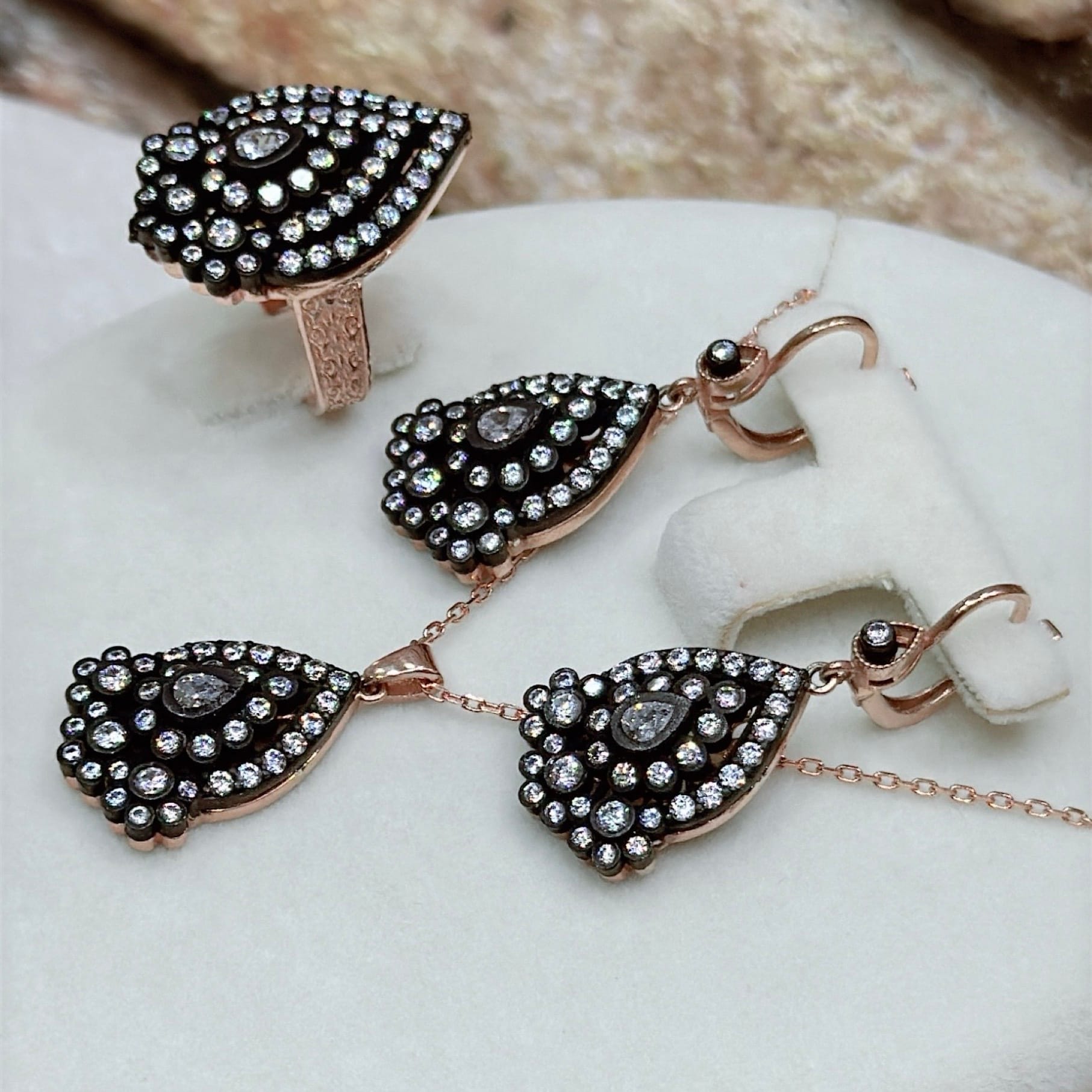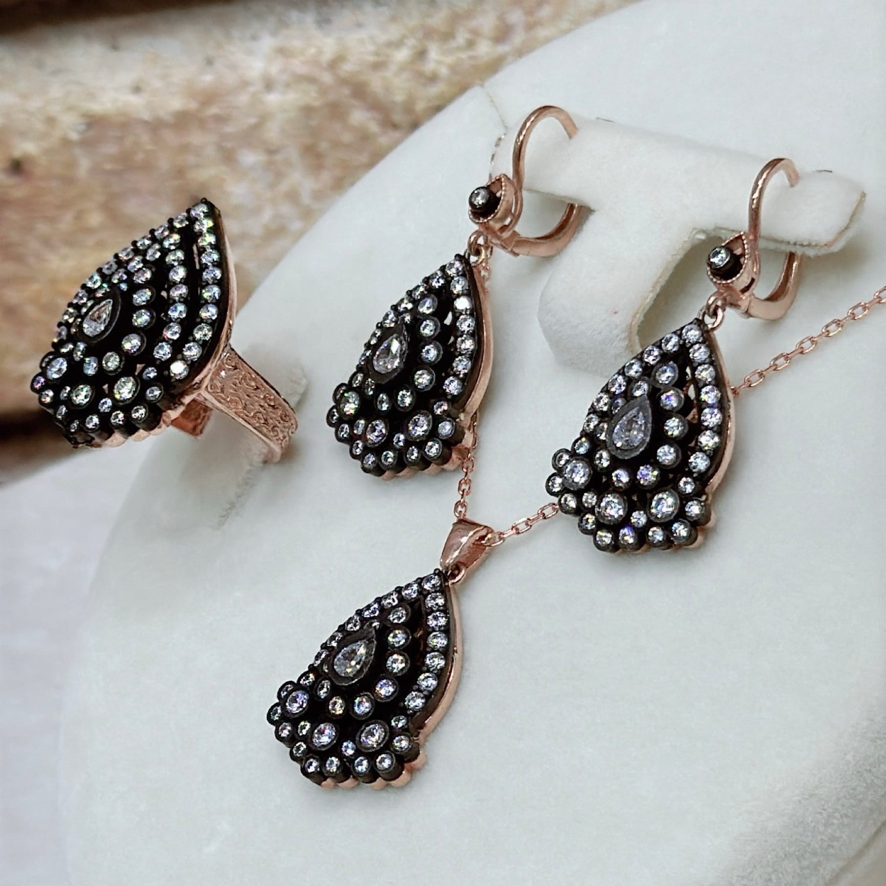 *Saray Model Rosegold Renk Gümüş Üçlü Set Takım