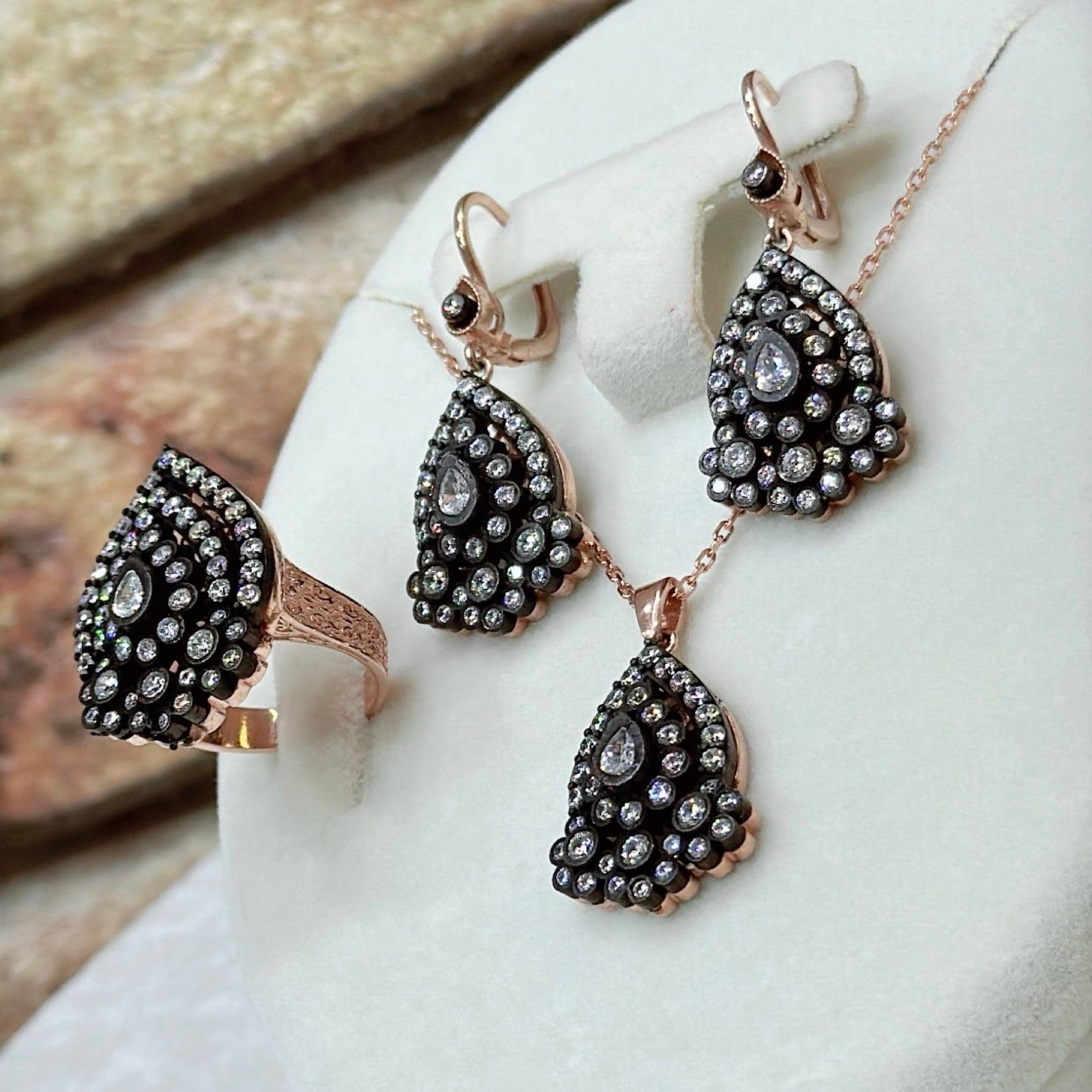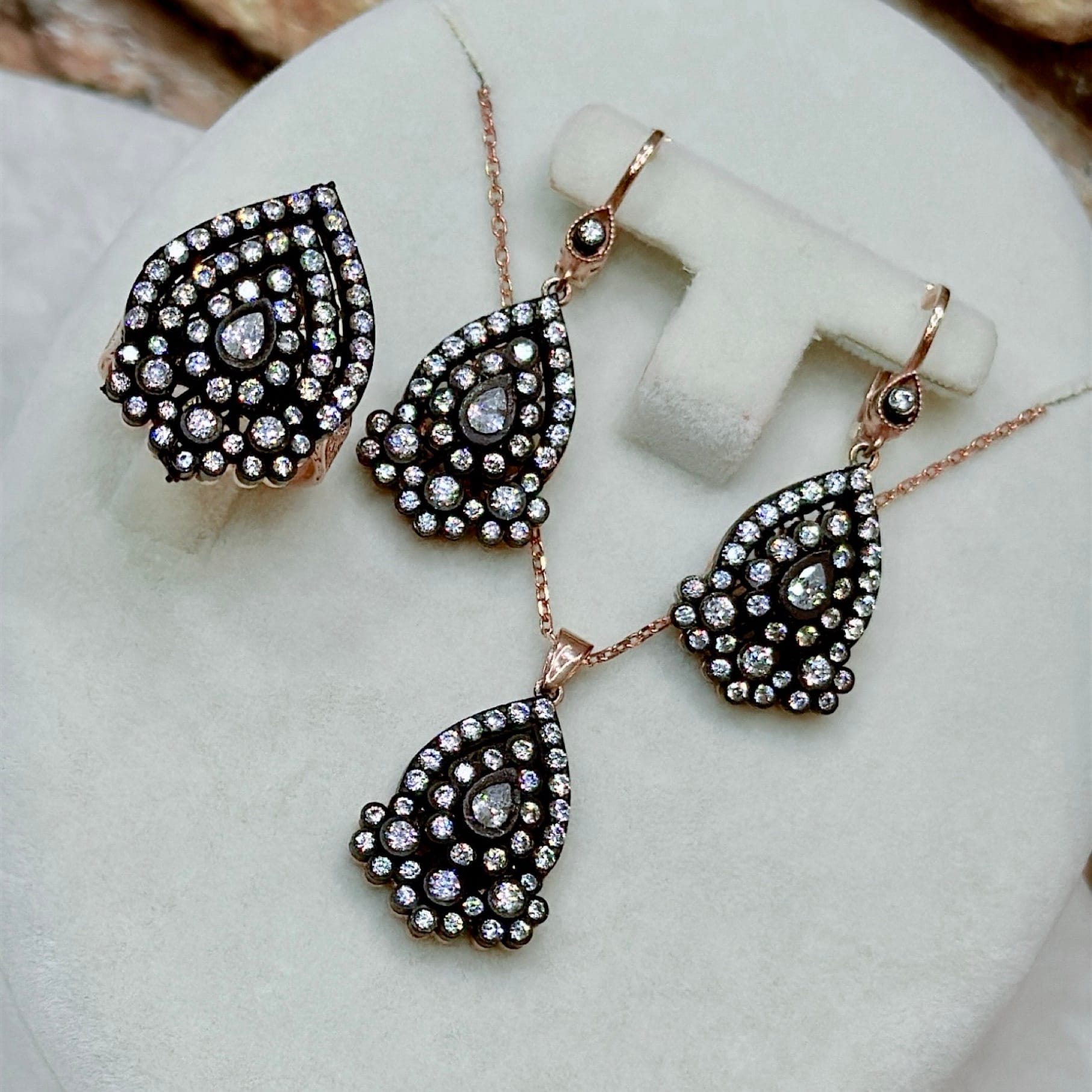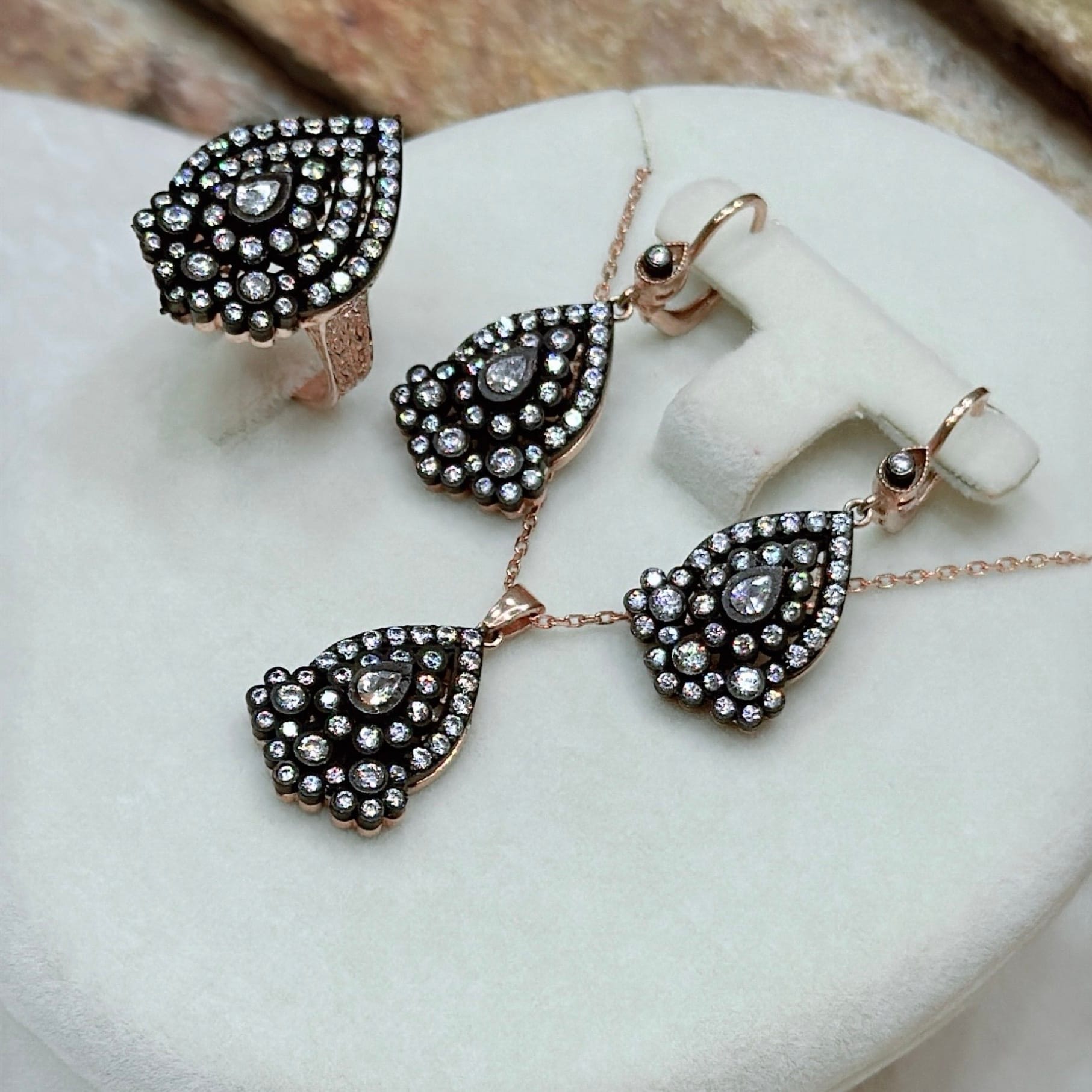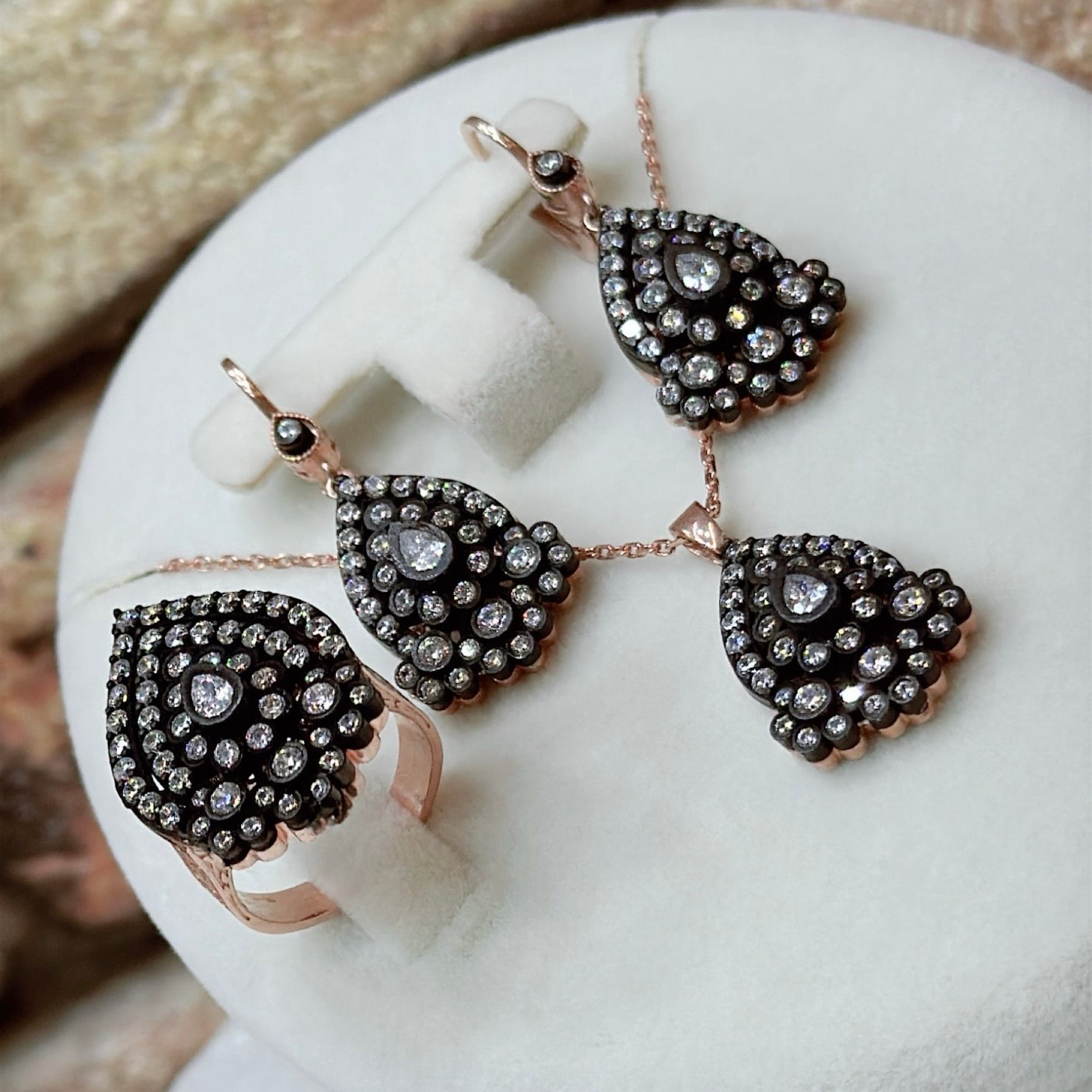 *Saray Model Rosegold Renk Gümüş Üçlü Set Takım