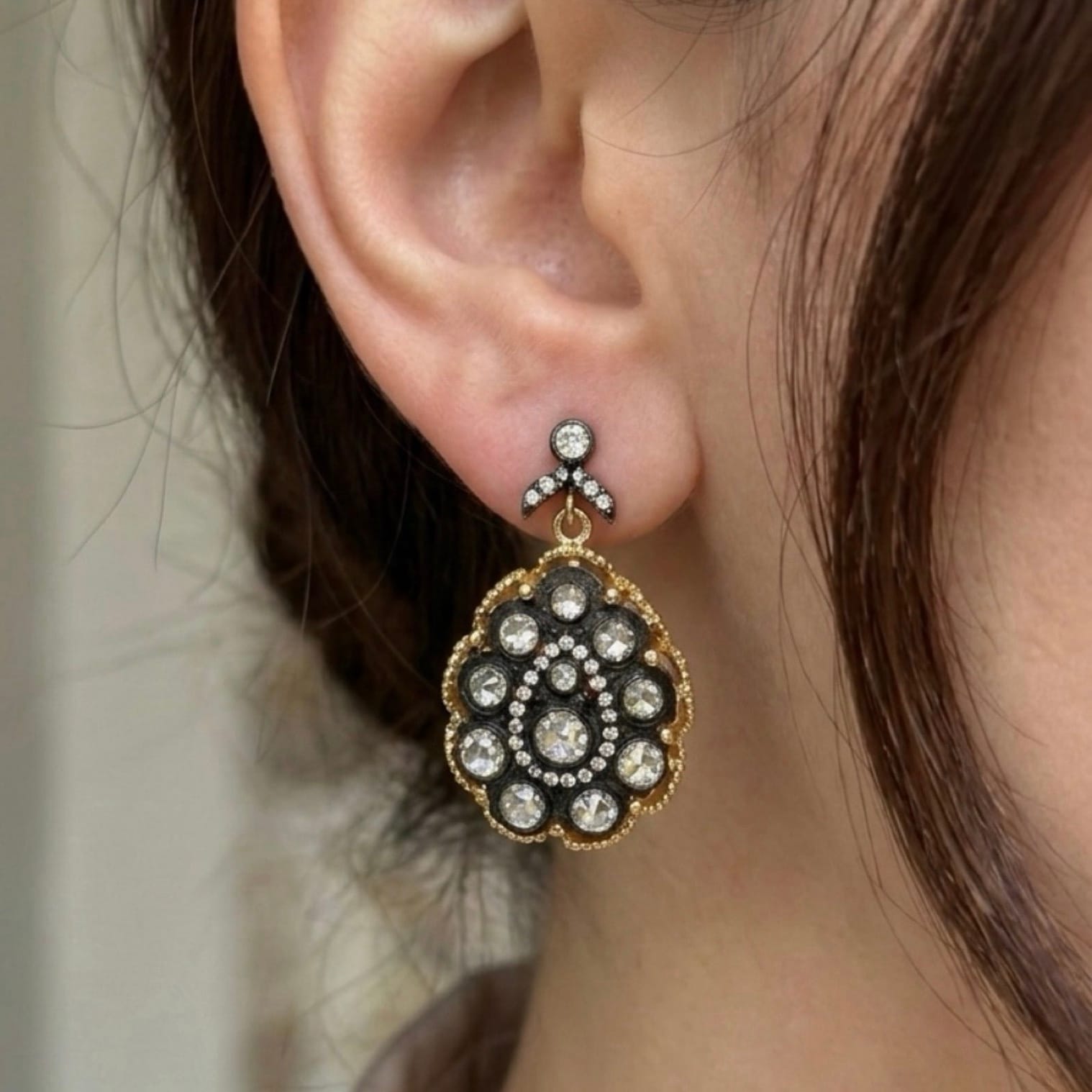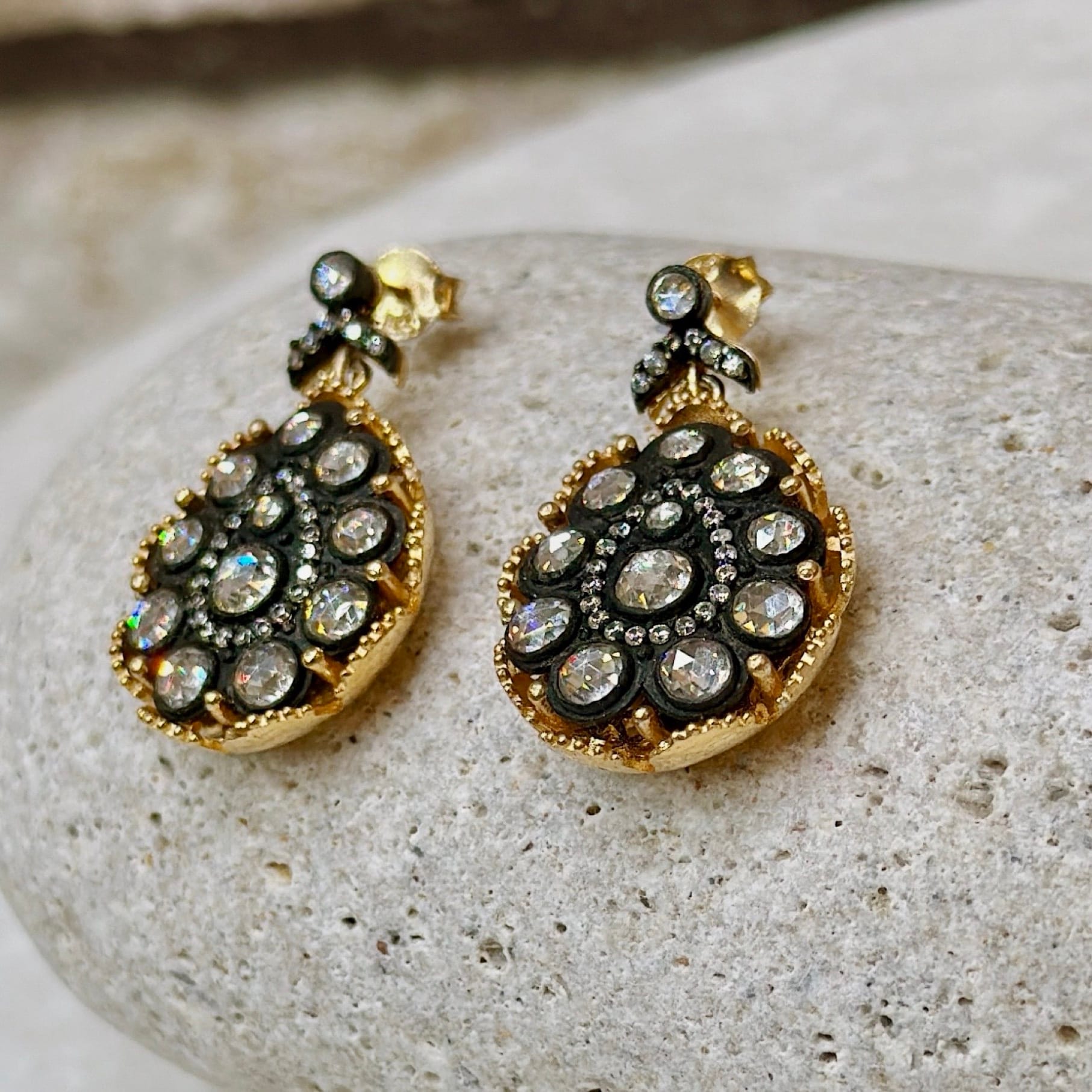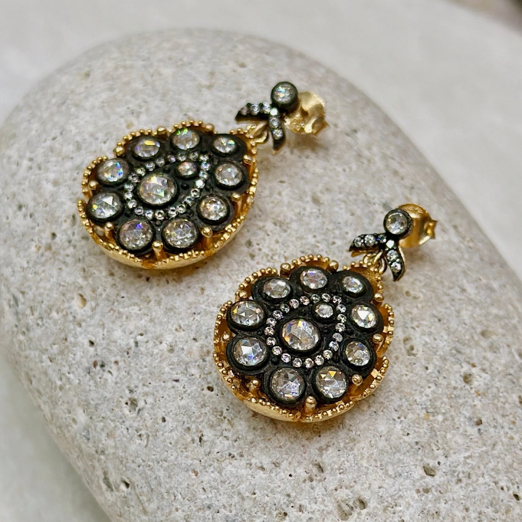 El işçiliği ile üretilmiş elmas model küpe