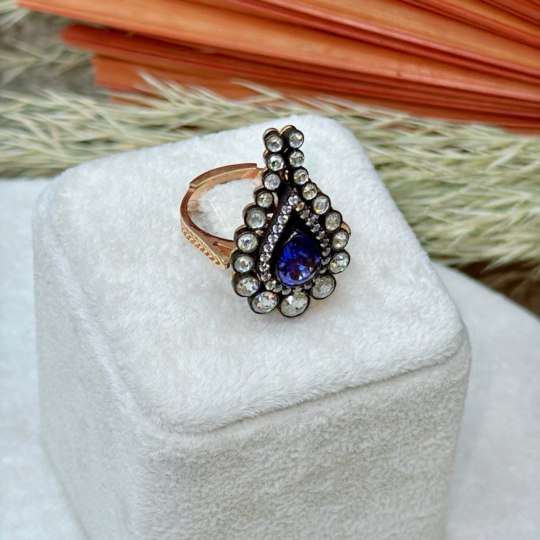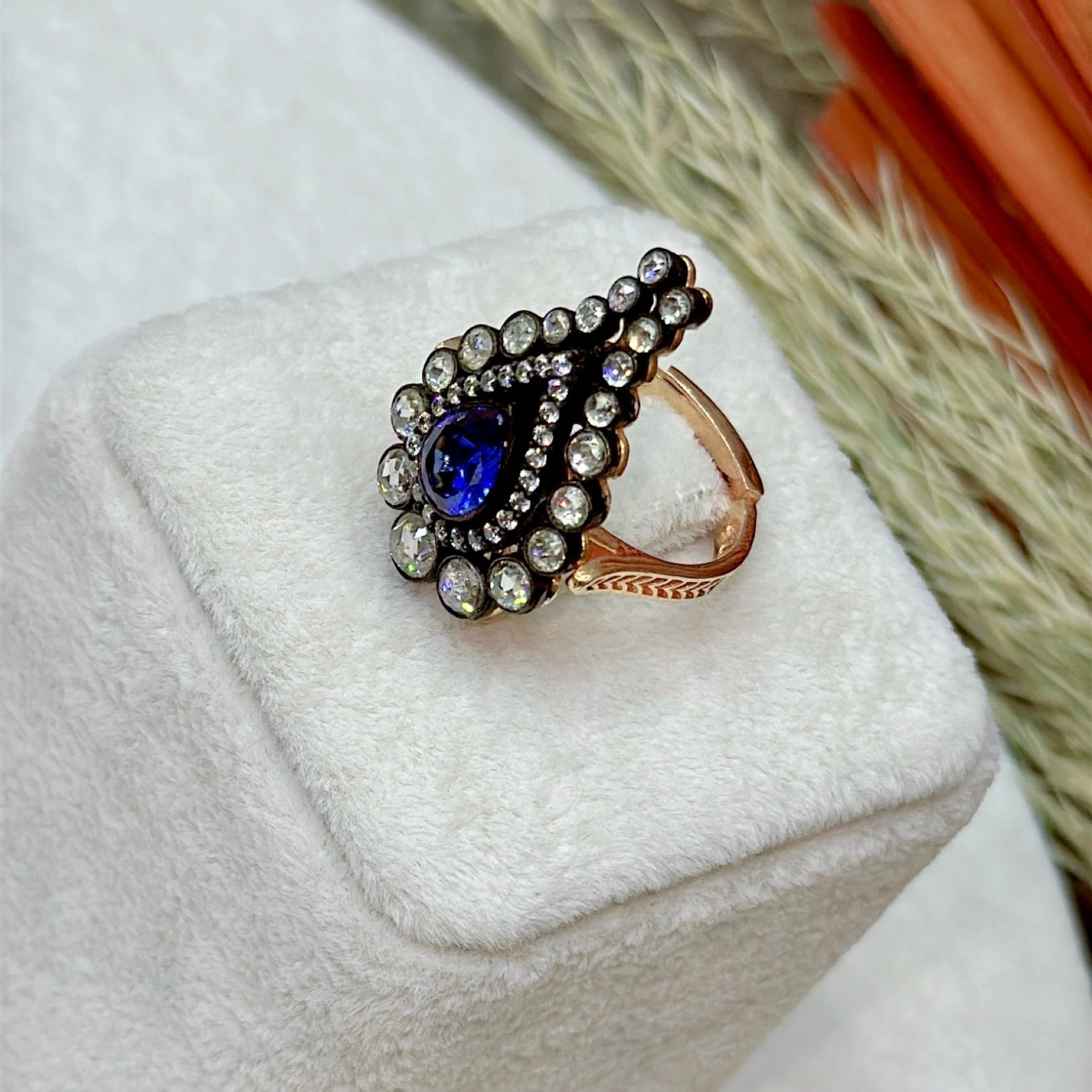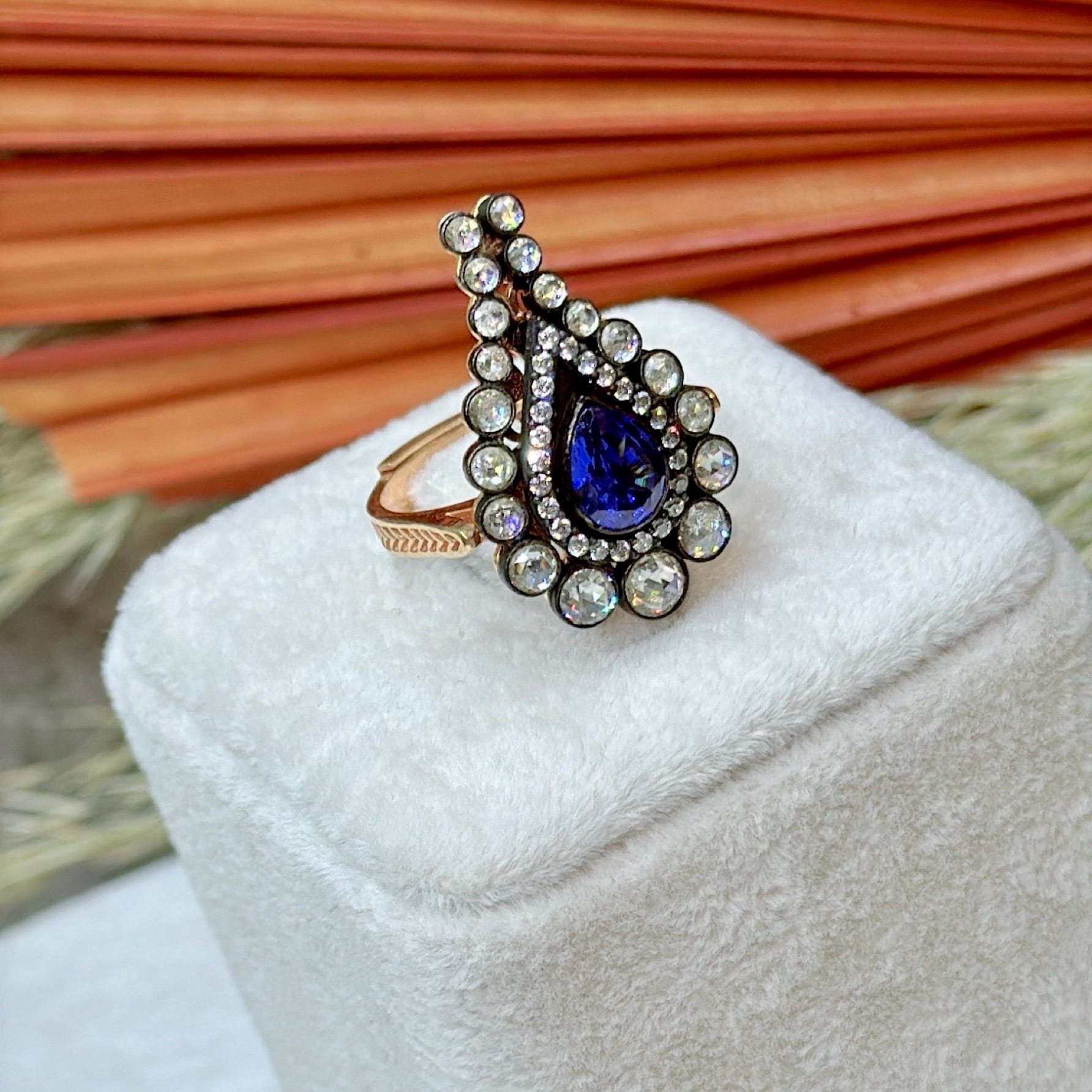 *RoseGold Renk Safir Renk Zirkon Taşlı Gümüş Yüzük