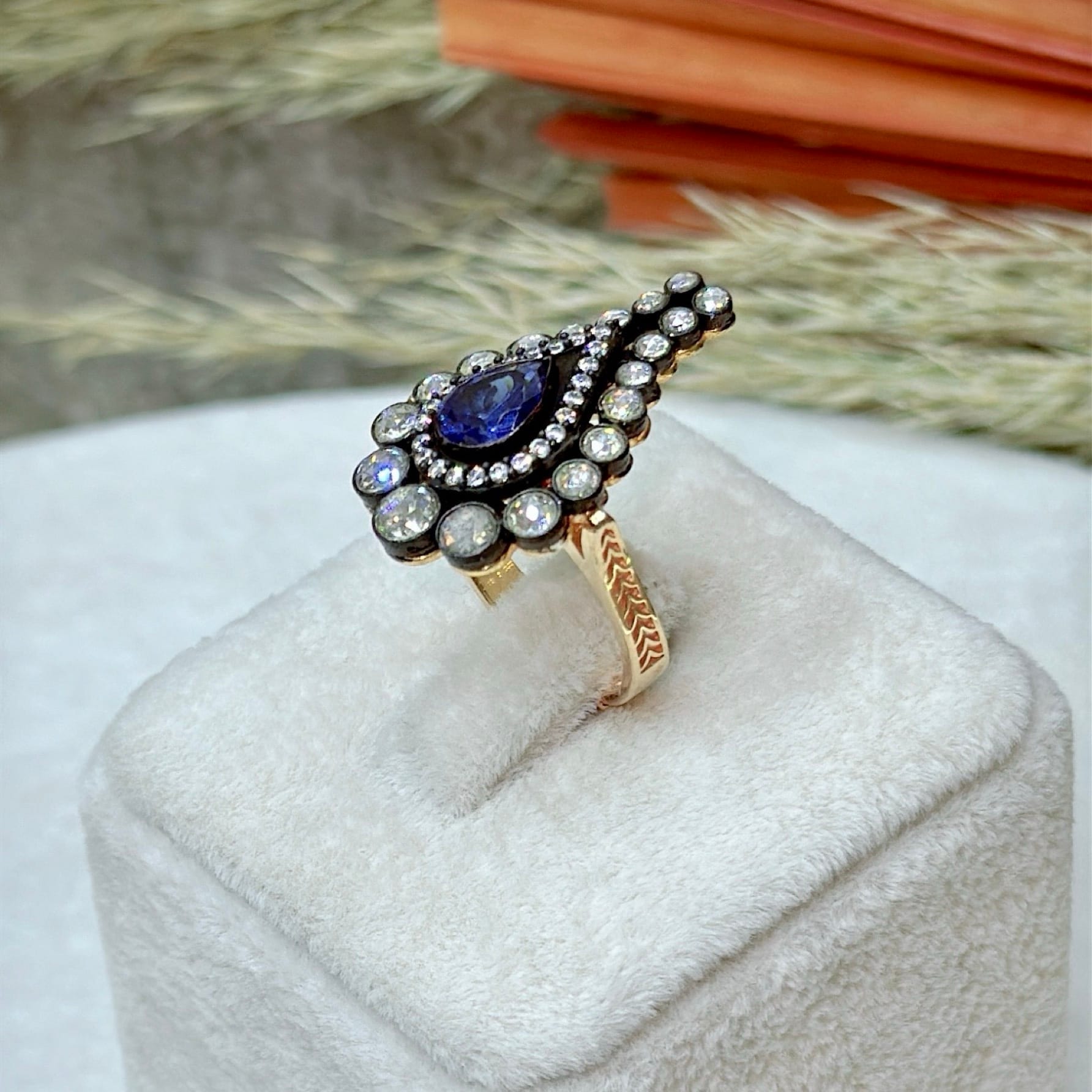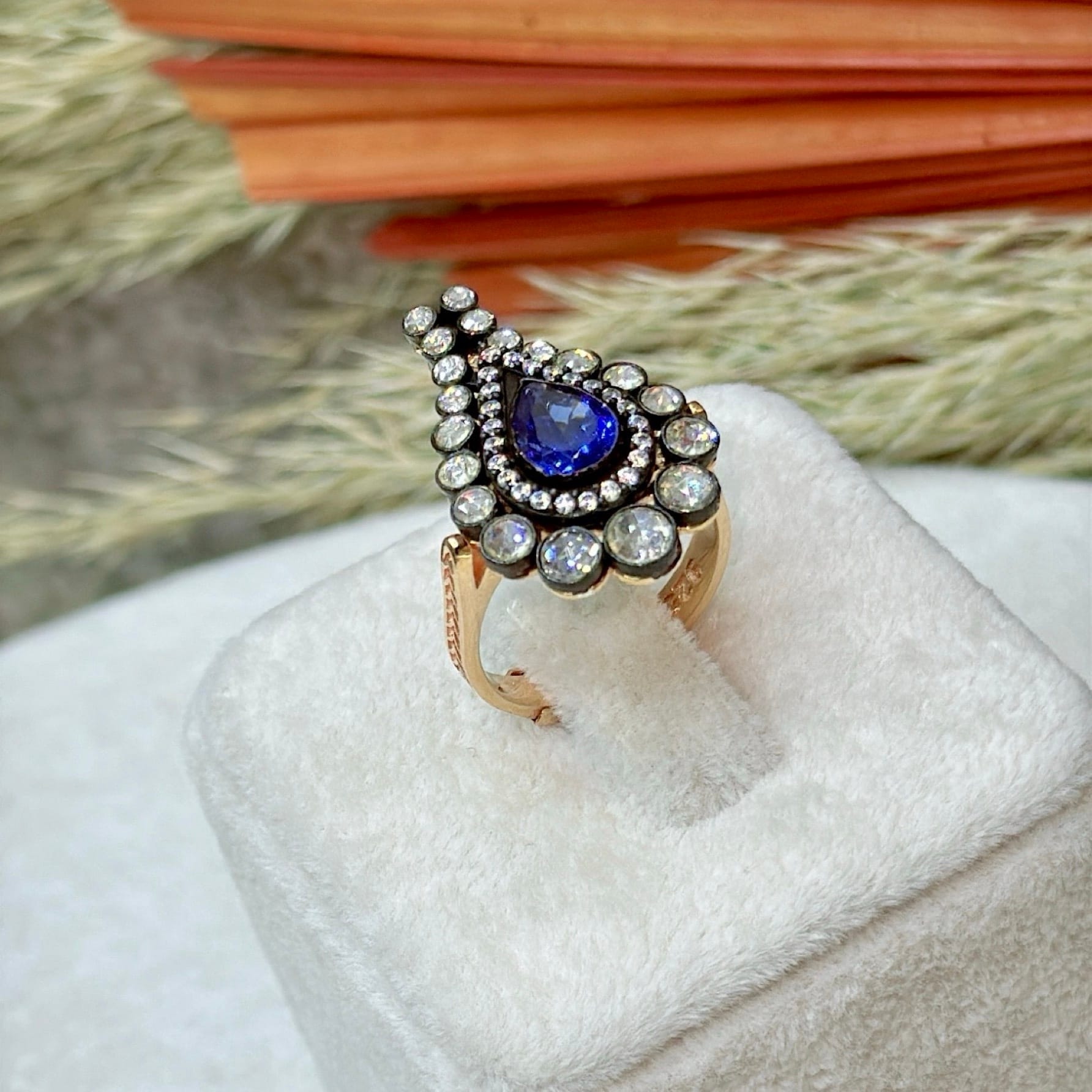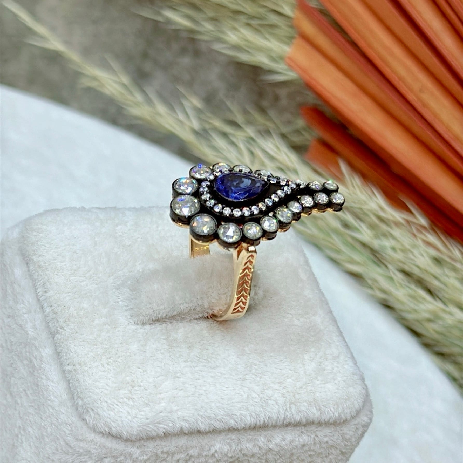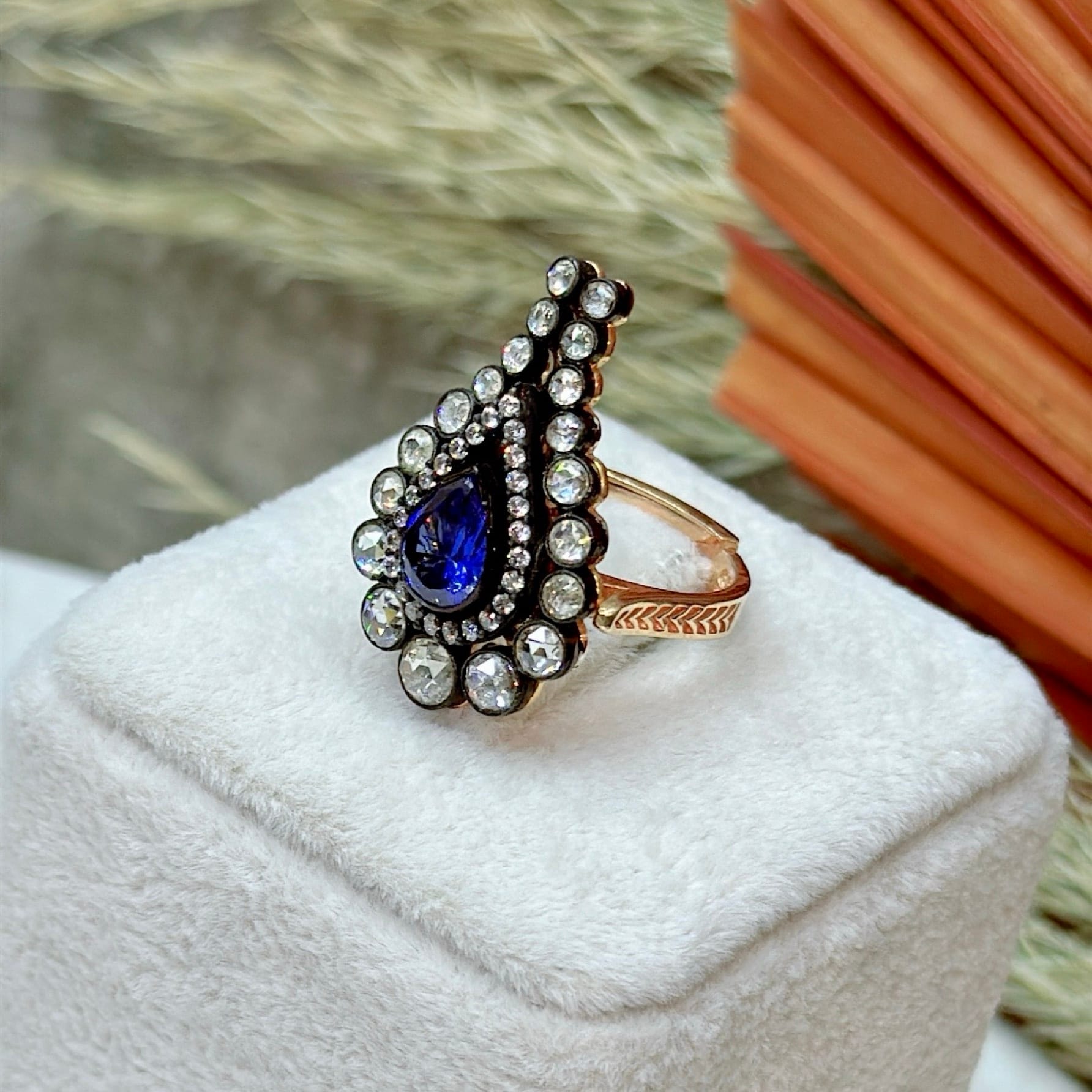 *RoseGold Renk Safir Renk Zirkon Taşlı Gümüş Yüzük