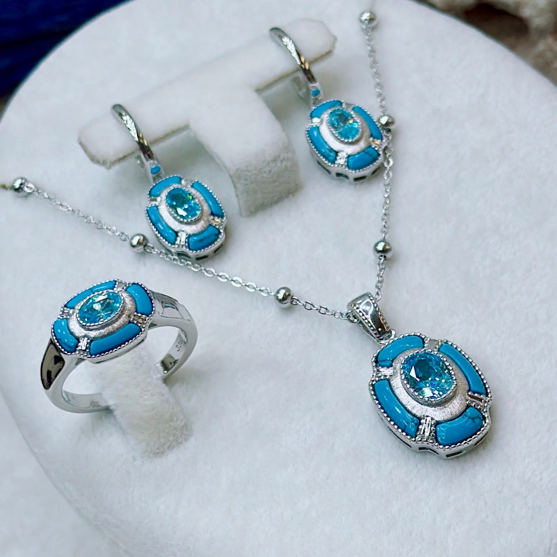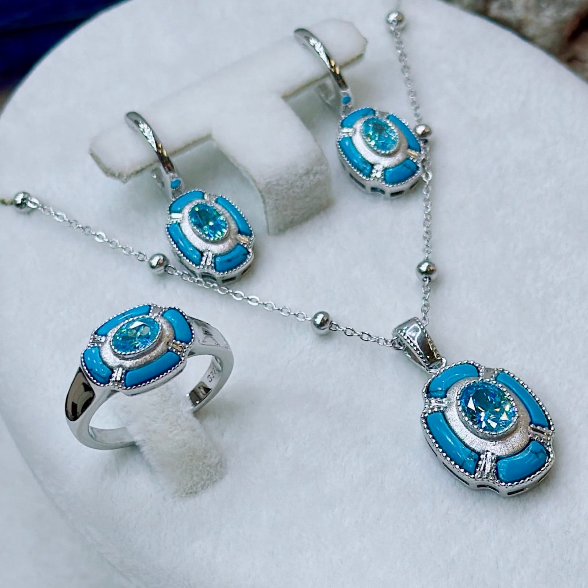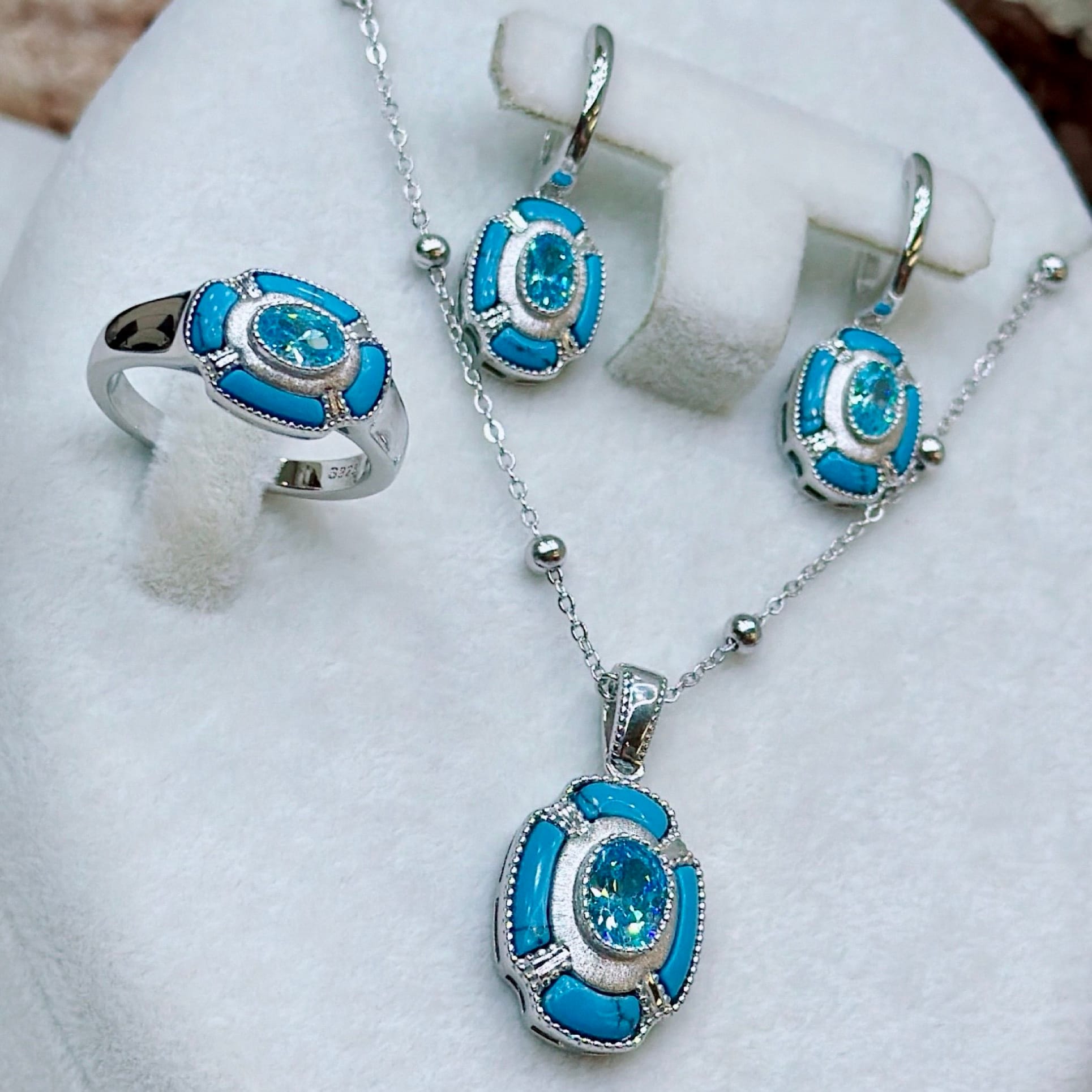 *Gümüş Dörtlü Set Takım (Kolye-Yüzük-Küpe-Bileklik)