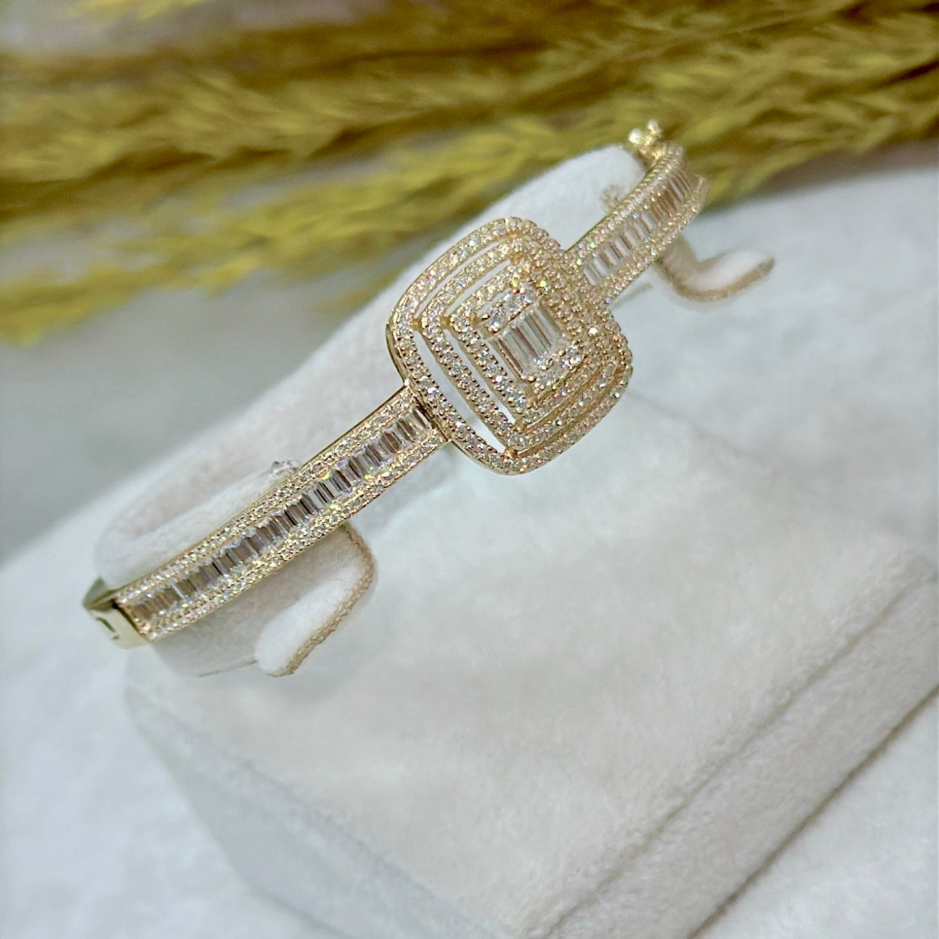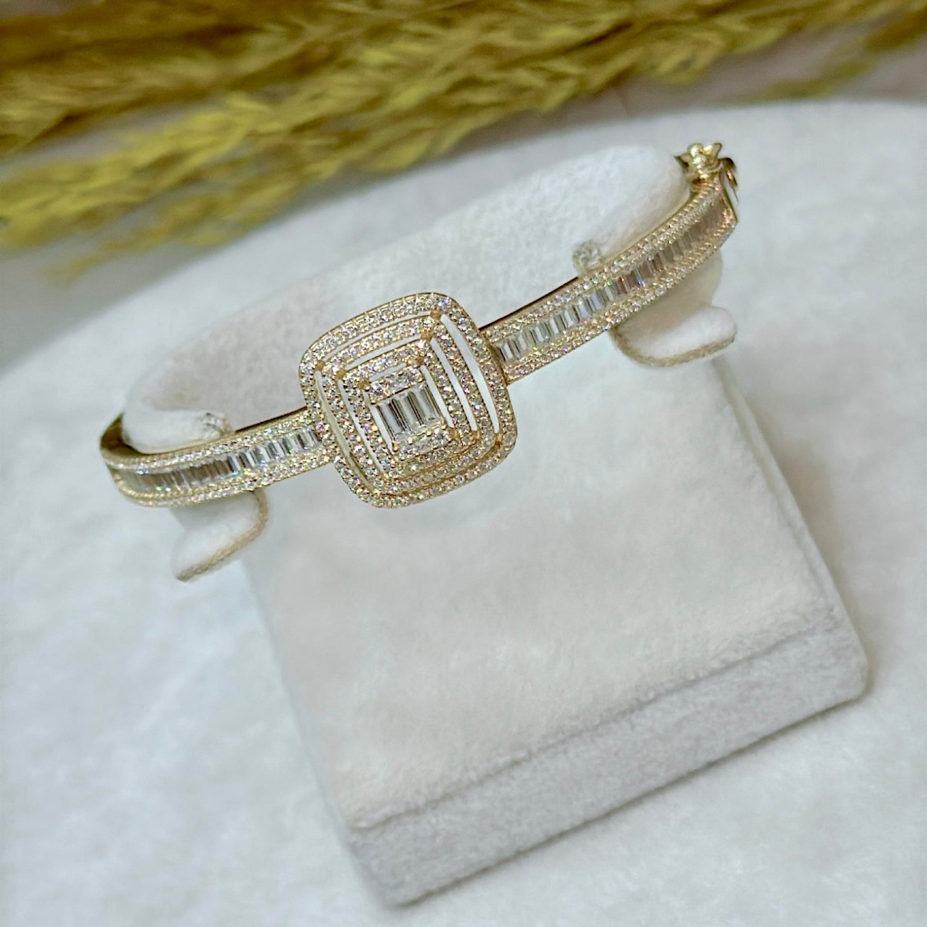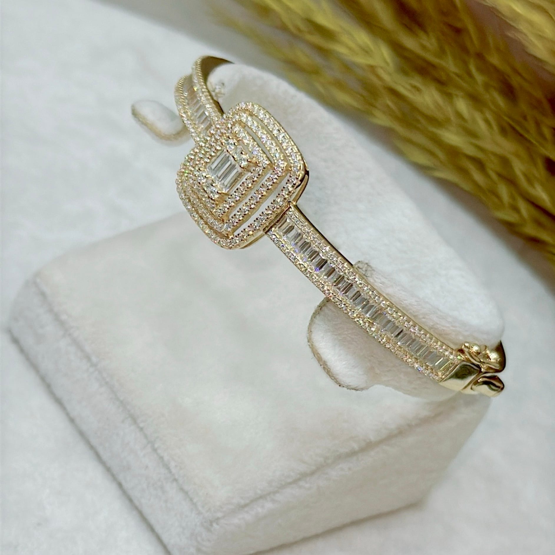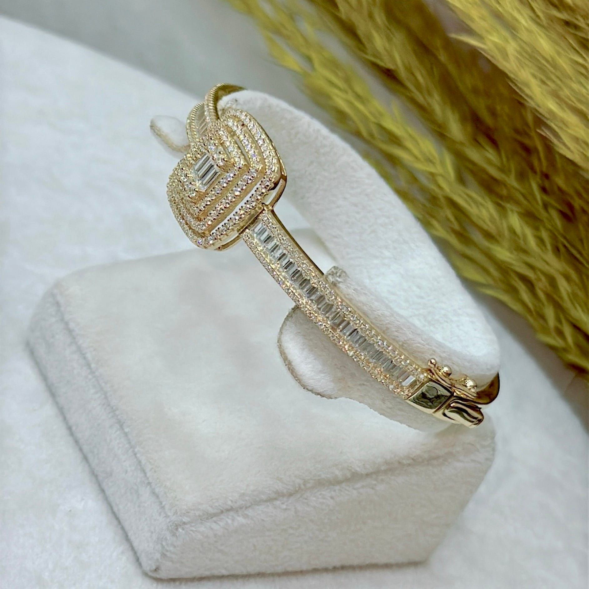 Gold Renk Pırlanta Montür Gümüş Kelepçe Bileklik