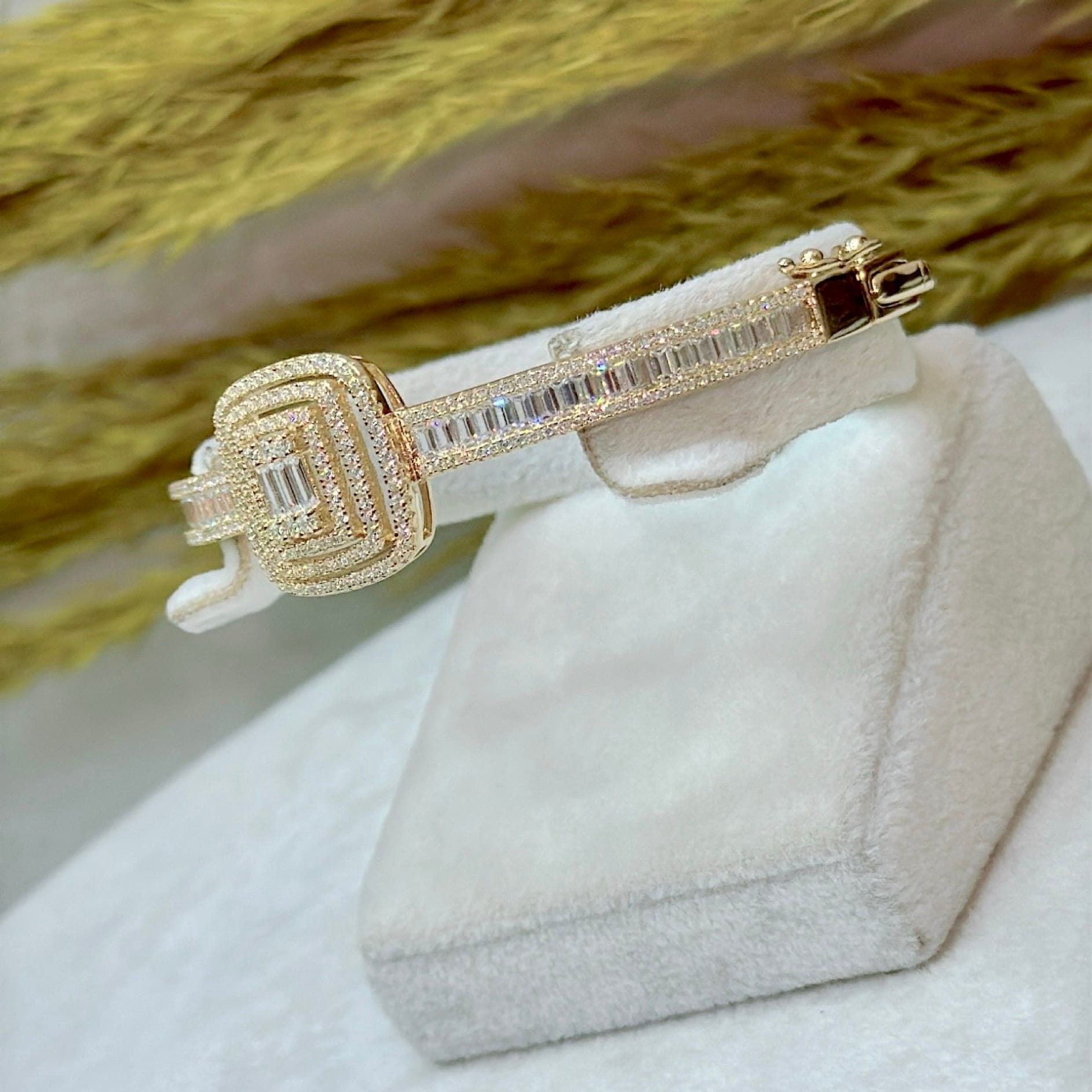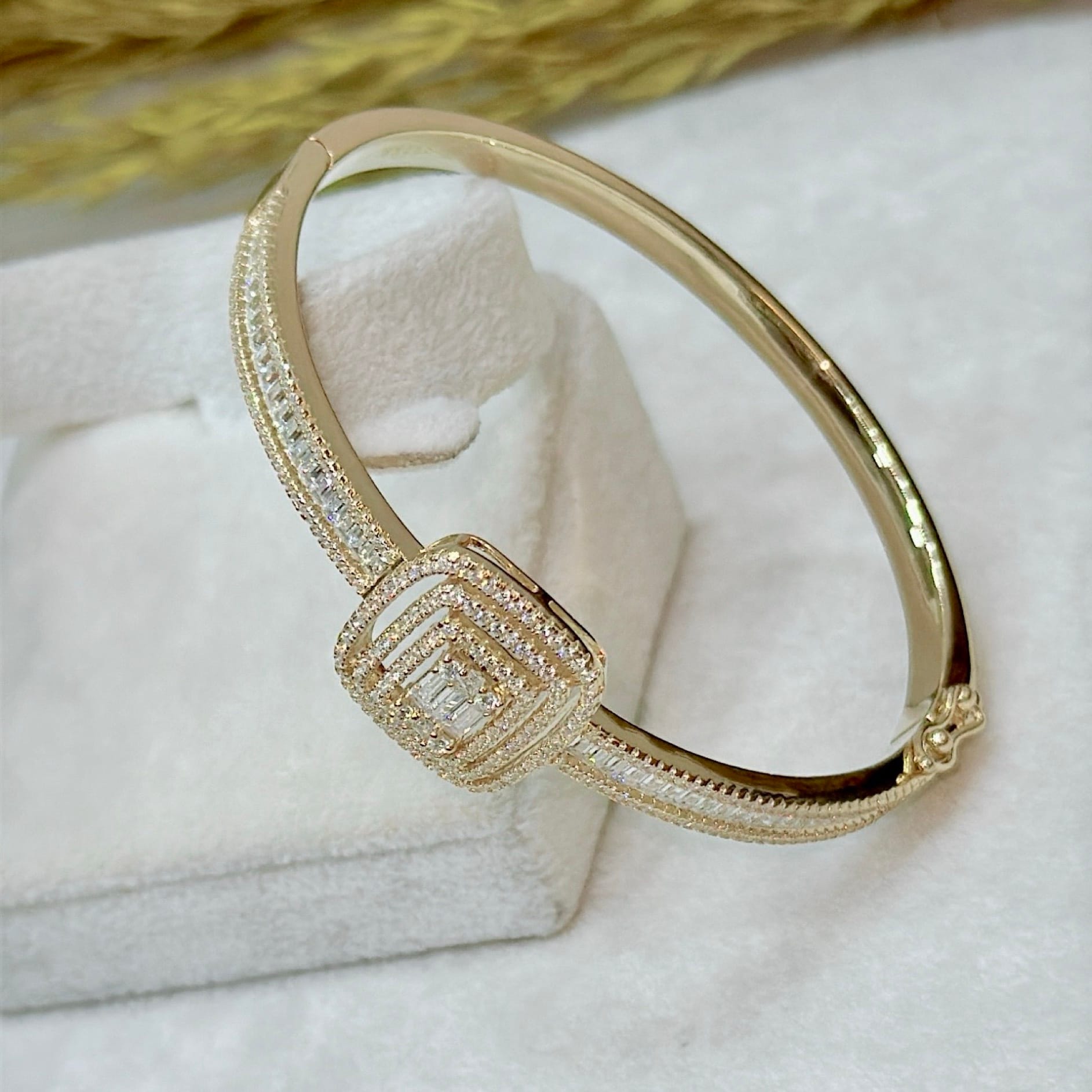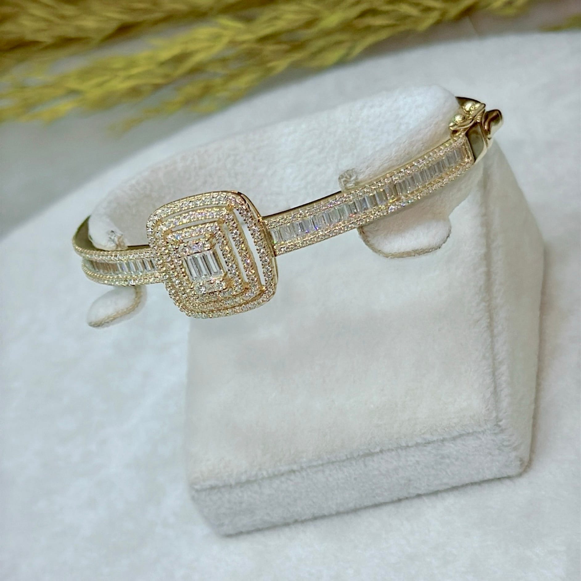Gold Renk Pırlanta Montür Gümüş Kelepçe Bileklik