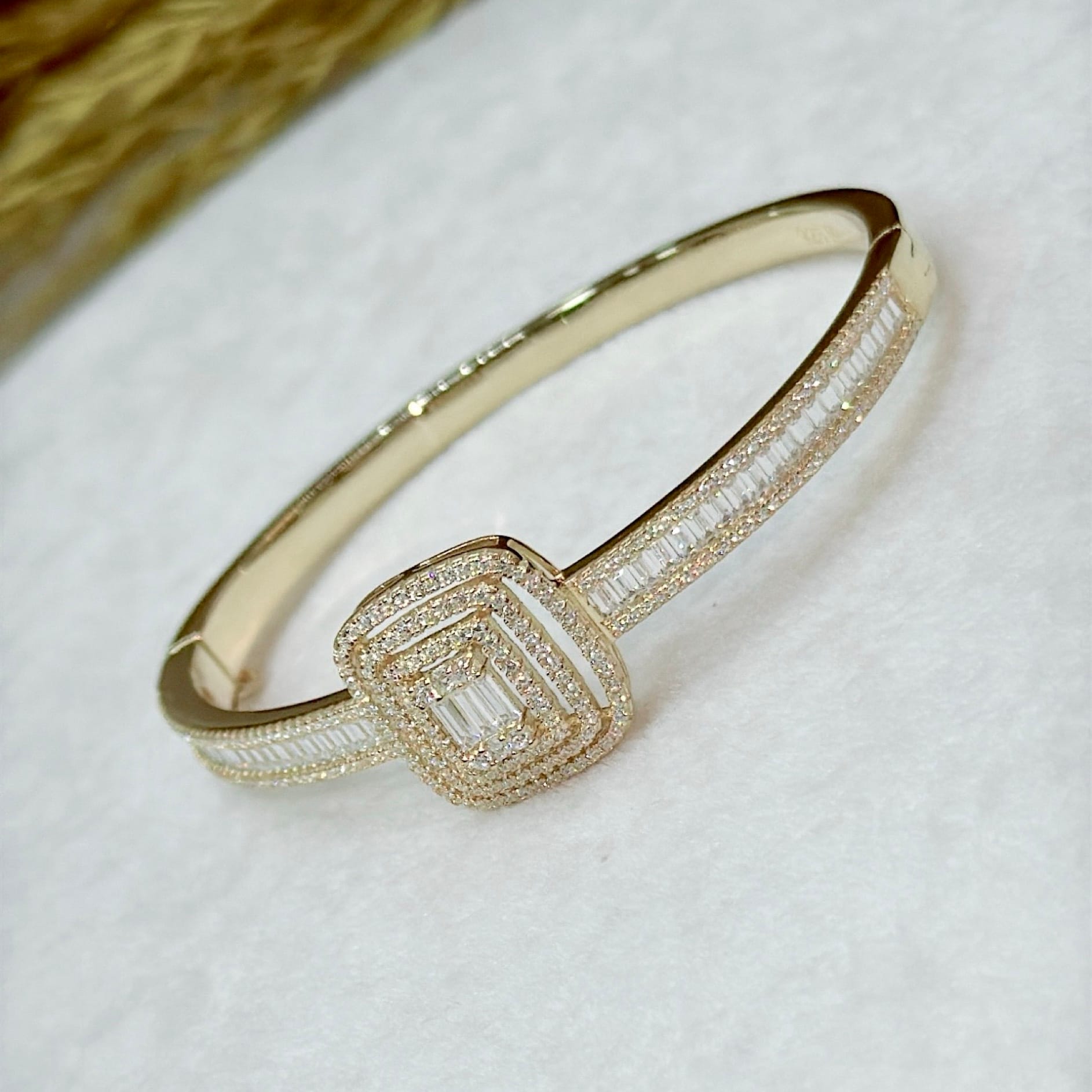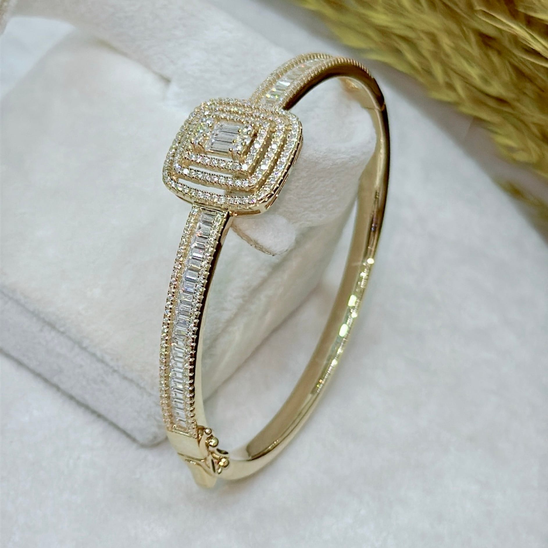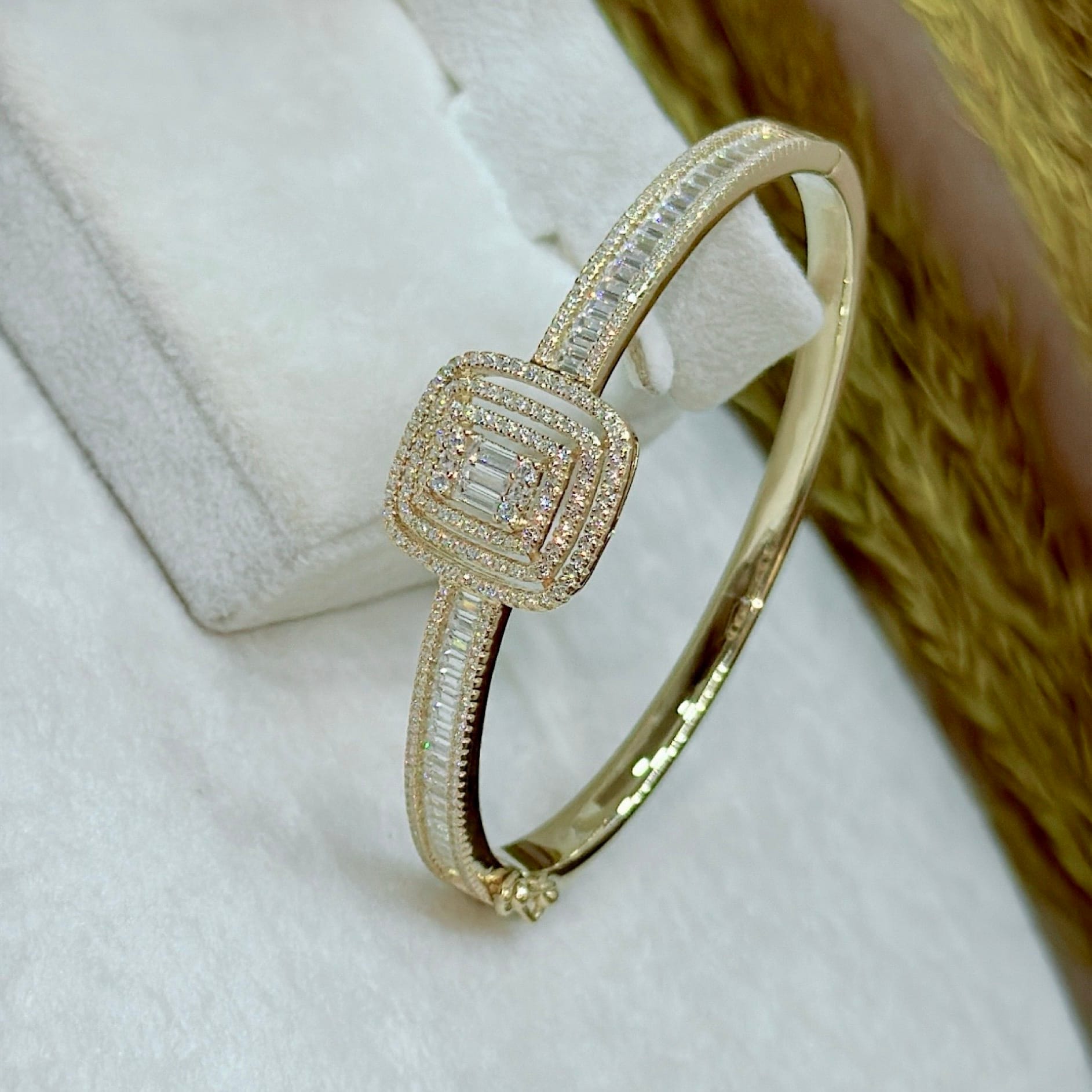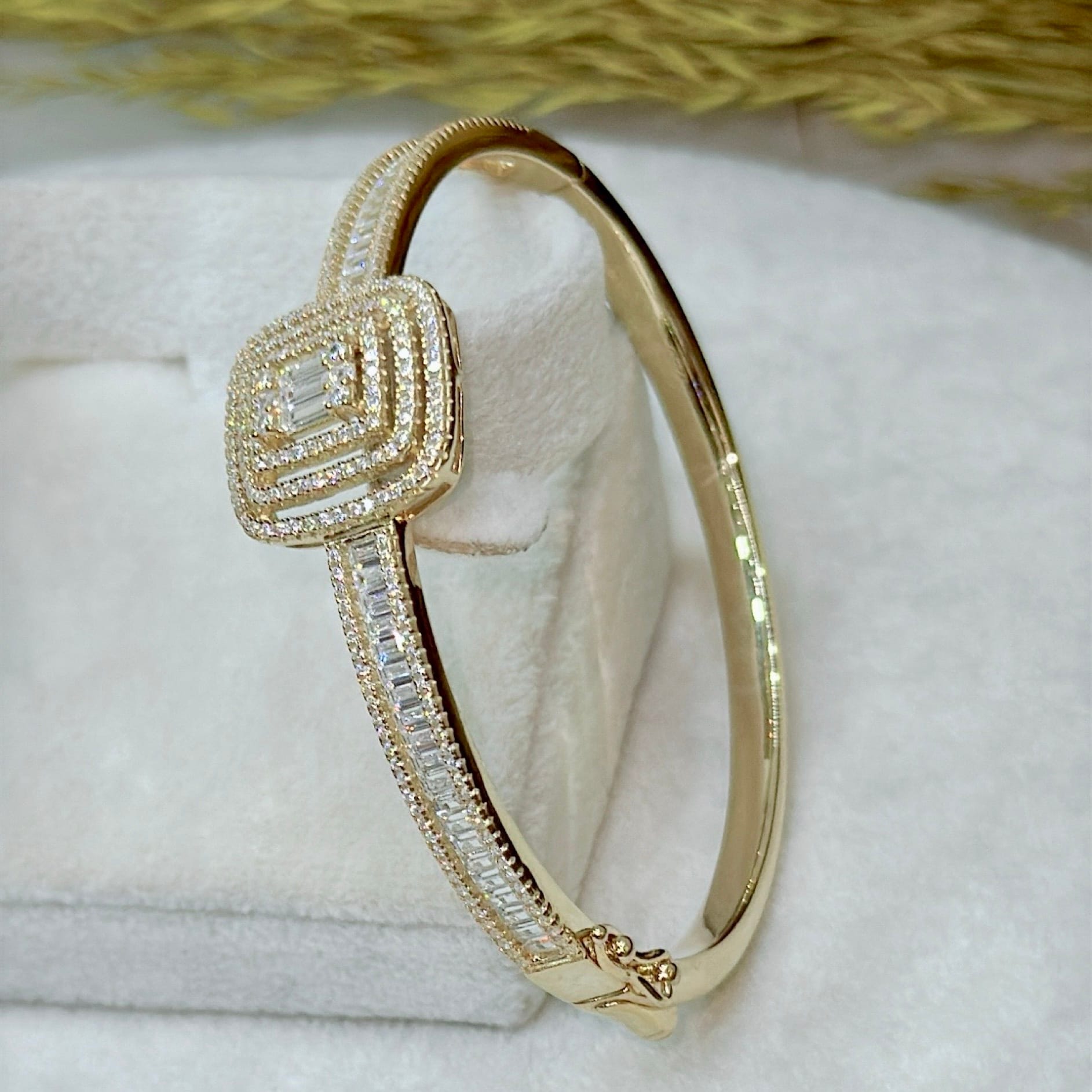 Gold Renk Pırlanta Montür Gümüş Kelepçe Bileklik