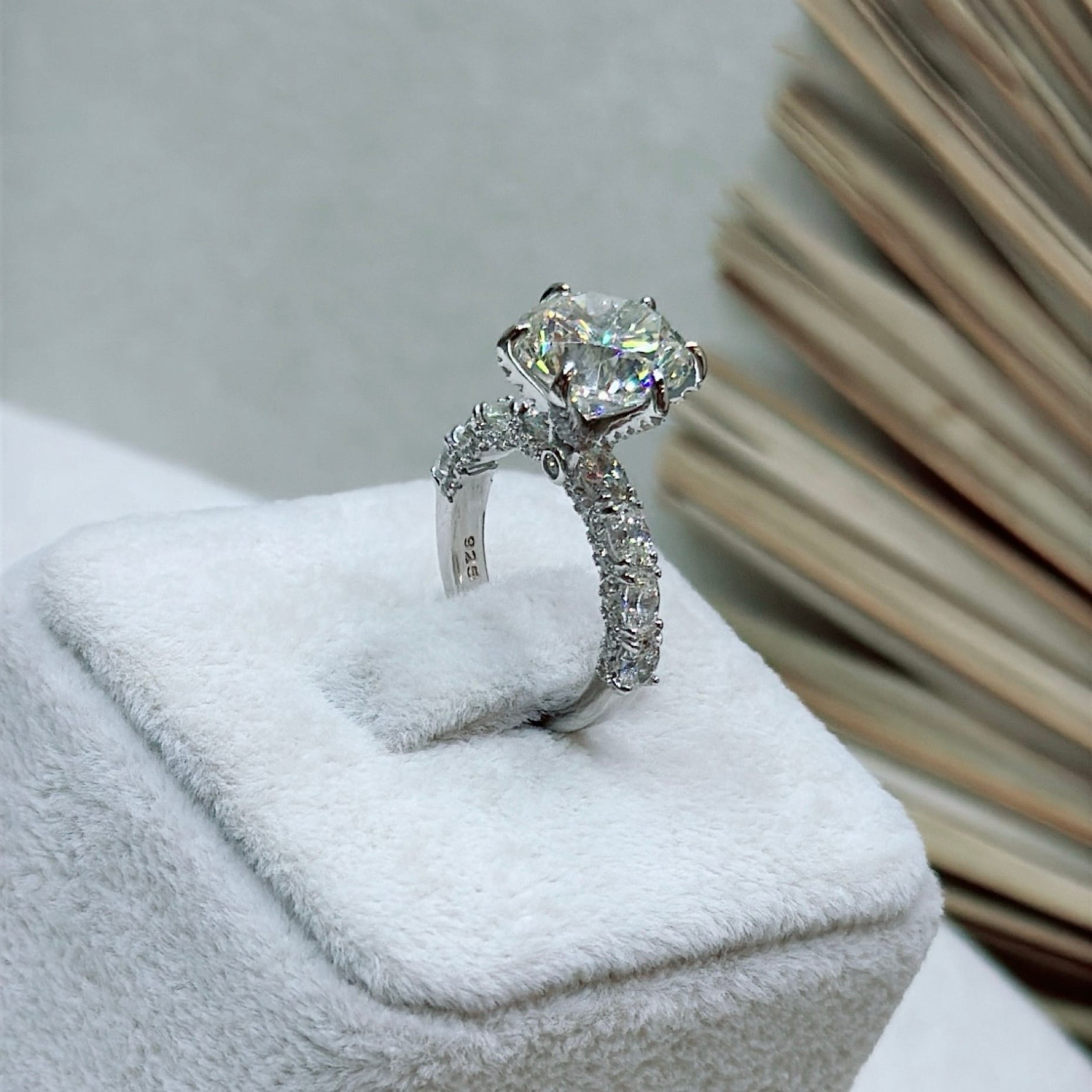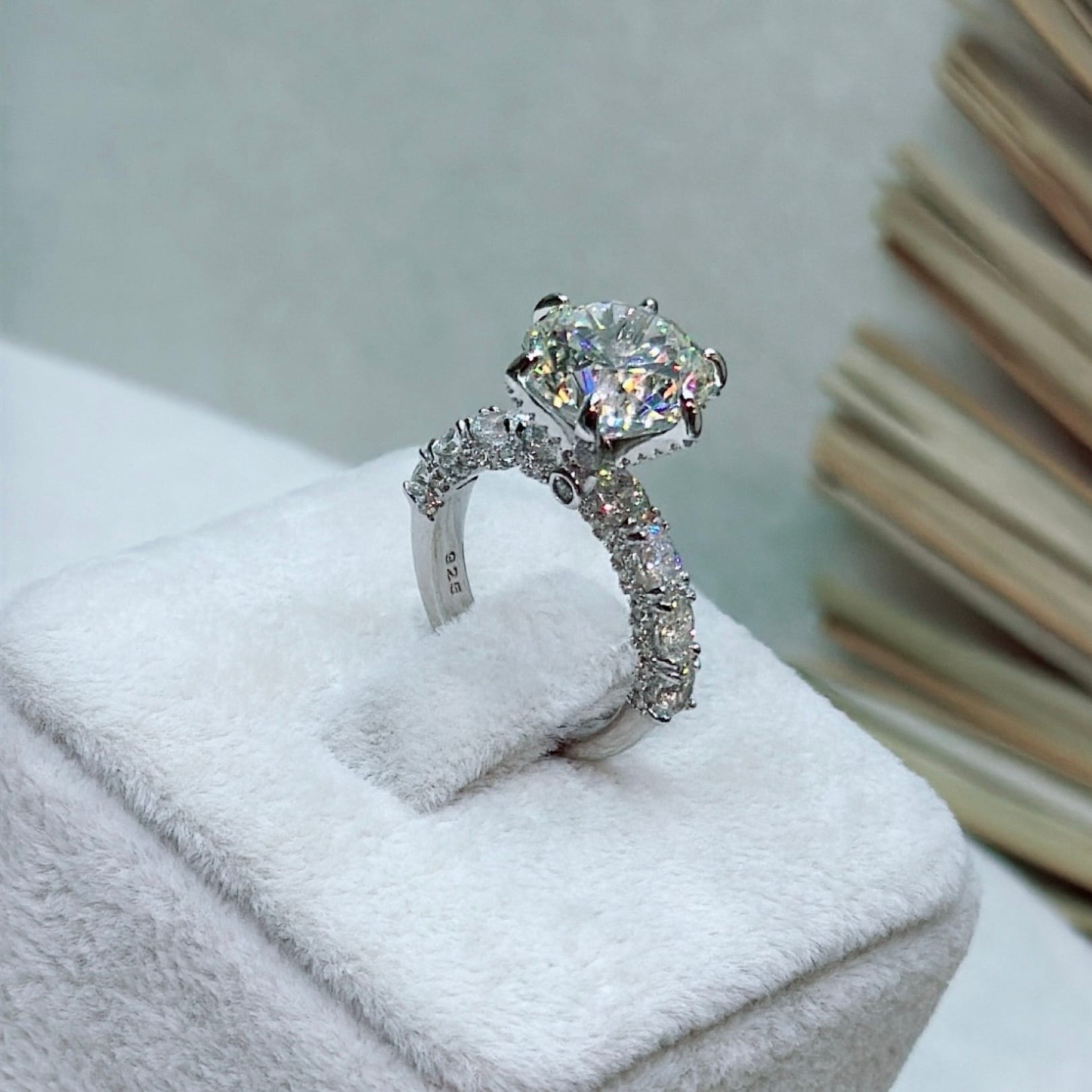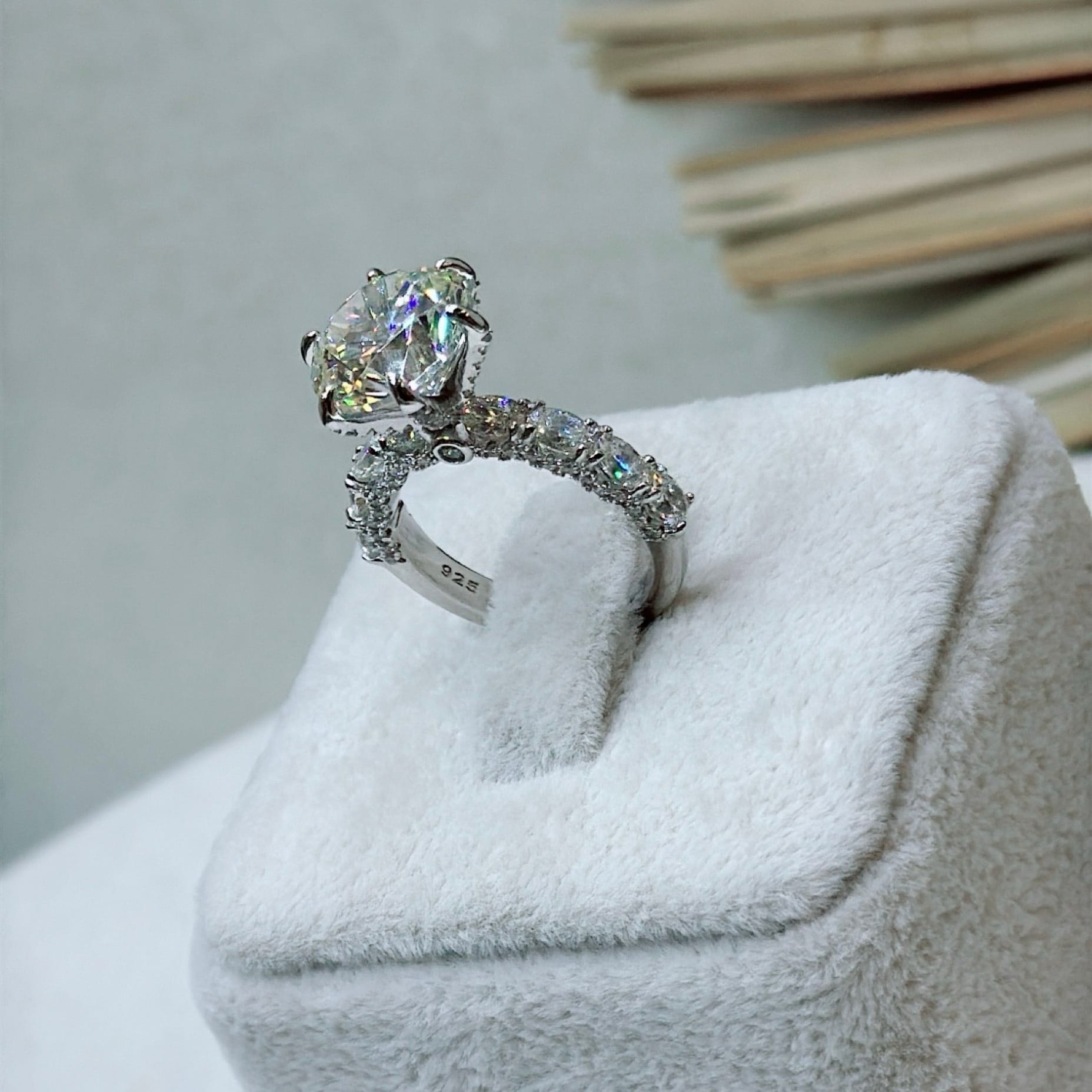 *Mozanit Taşlı Özel Üretim Tektaş Gümüş Yüzük