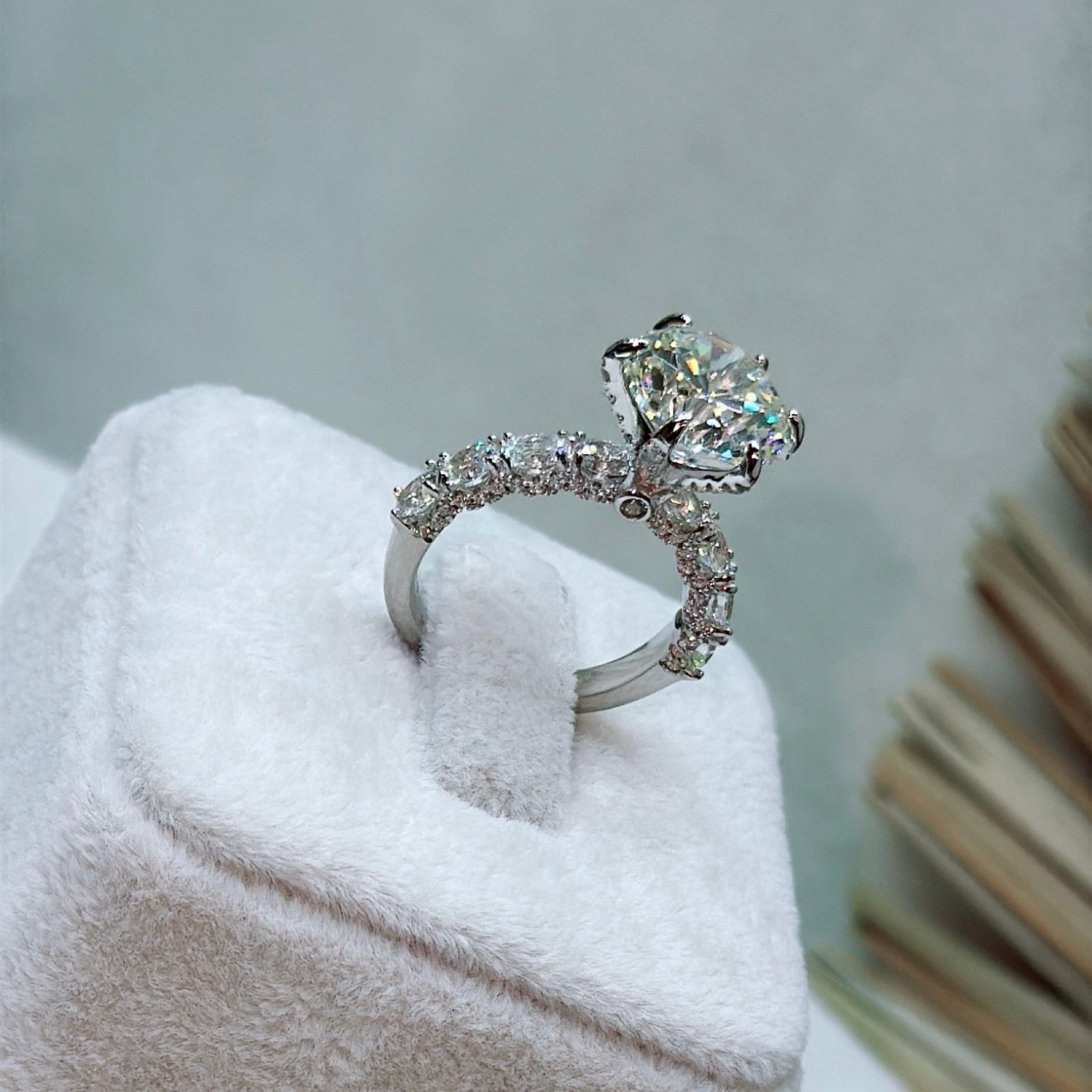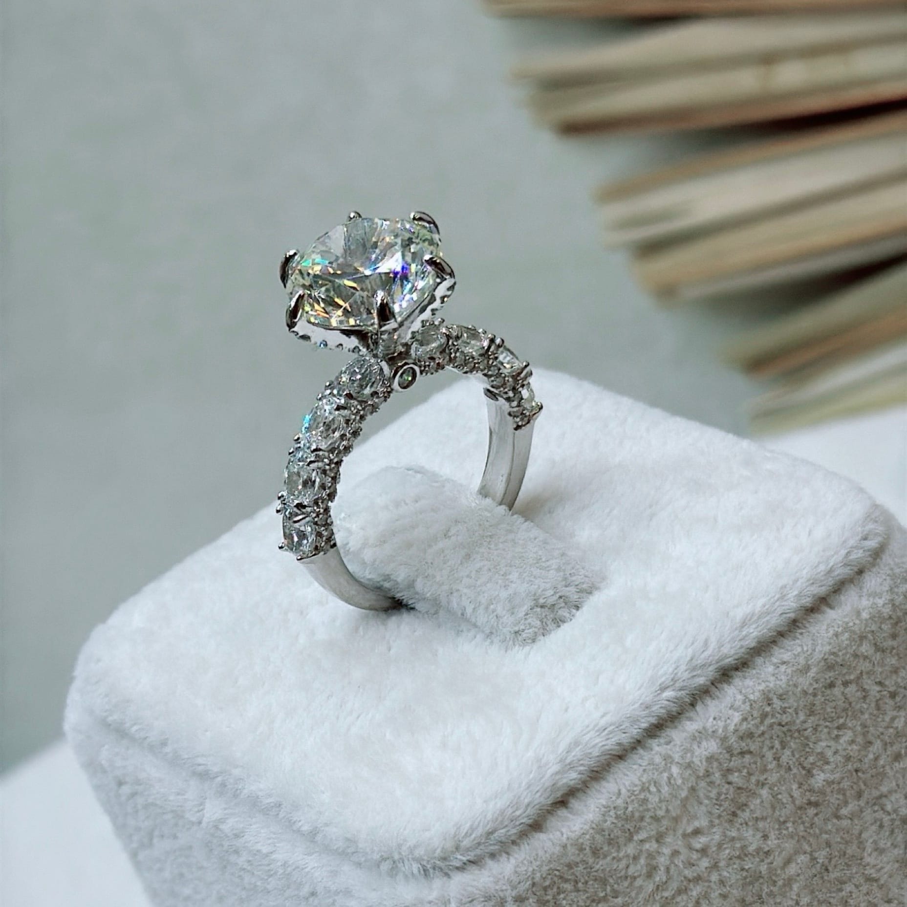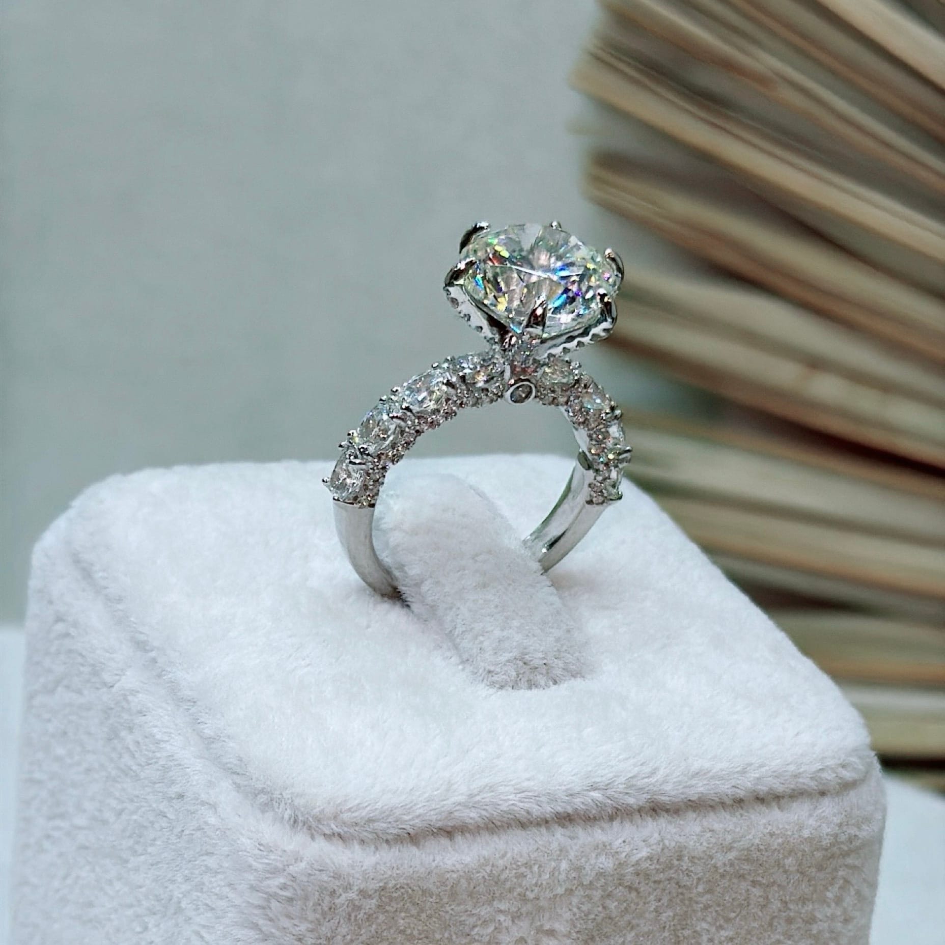 *Mozanit Taşlı Özel Üretim Tektaş Gümüş Yüzük