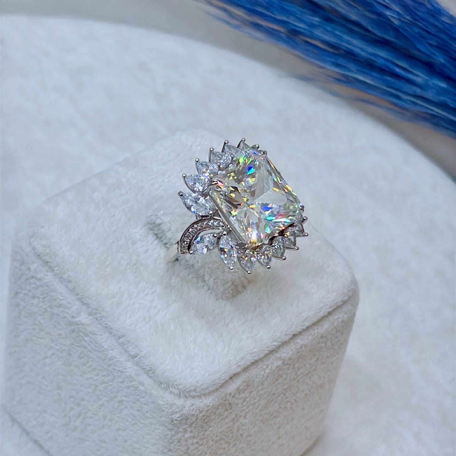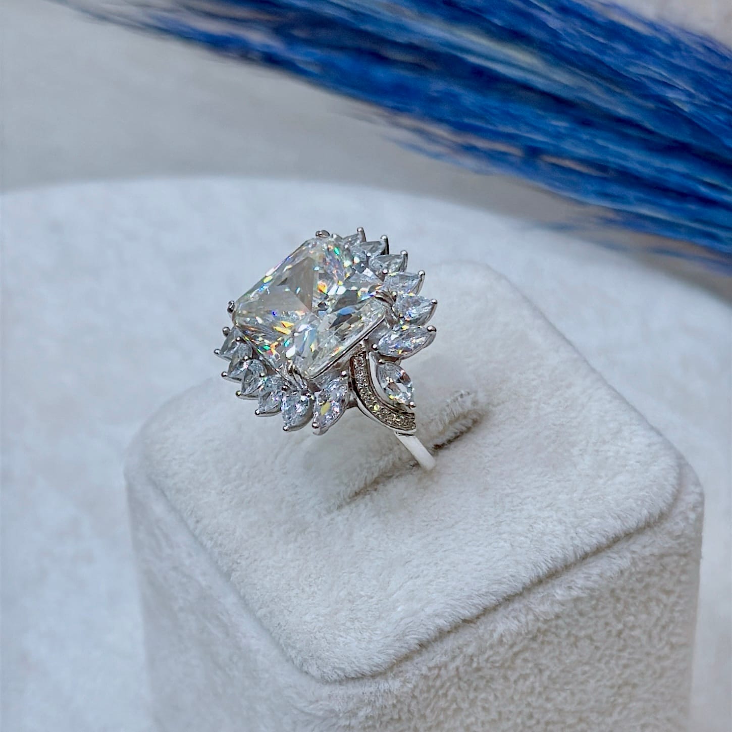 Mozanit Taşlı Pırlanta Montür Gümüş Yüzük