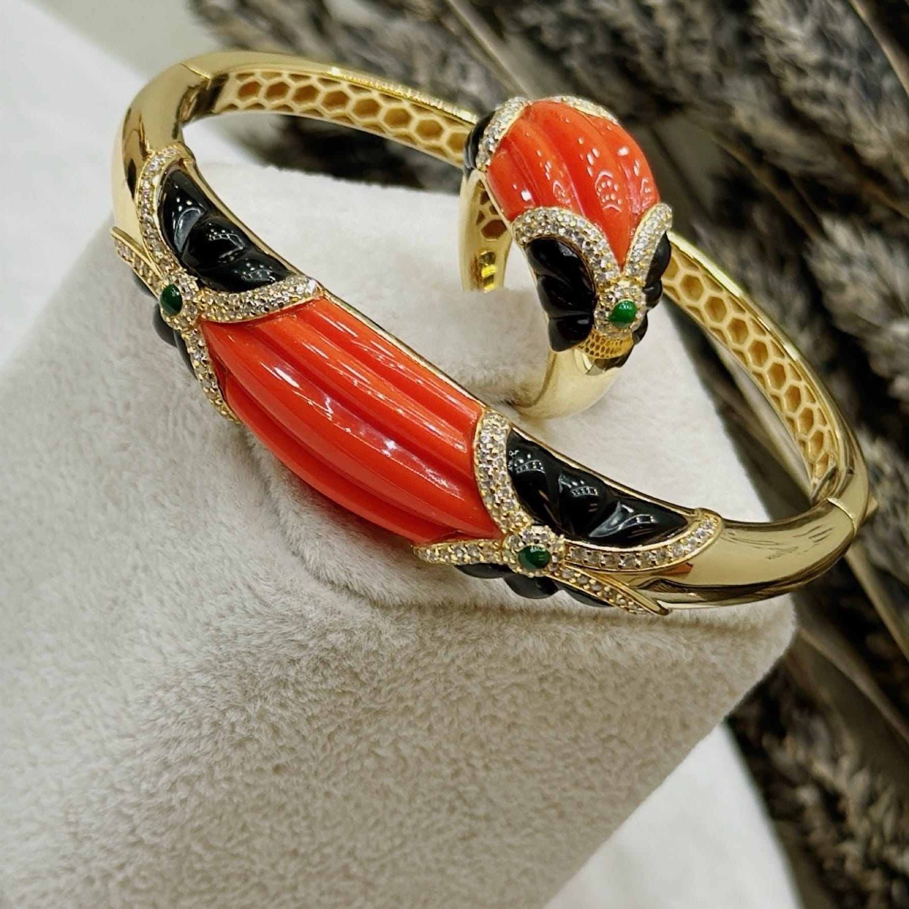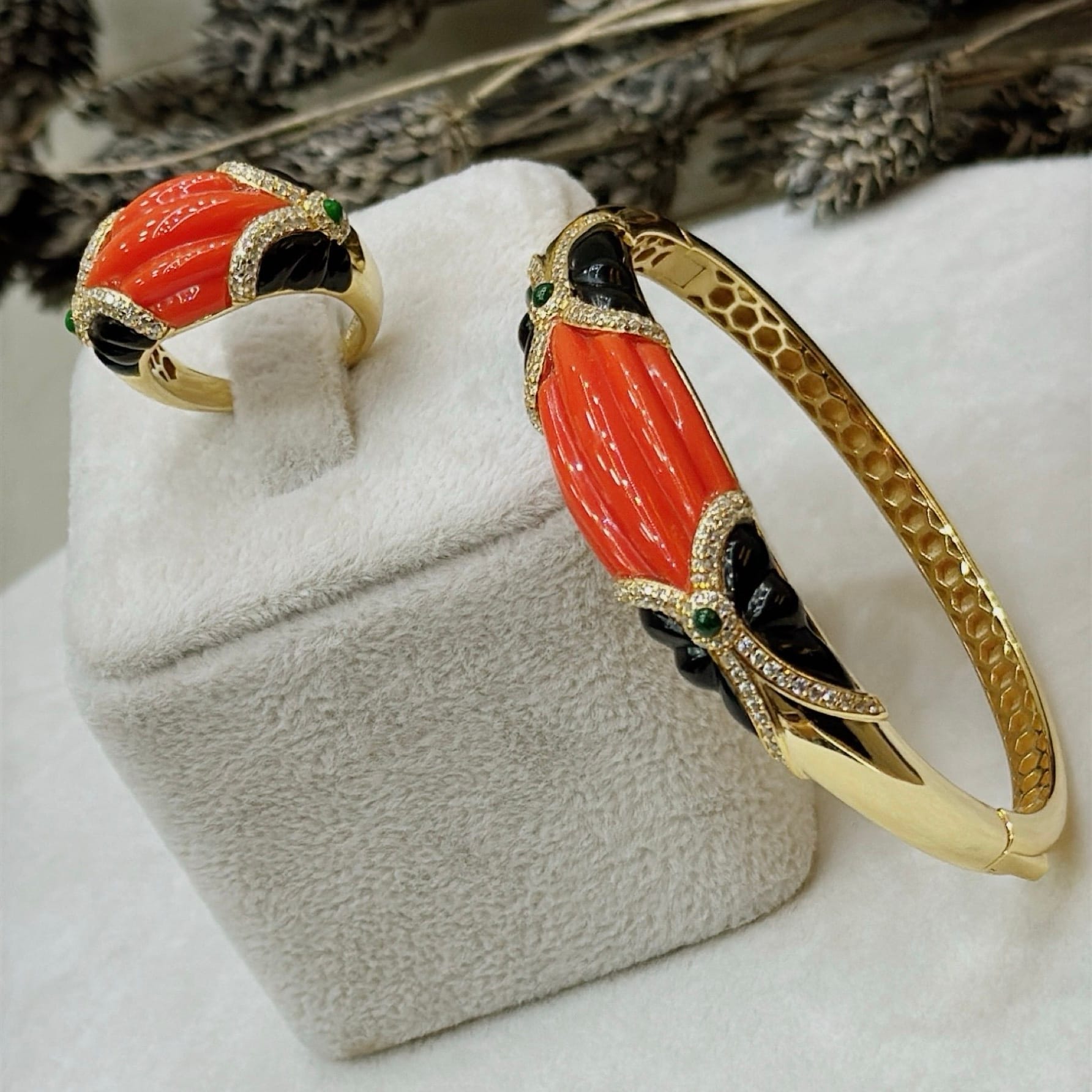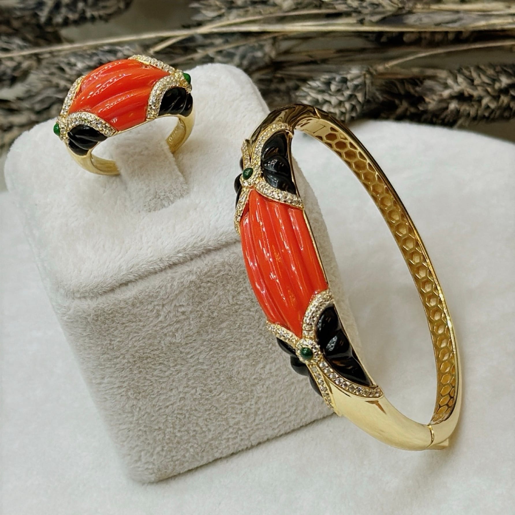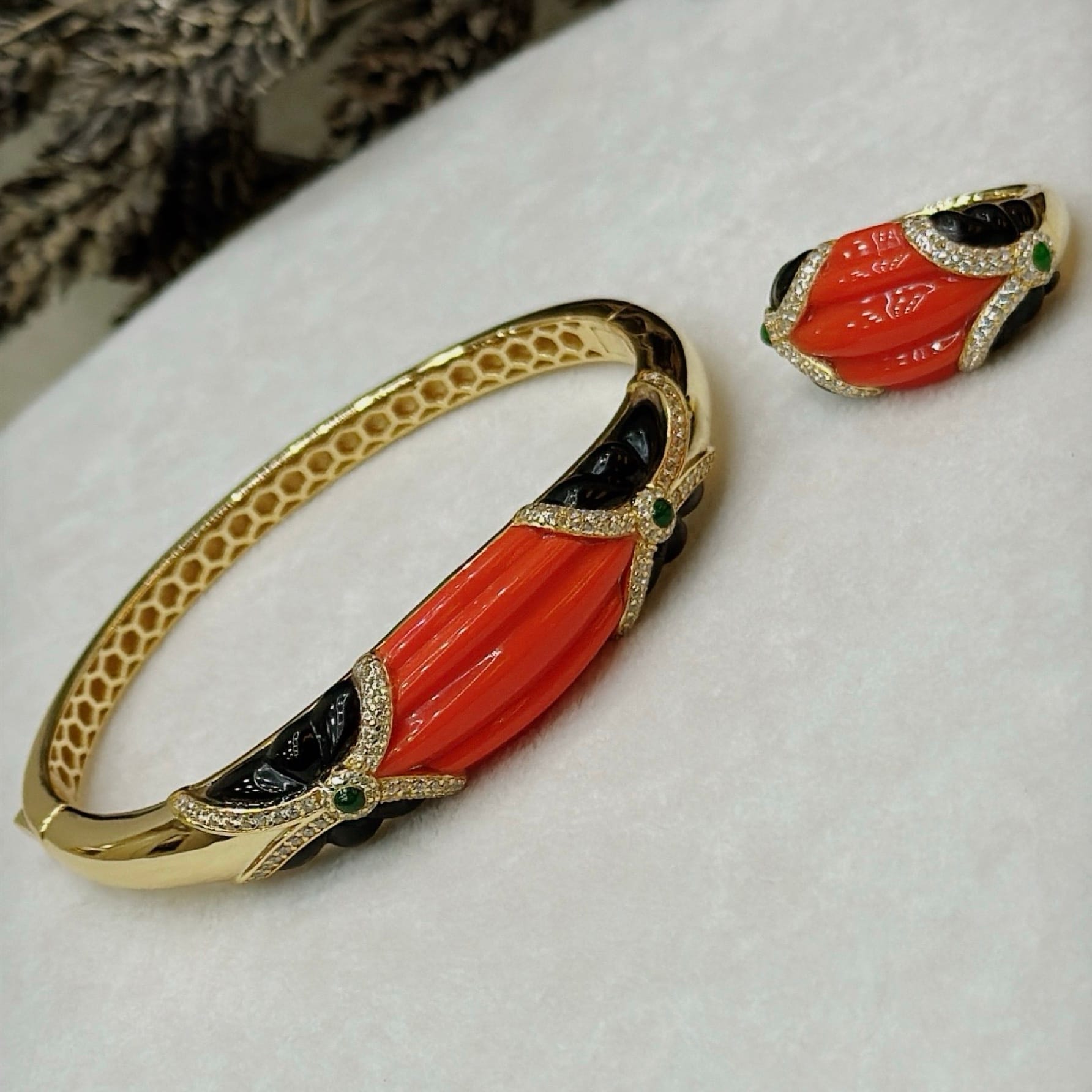 *Opal Mercan Gold Renk Gümüş Takım Yüzük & Kelepçe Bileklik