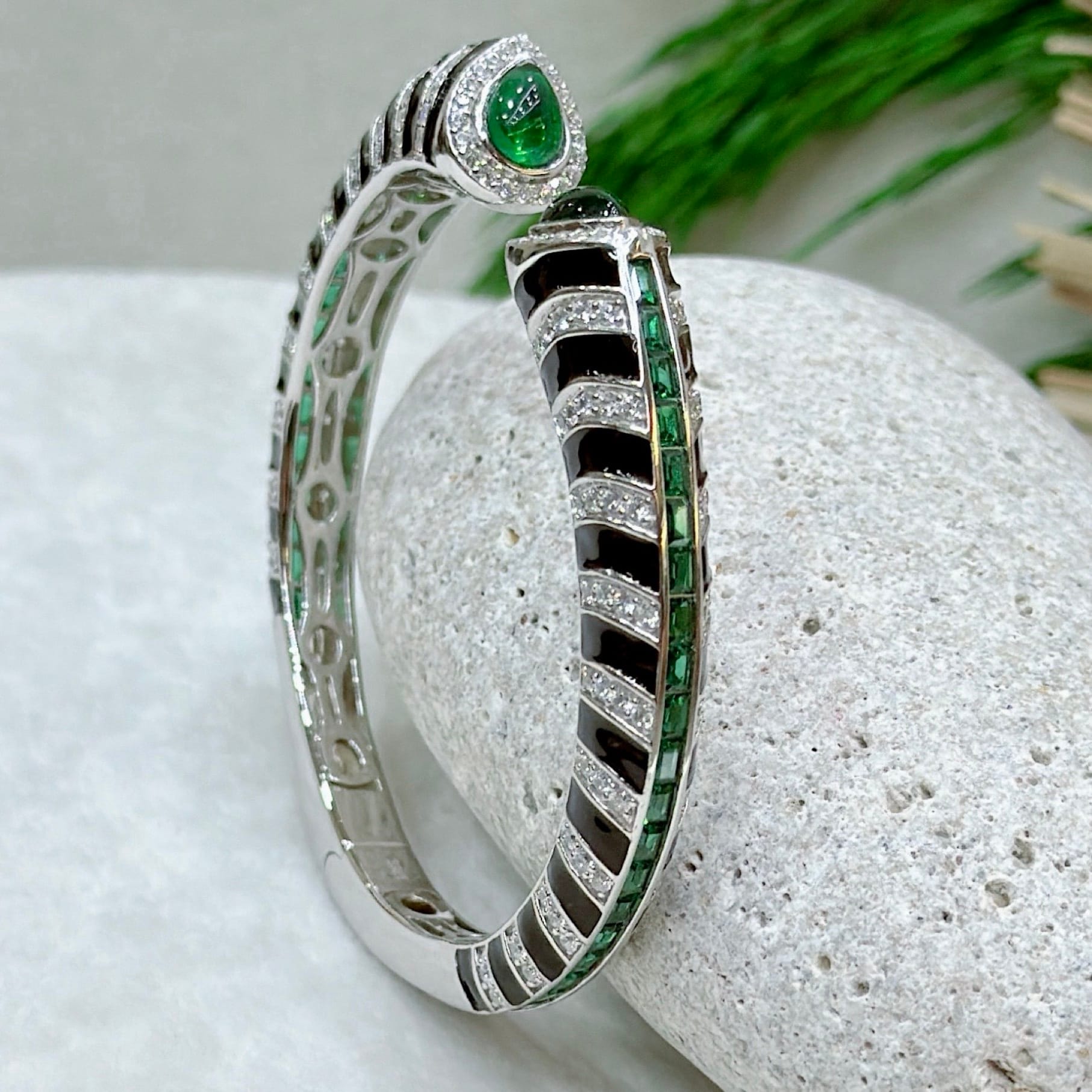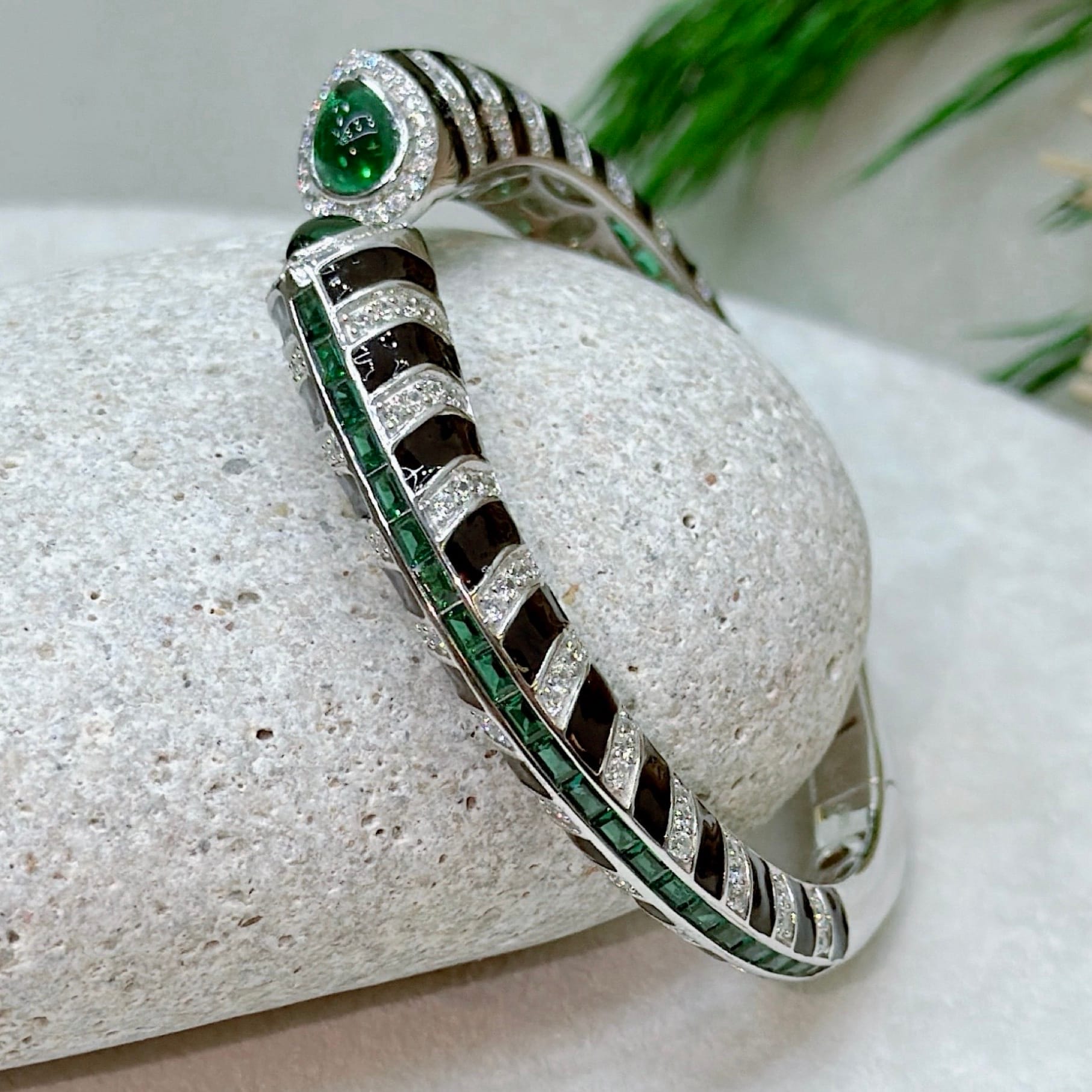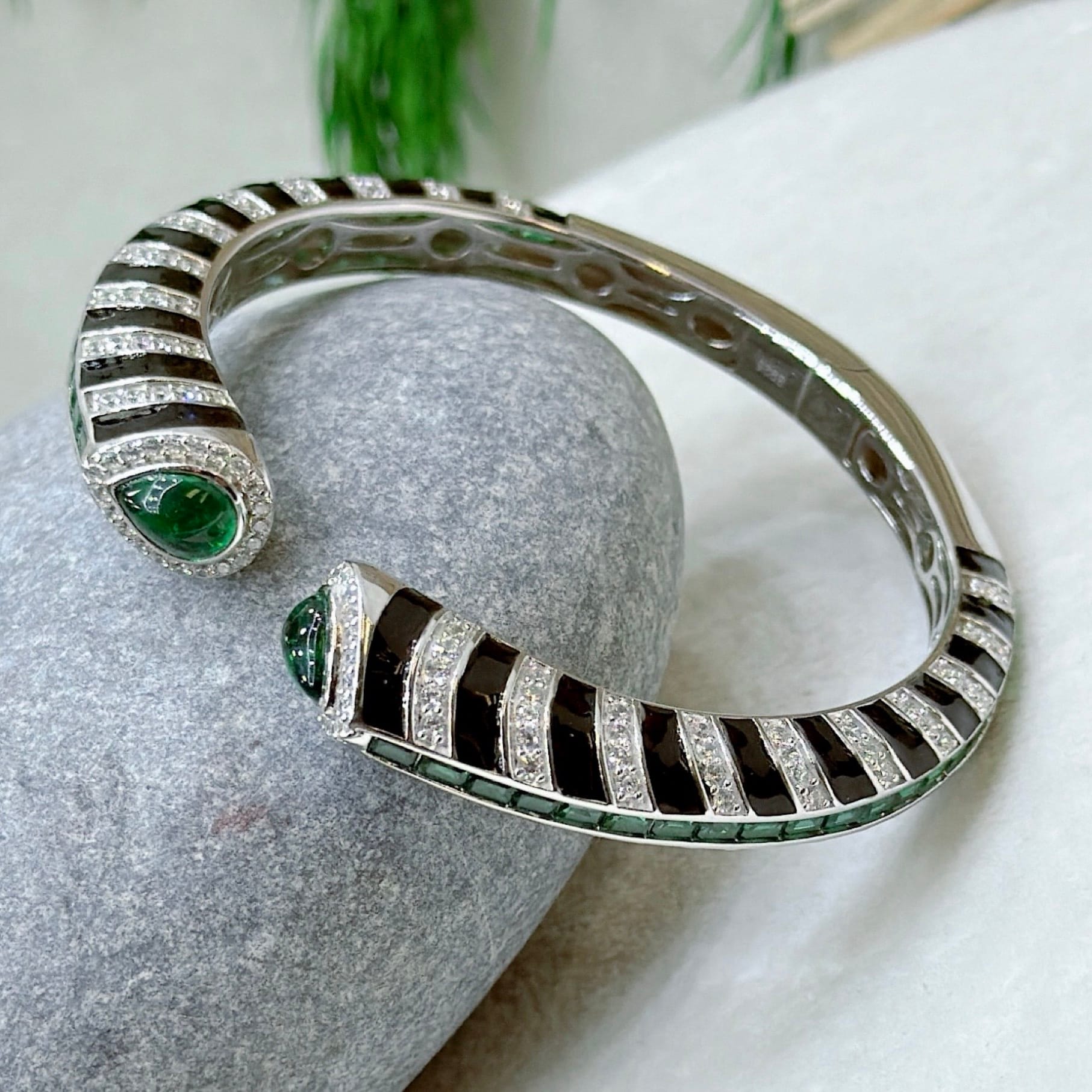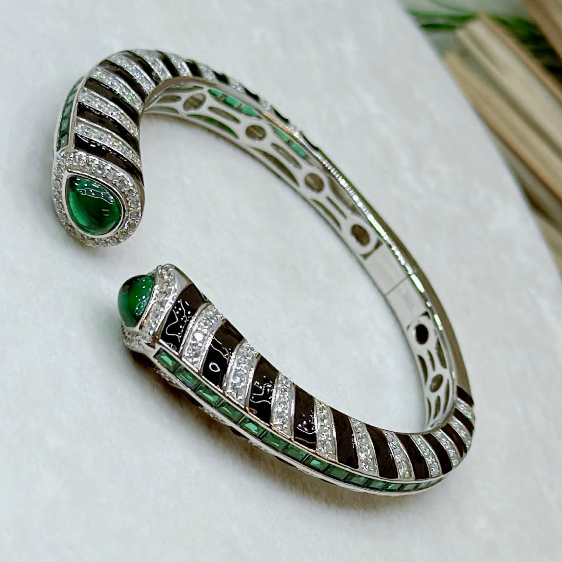 Pırlanta Montür Zümrüt Yeşili Kalın Gurmet Bileklik