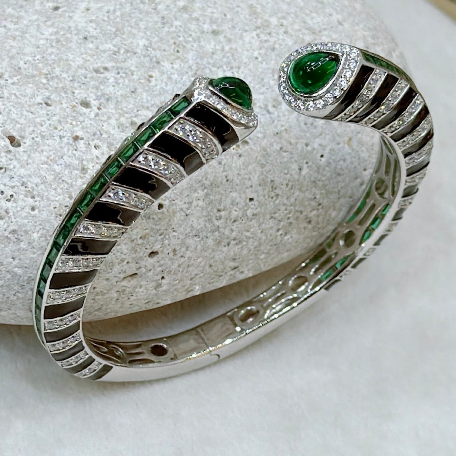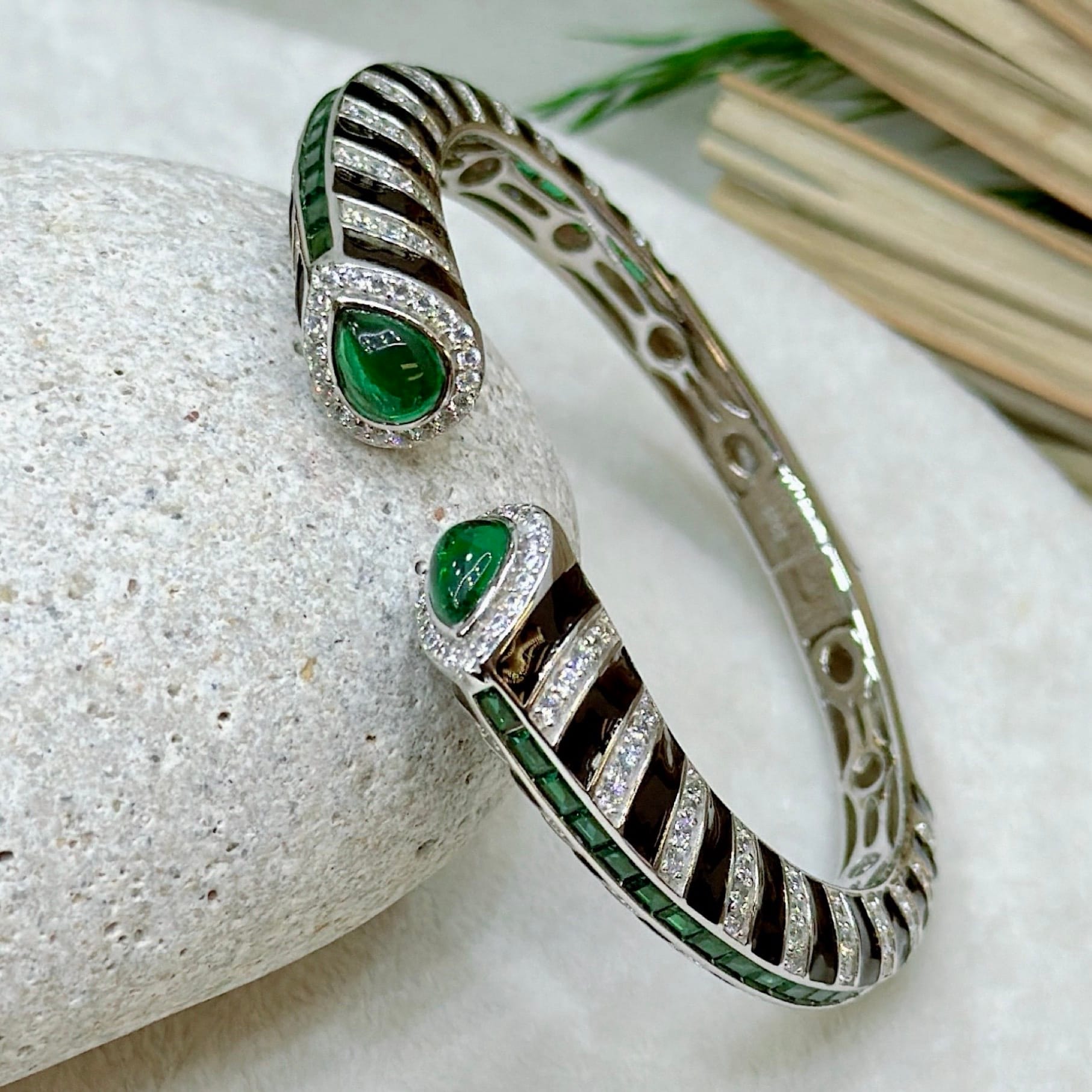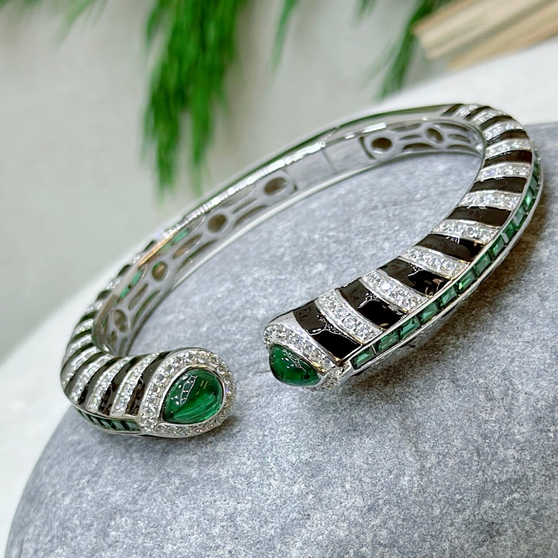 Özel Seri Zümrüt Model Gümüş Kelepçe Bileklik
