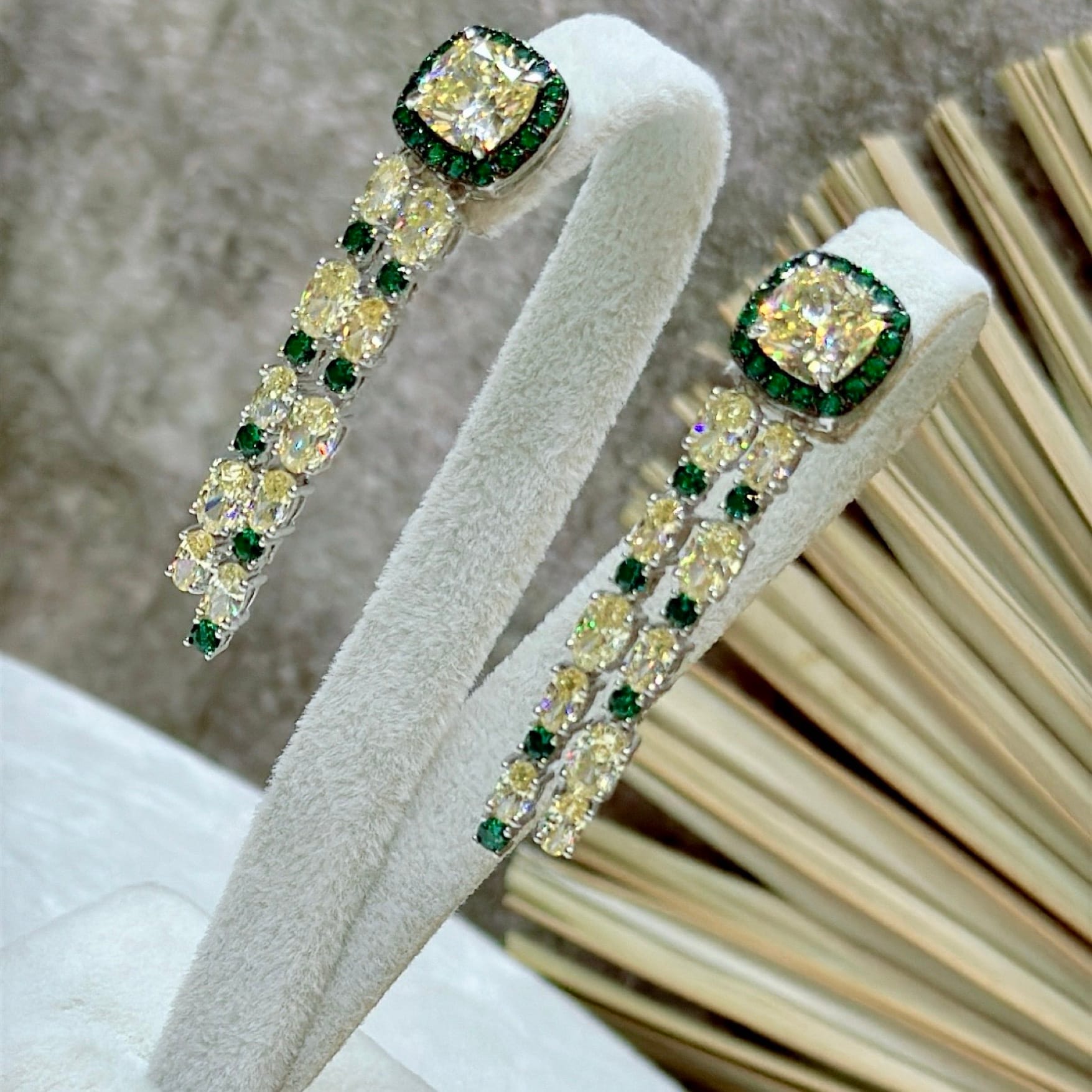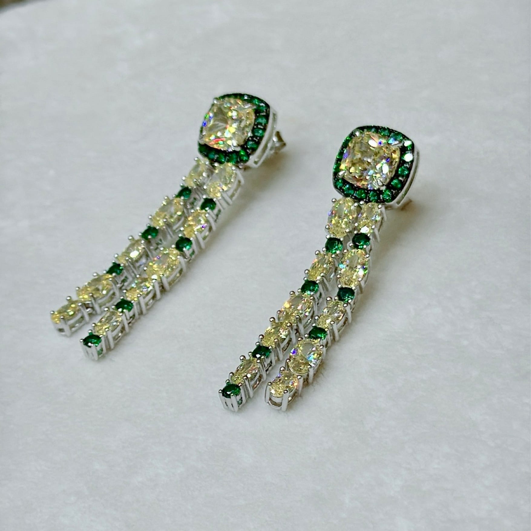 Özel Seri Zümrüt & Sitrin Model Gümüş Küpe