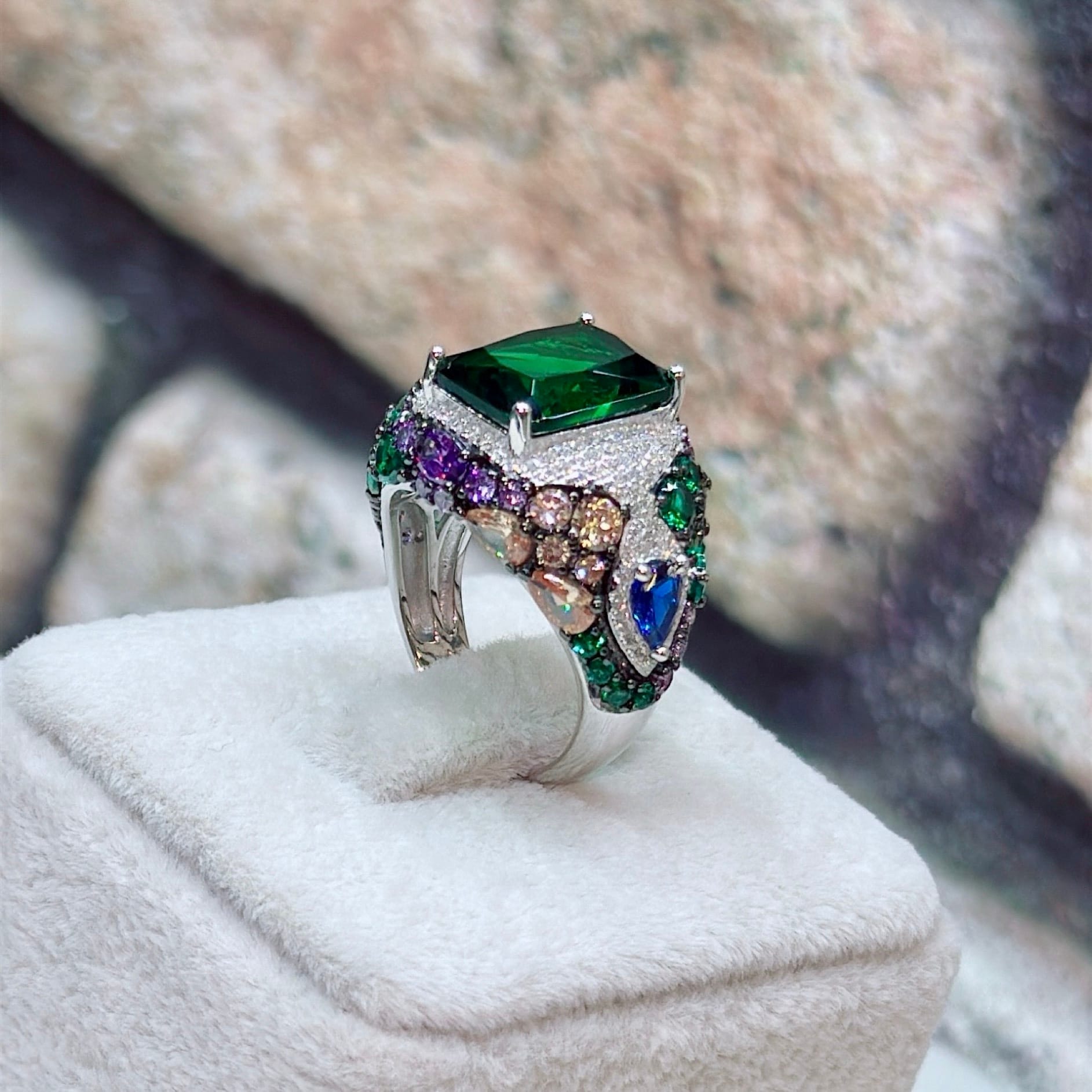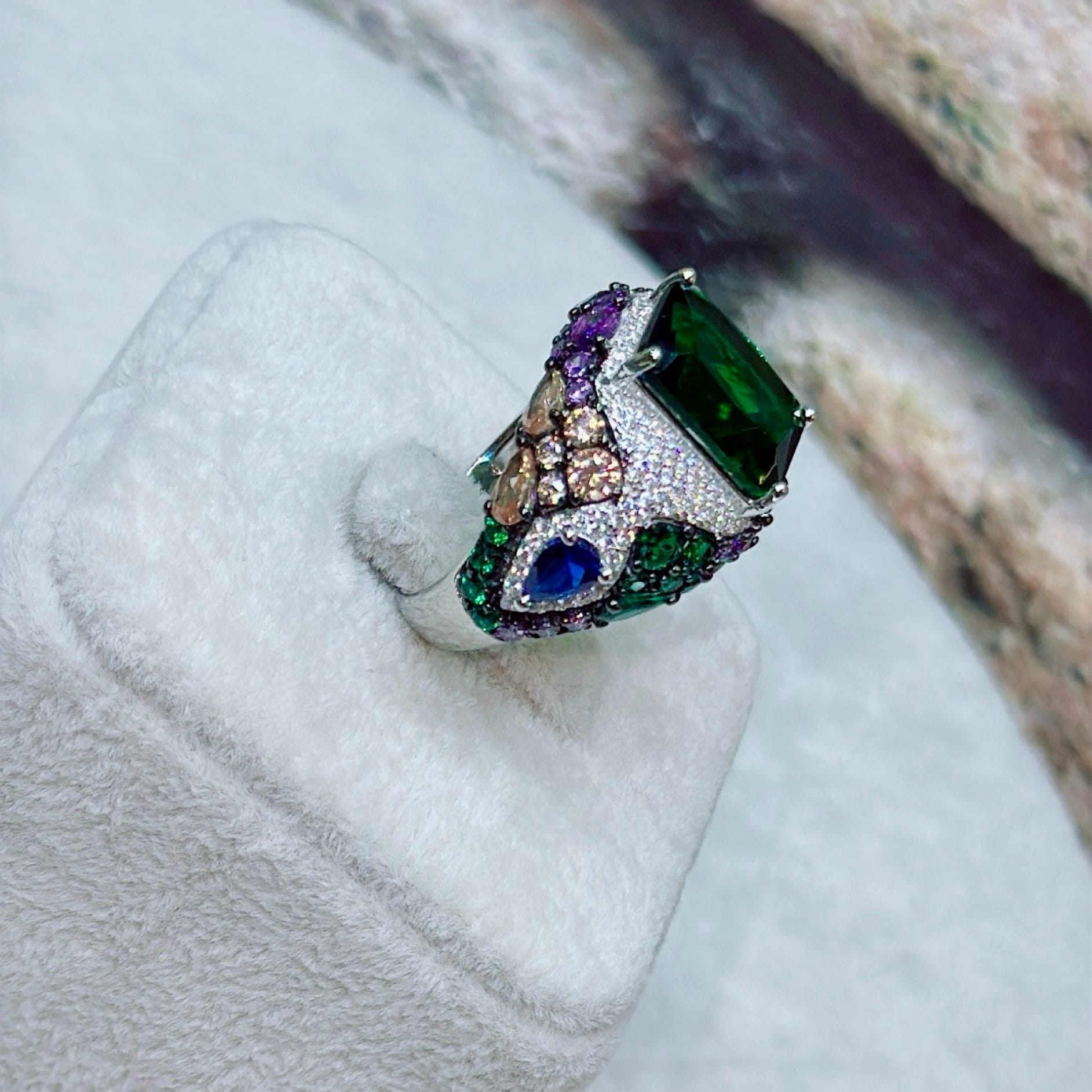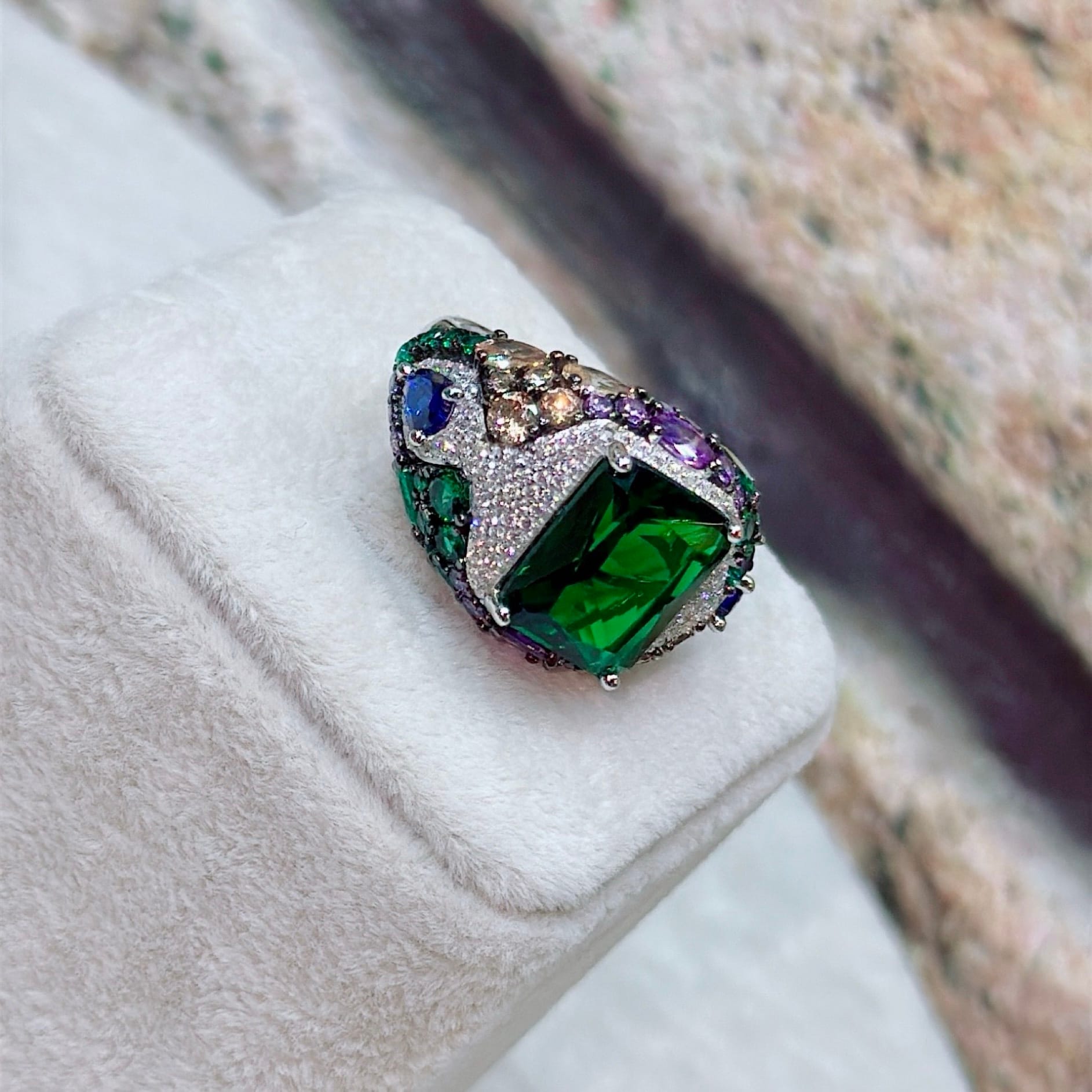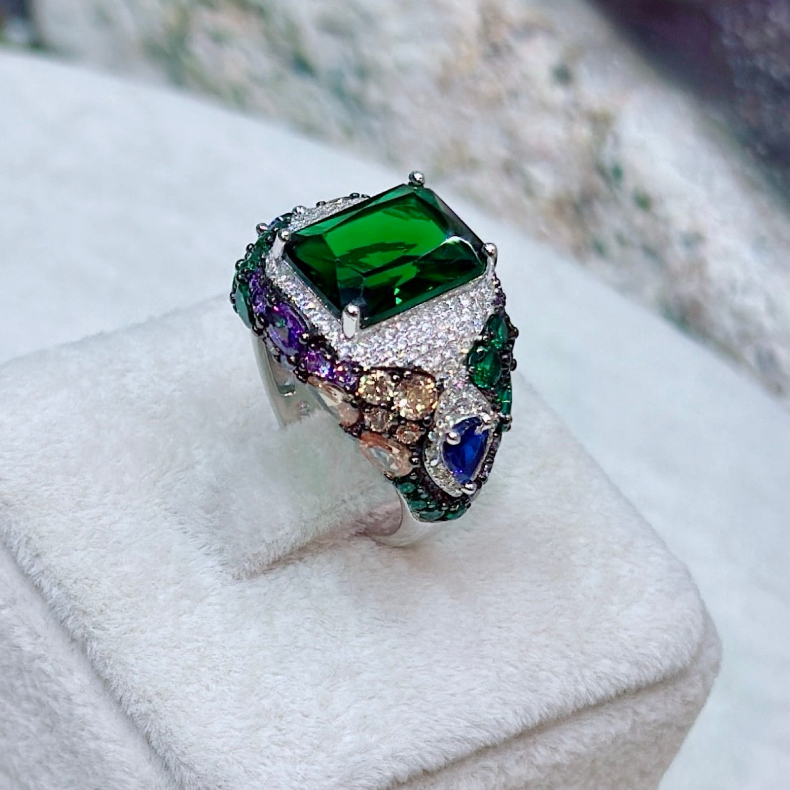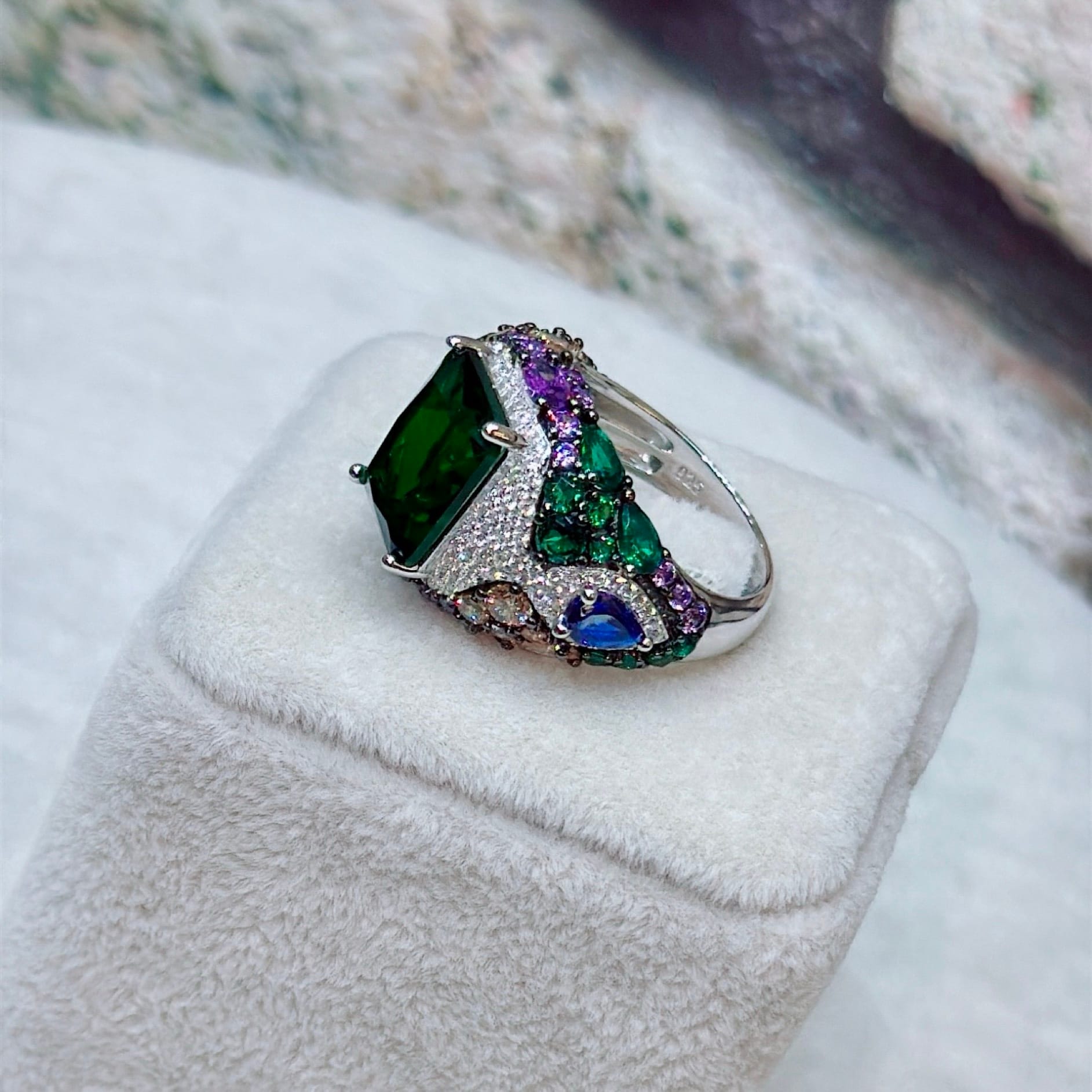 *Zümrüt Renk Zirkon Taşlı Gümüş Yüzük