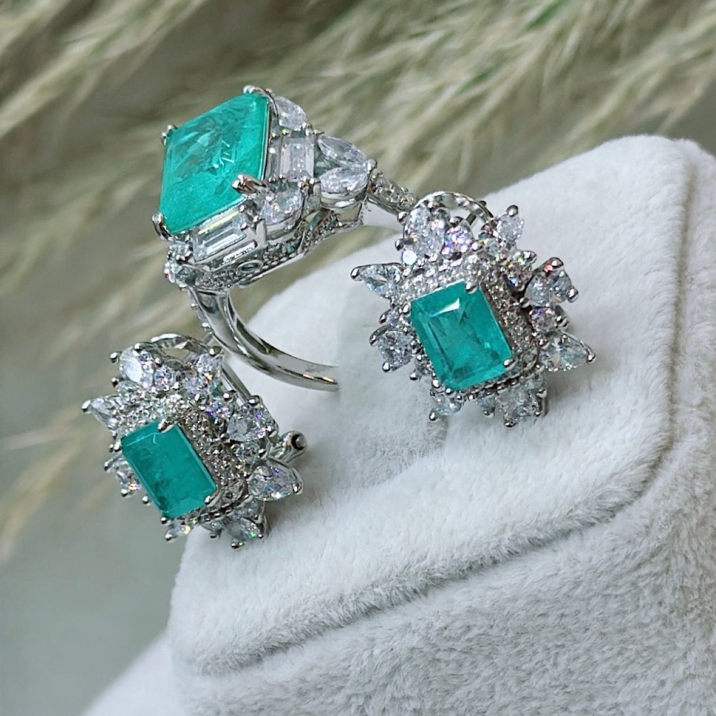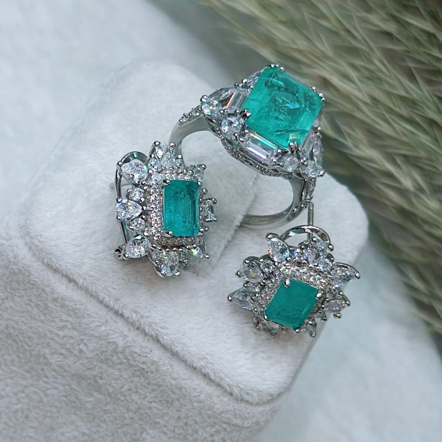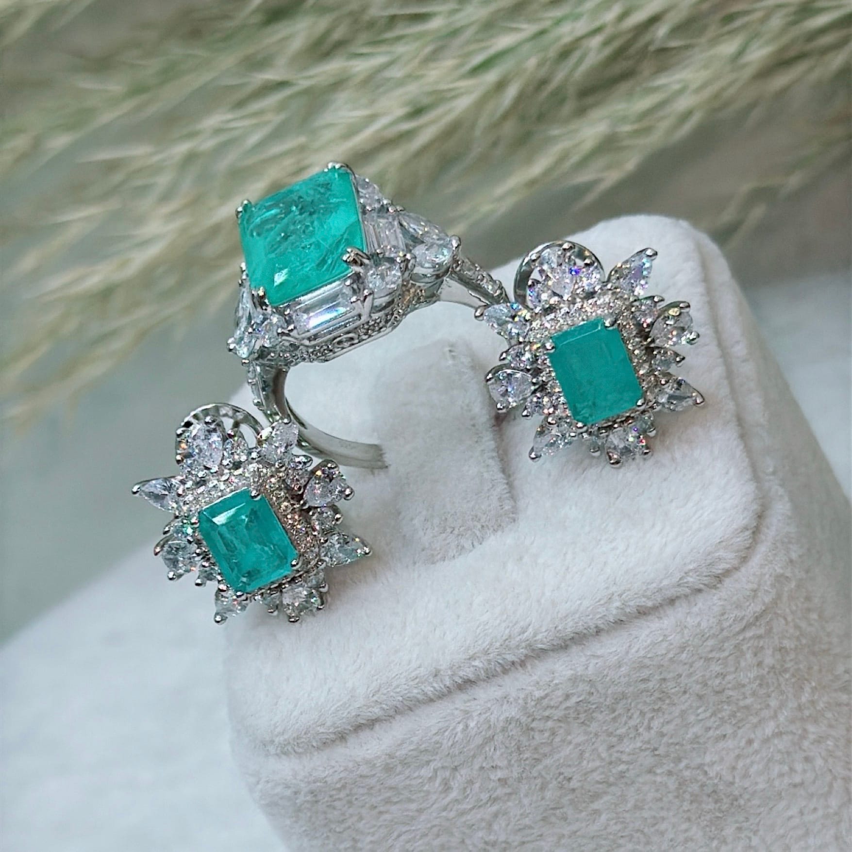 Paraiba Taşlı Gümüş Yüzük & Küpe Takım