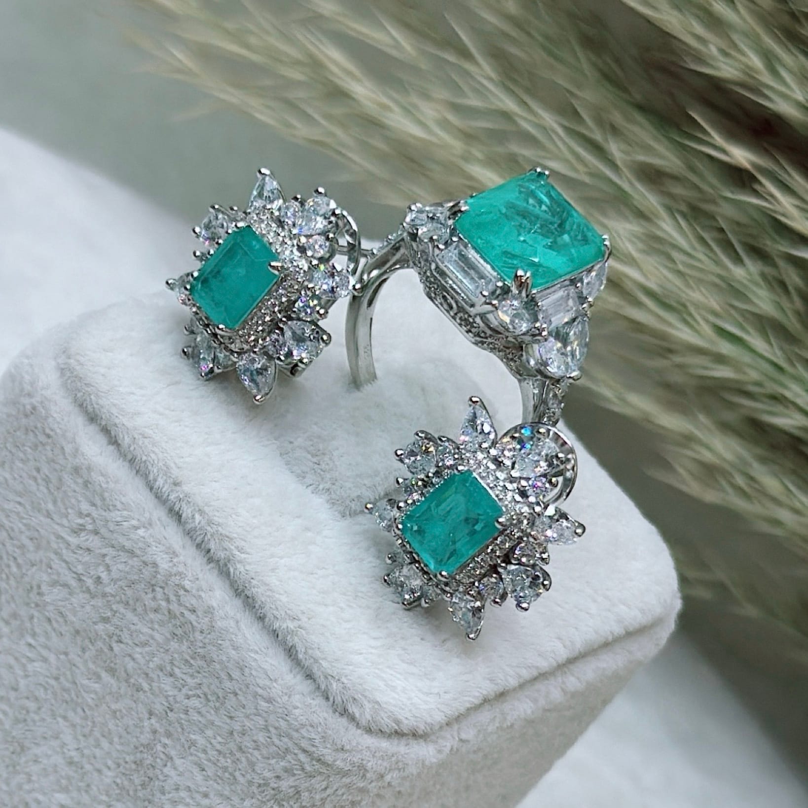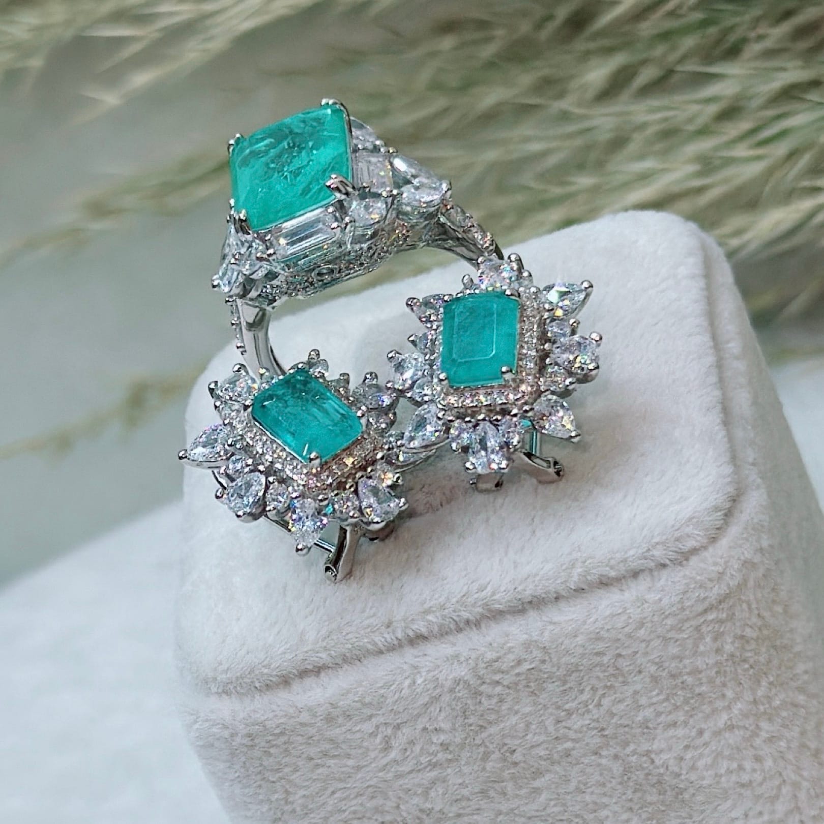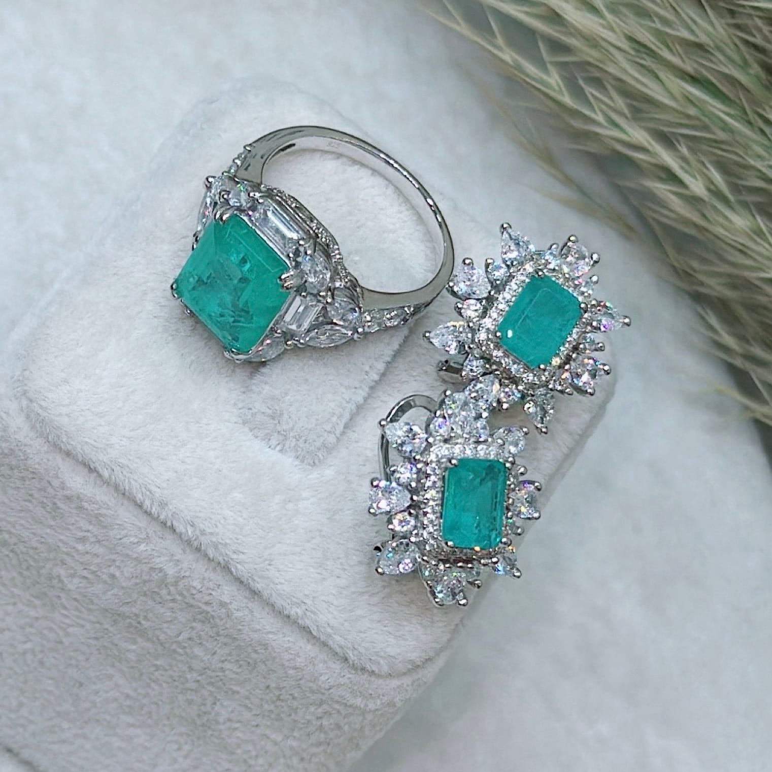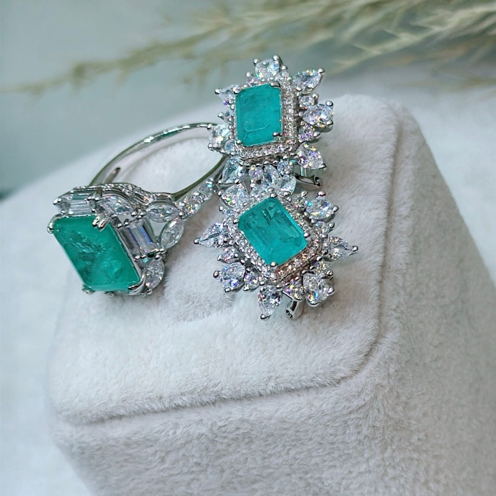 Paraiba Taşlı Gümüş Yüzük & Küpe Takım