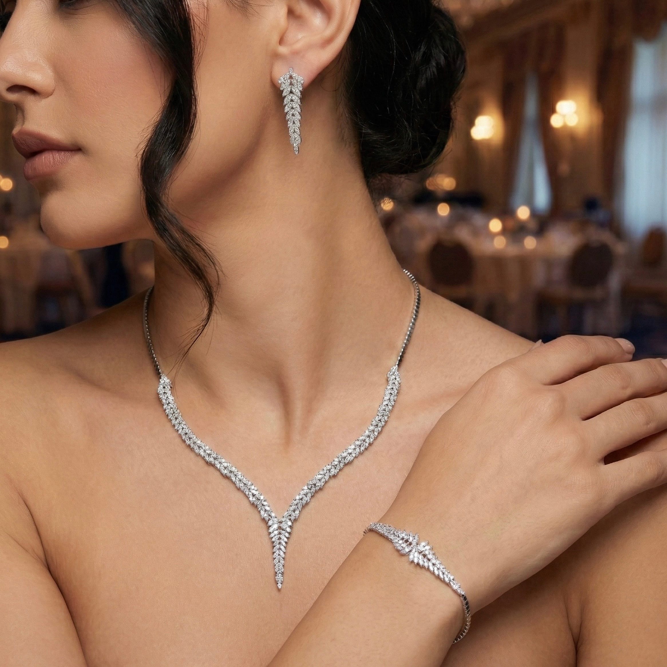 *Pırlanta Modeli Zirkon Taşlı Gümüş Set Takım