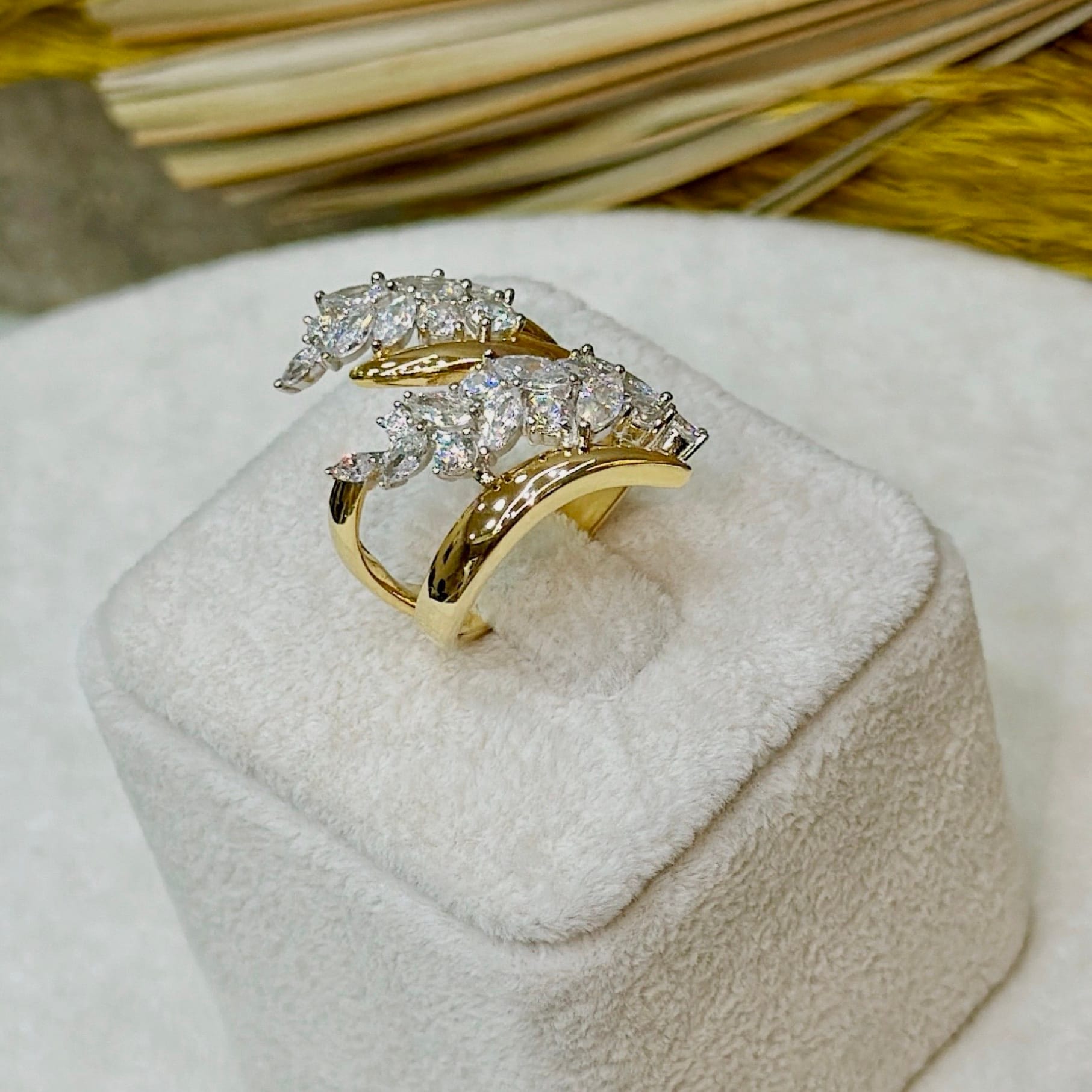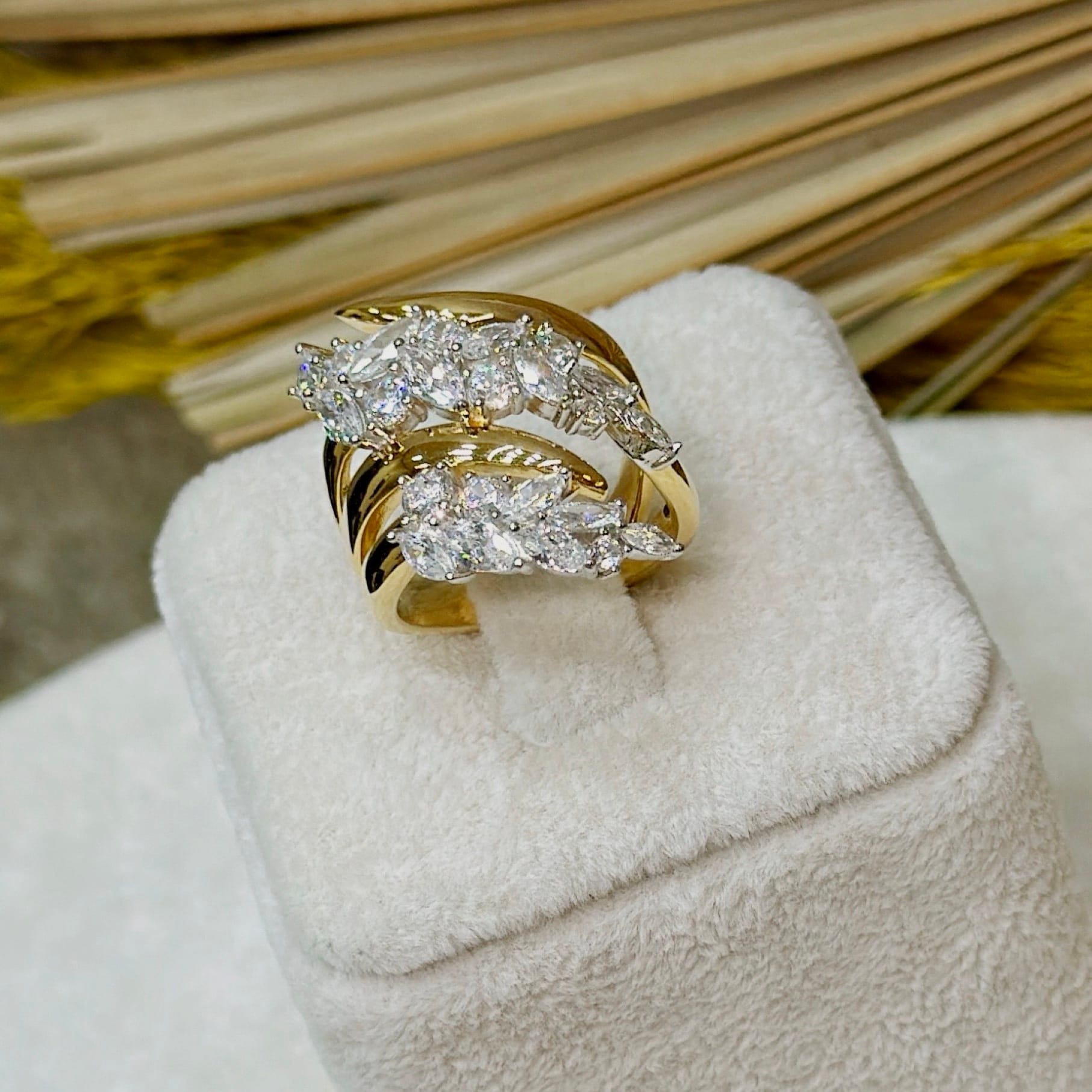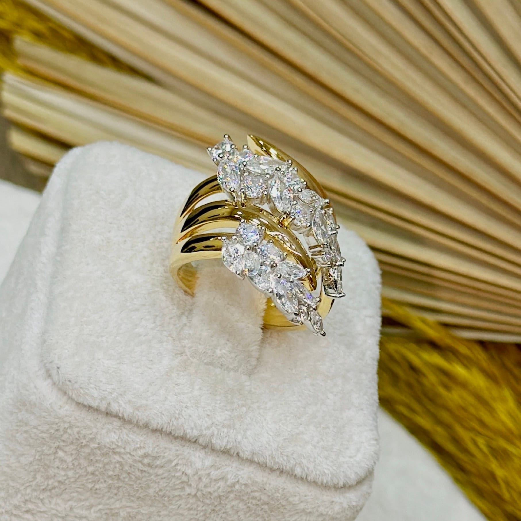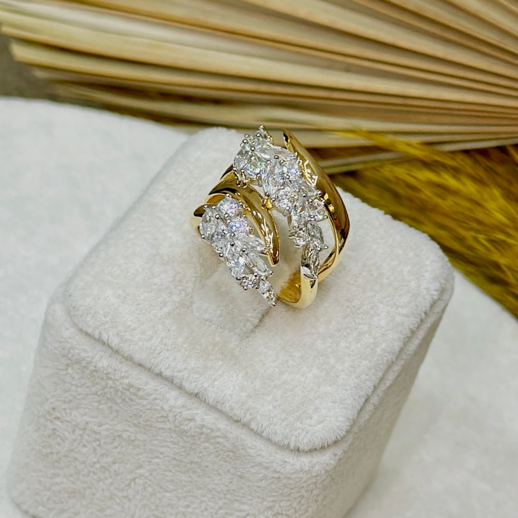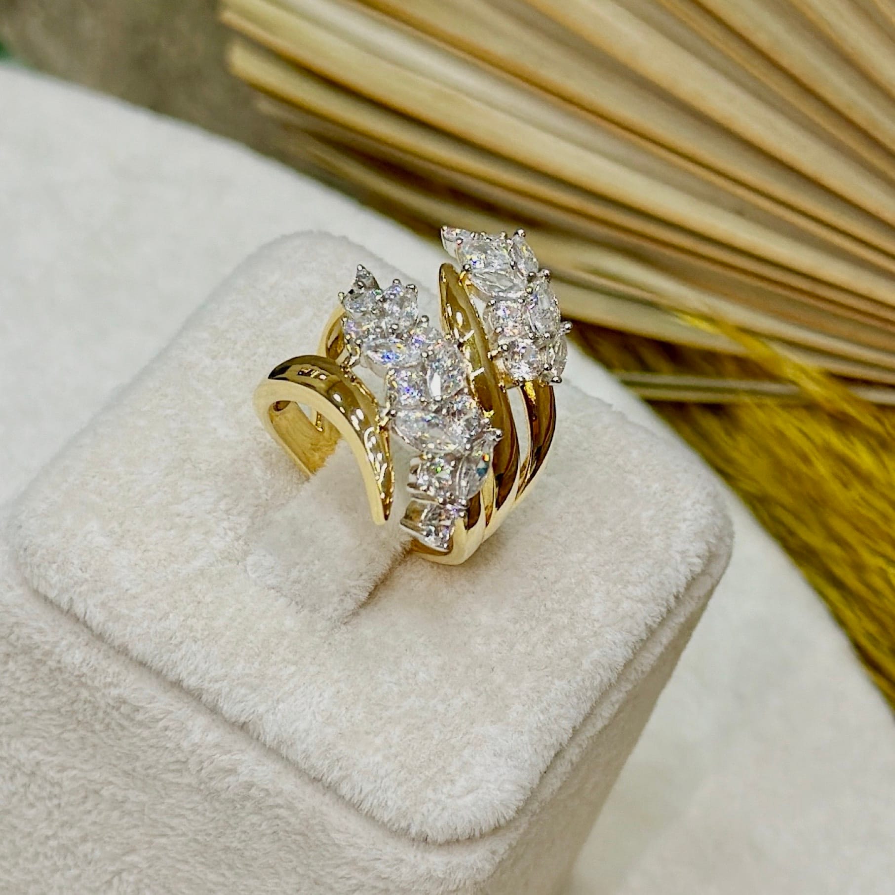 *Gold Renk Büyük Model Taşlı Gümüş Yüzük