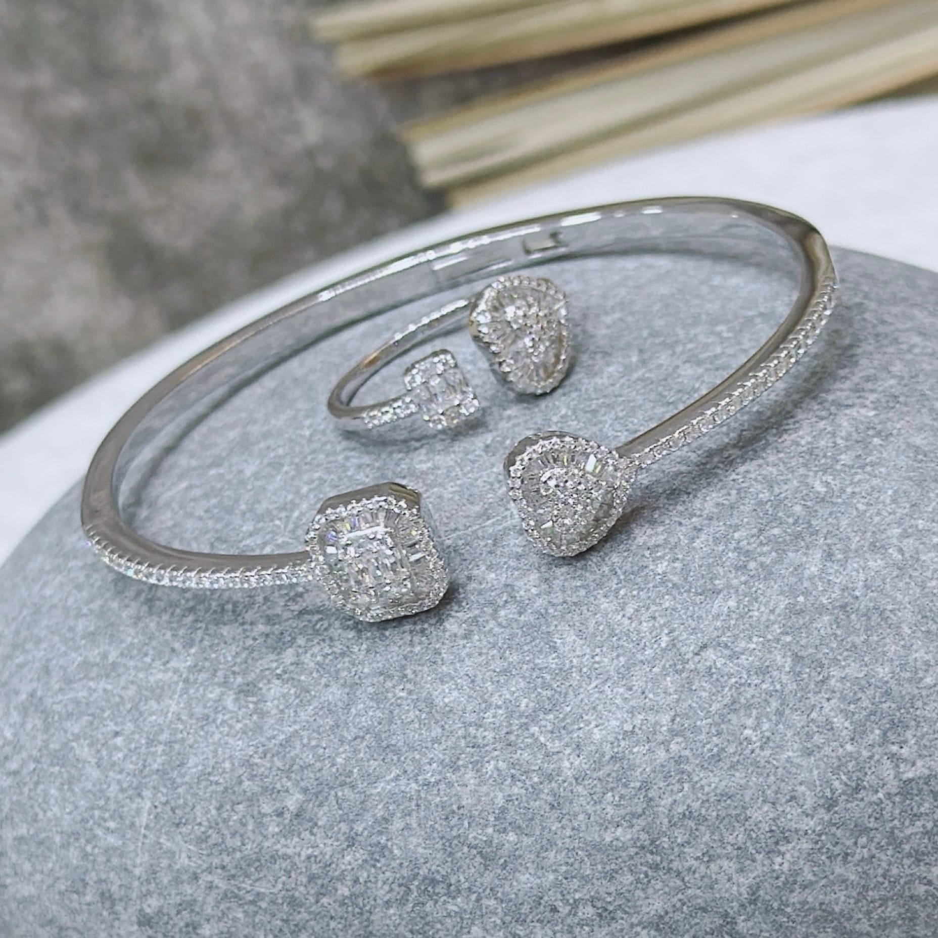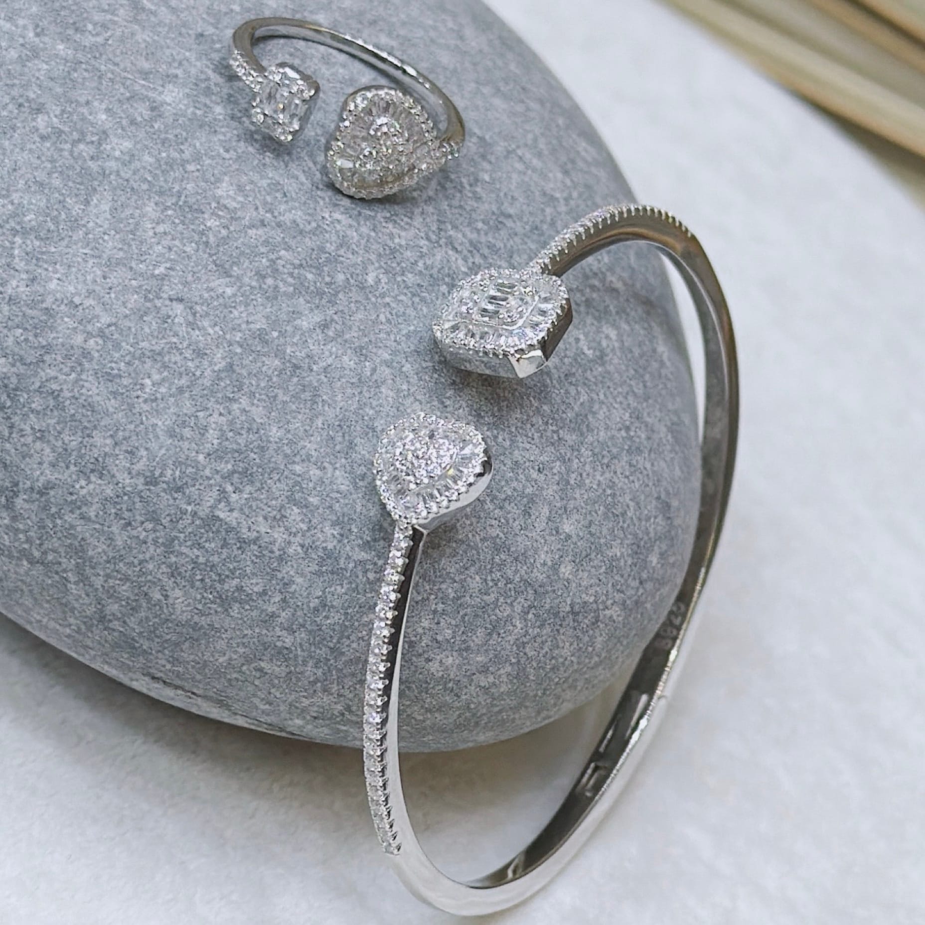 Pırlanta Montür Gümüş Kelepçe Bileklik & Yüzük