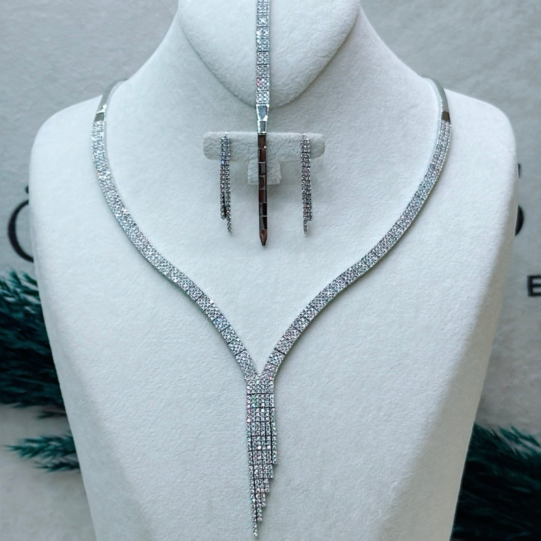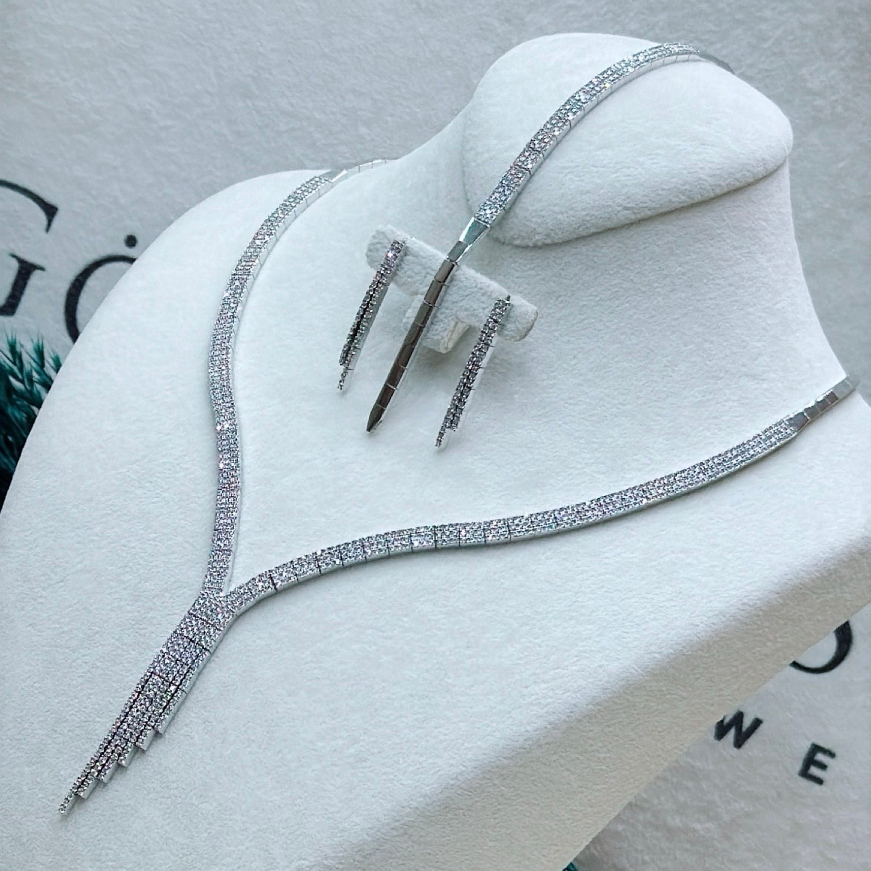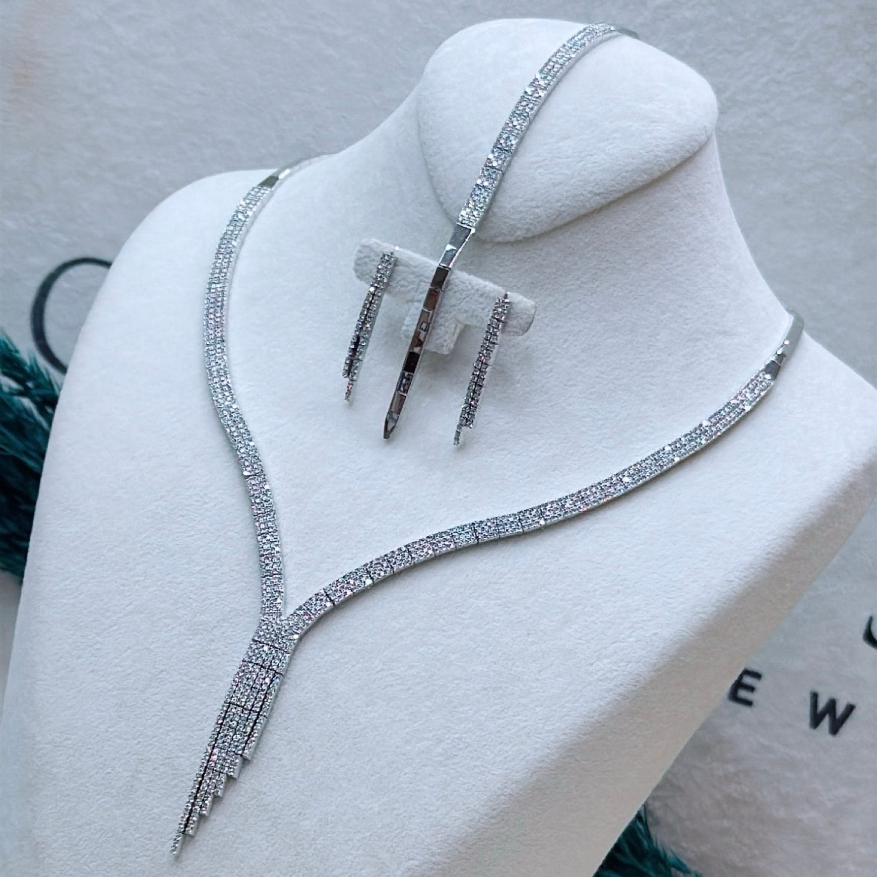 *Pırlanta Modeli Zirkon Taşlı Gümüş Set Takım