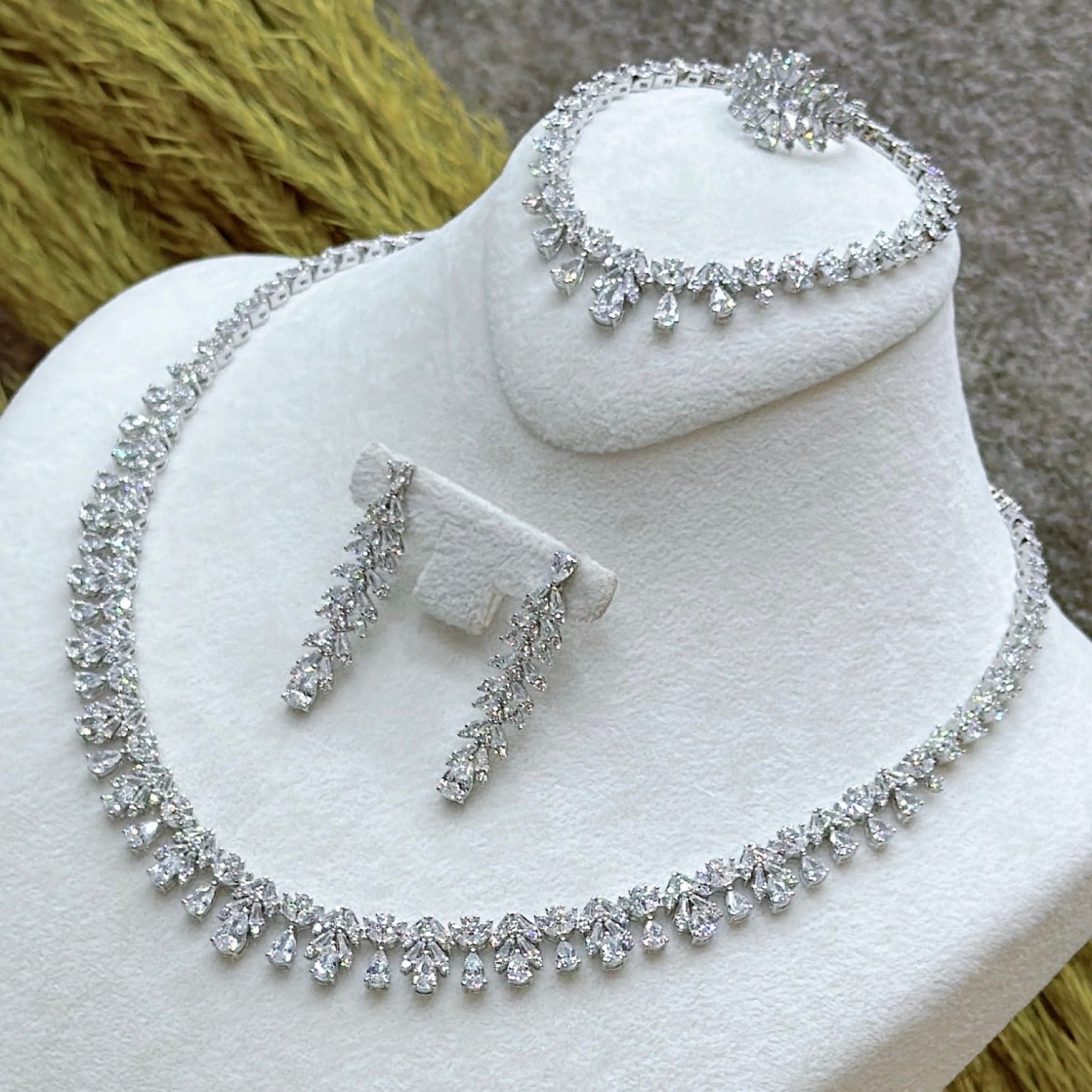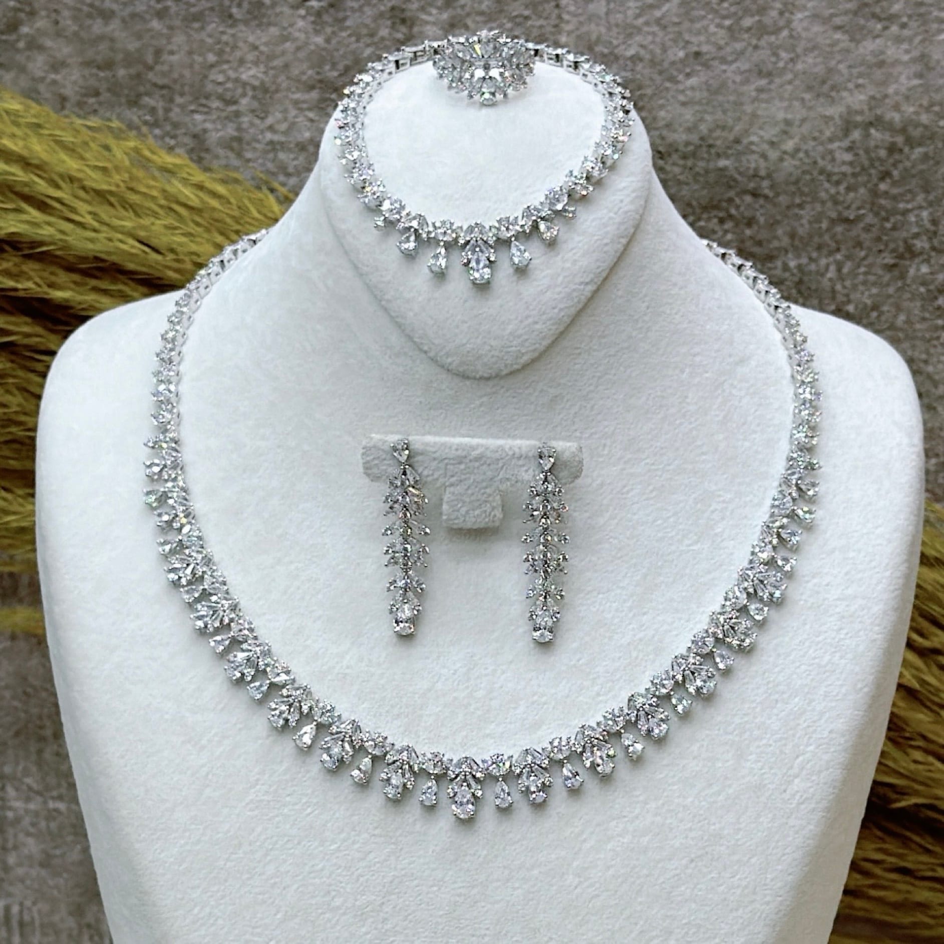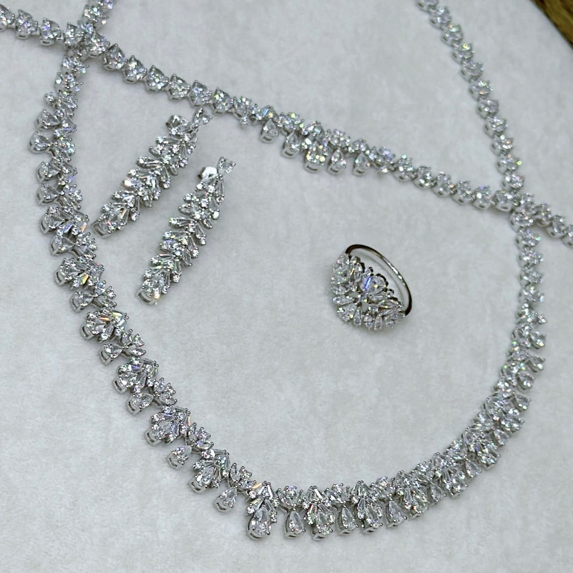 *Zirkon Taşlı Gümüş Set Takım (Gerdanlık-Bileklik-Yüzük-Küpe)