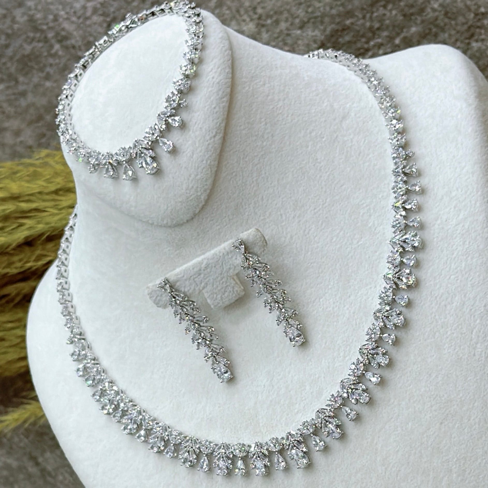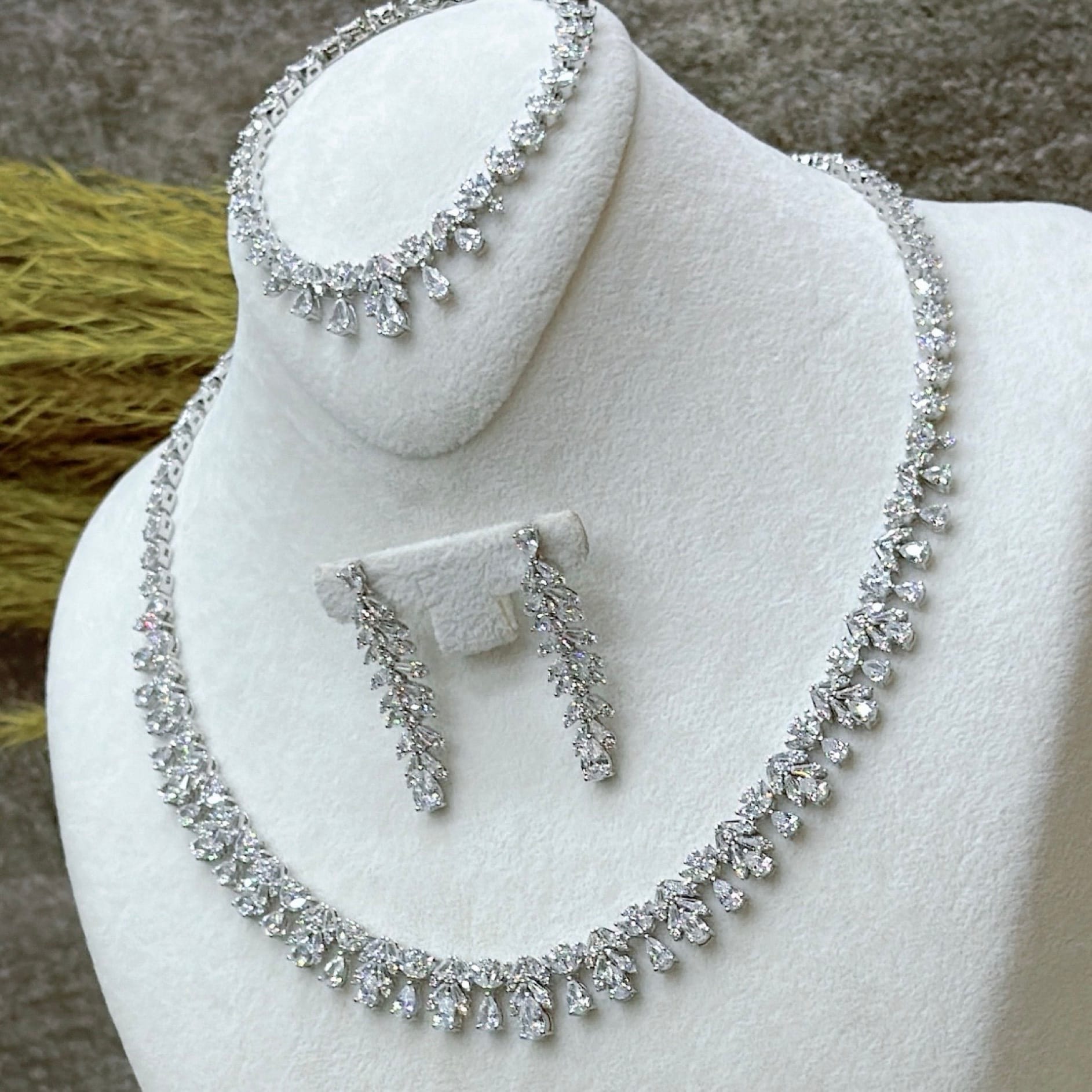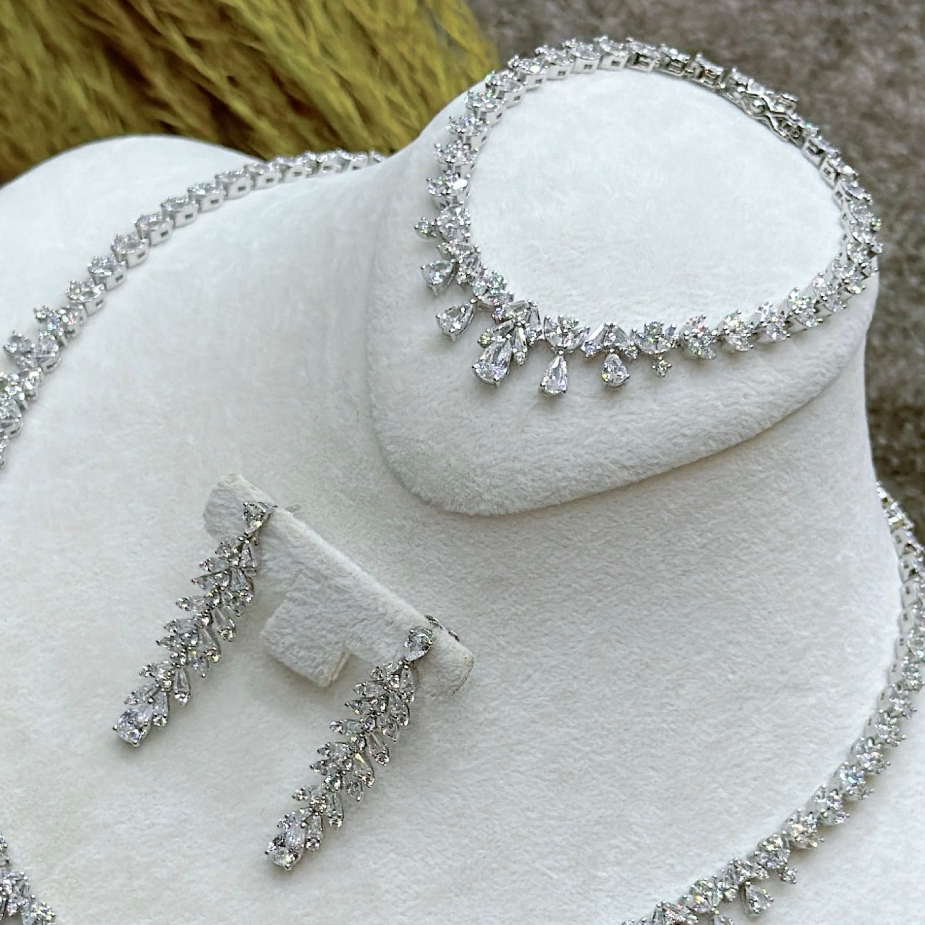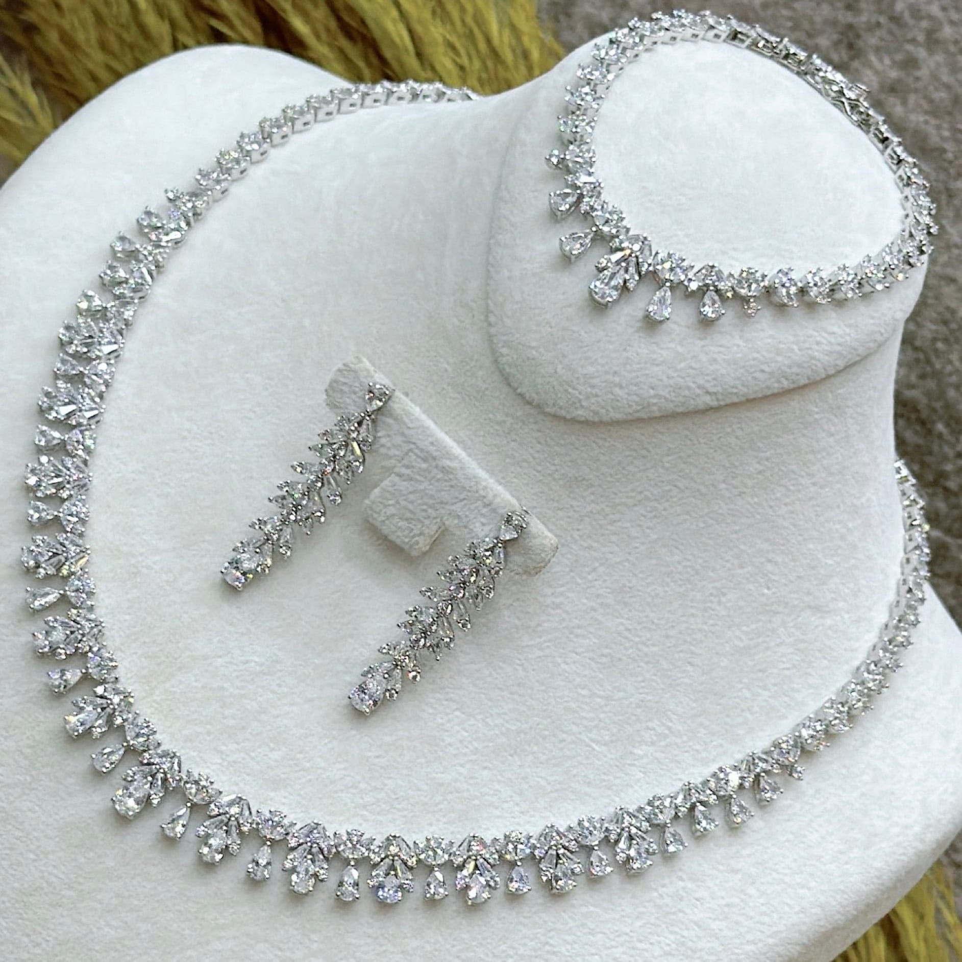 *Zirkon Taşlı Gümüş Set Takım (Gerdanlık-Bileklik-Yüzük-Küpe)