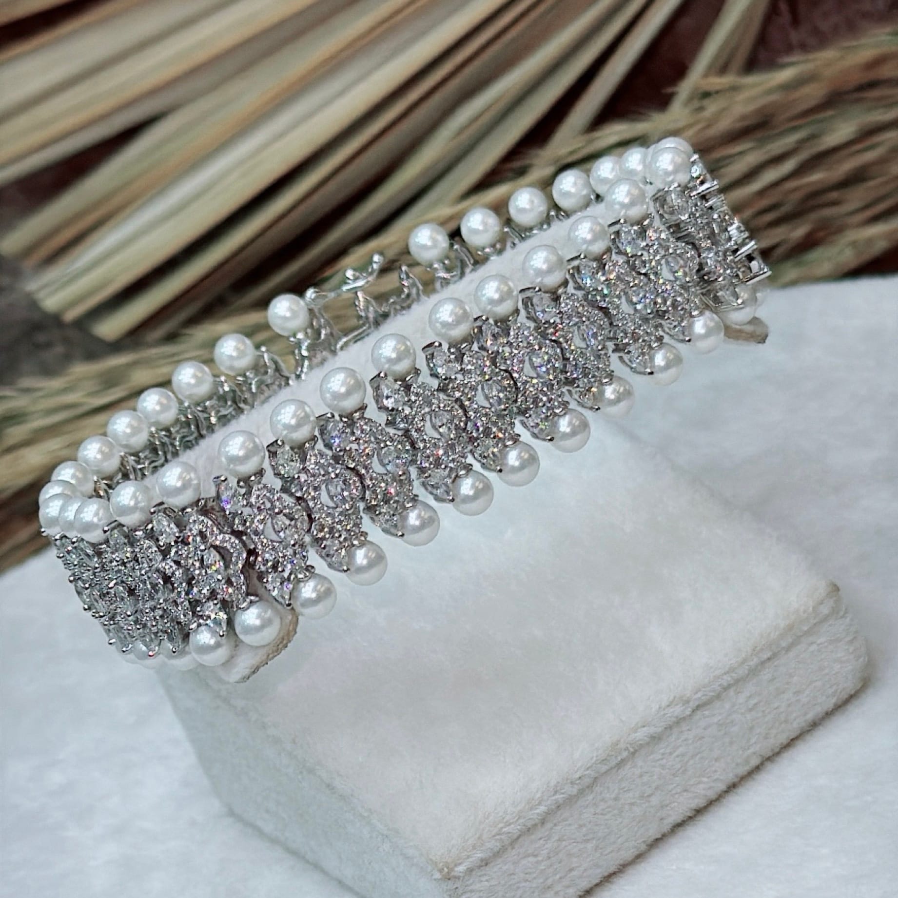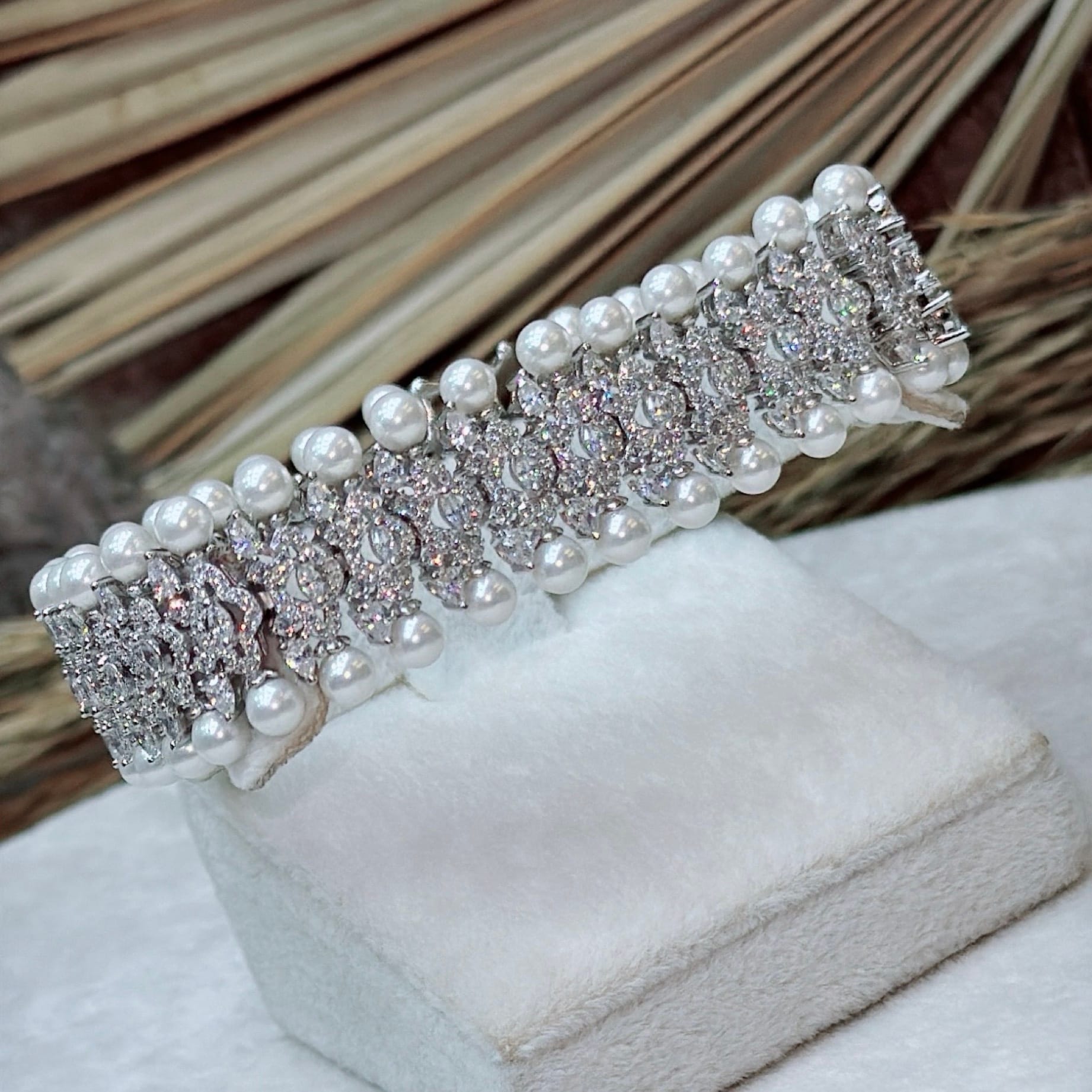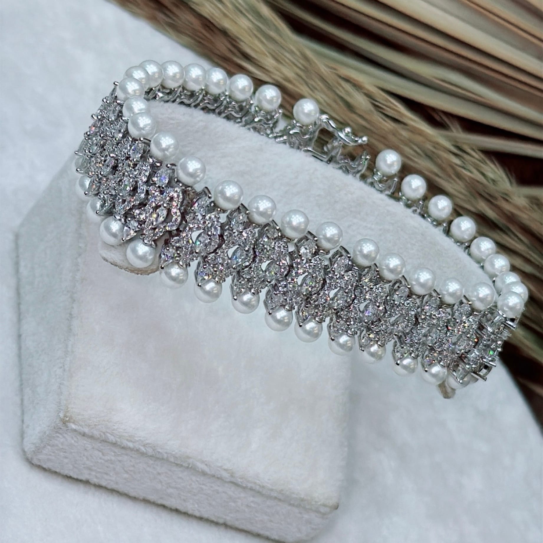 Pırlanta Montür İnci & Zirkon Taşlı Gümüş Bileklik