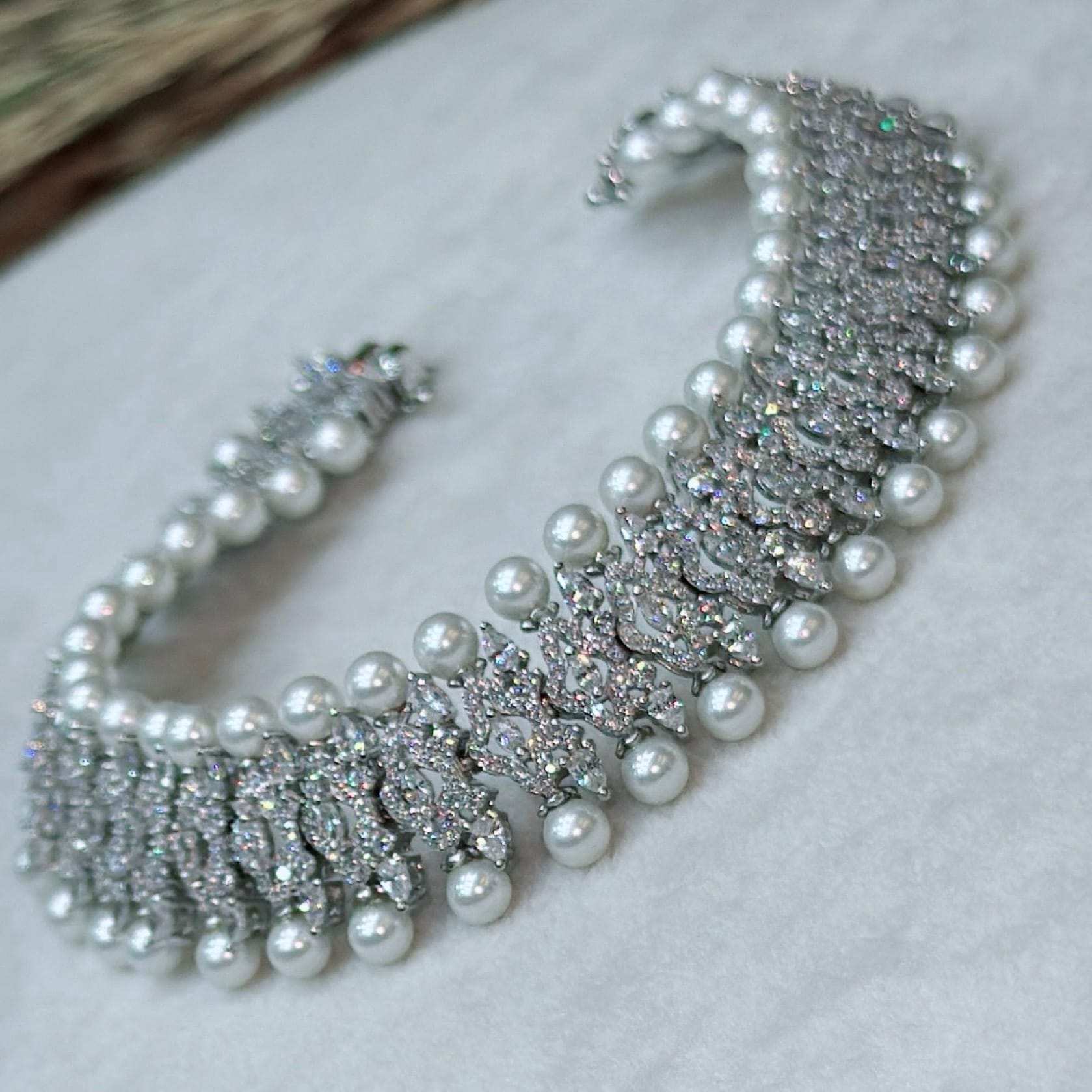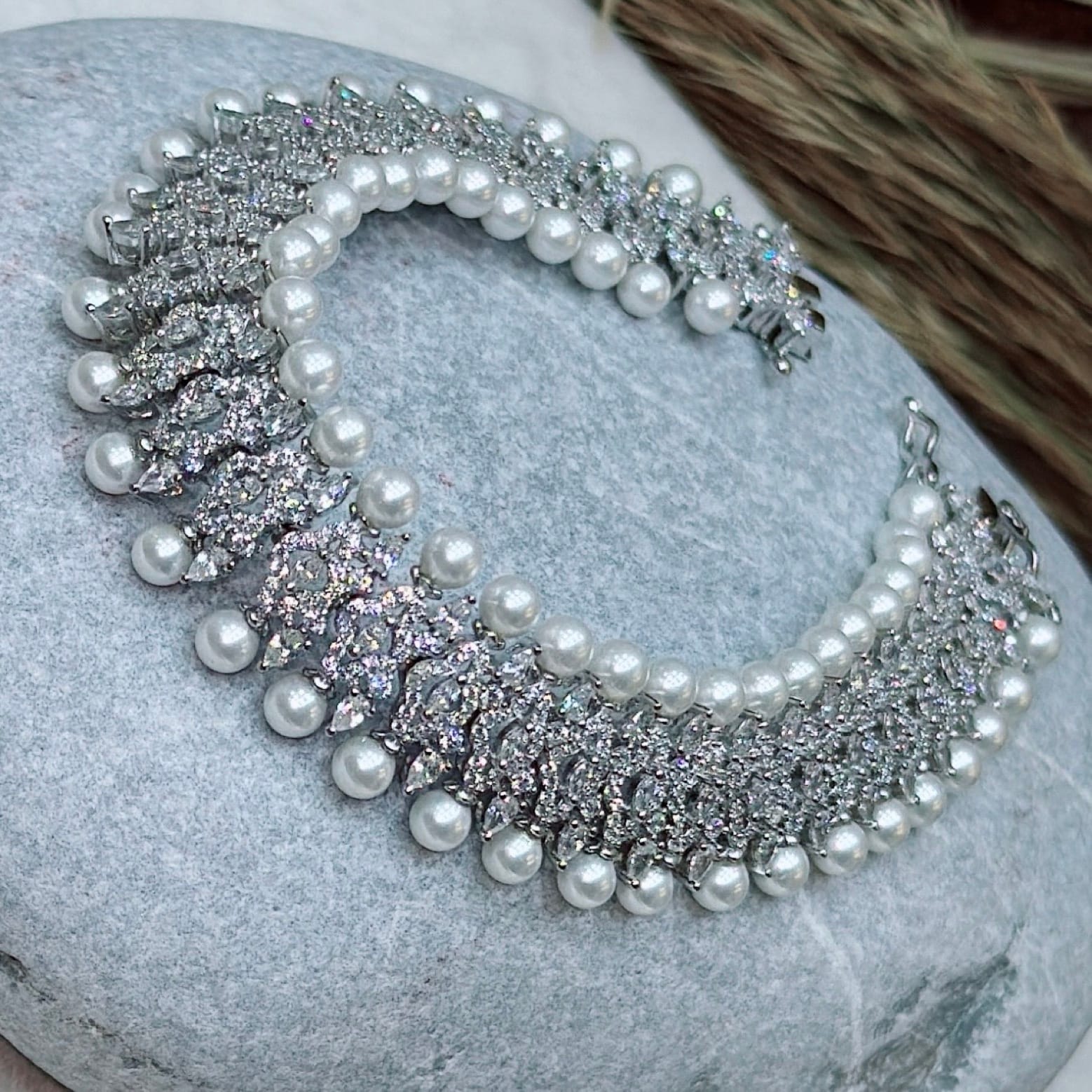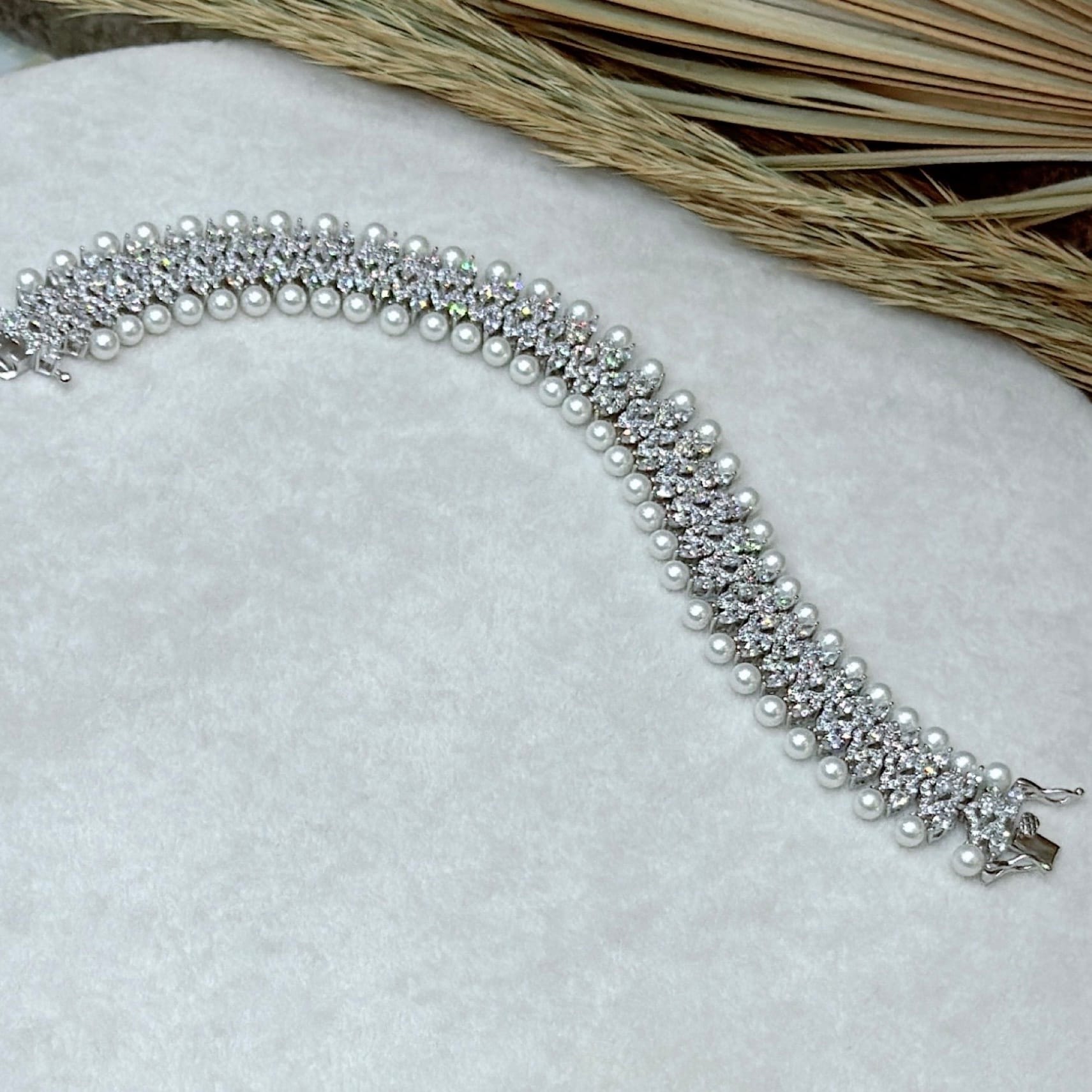 Pırlanta Montür İnci & Zirkon Taşlı Gümüş Bileklik