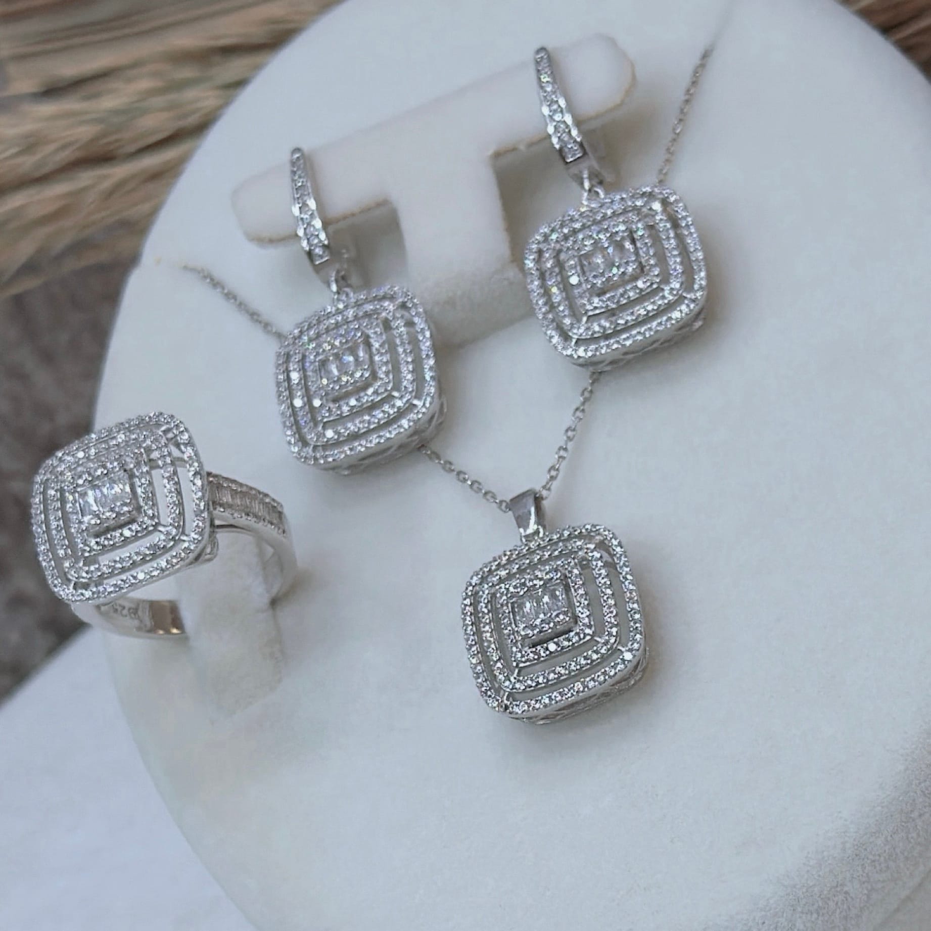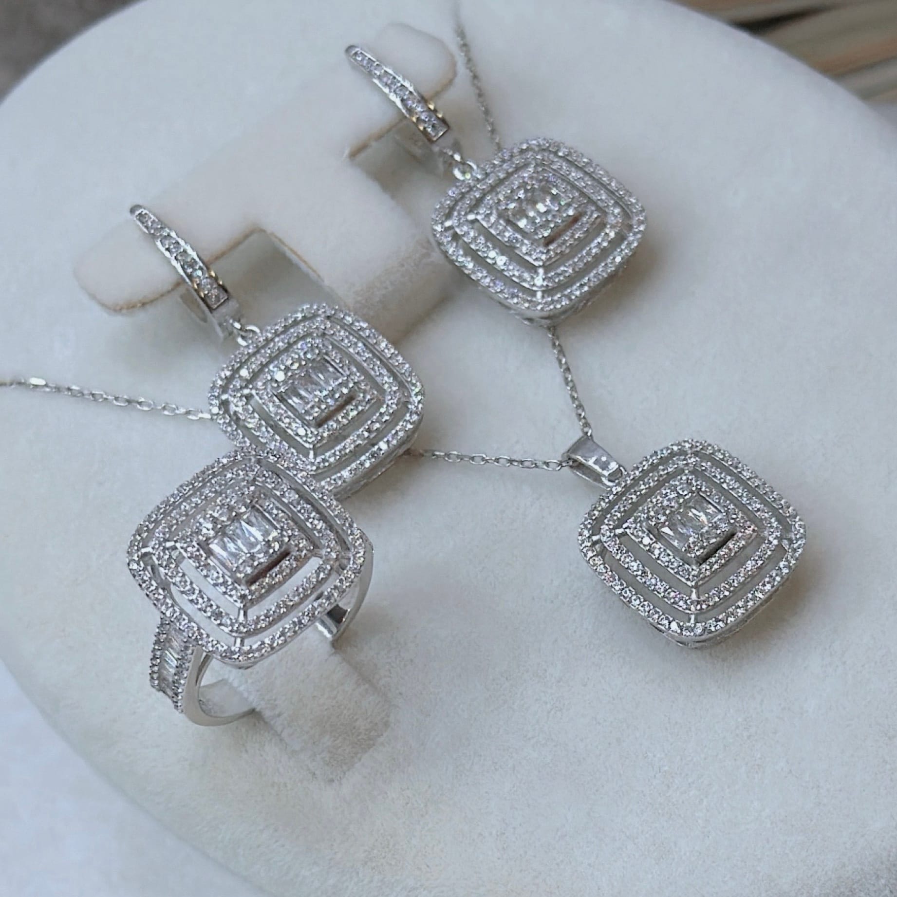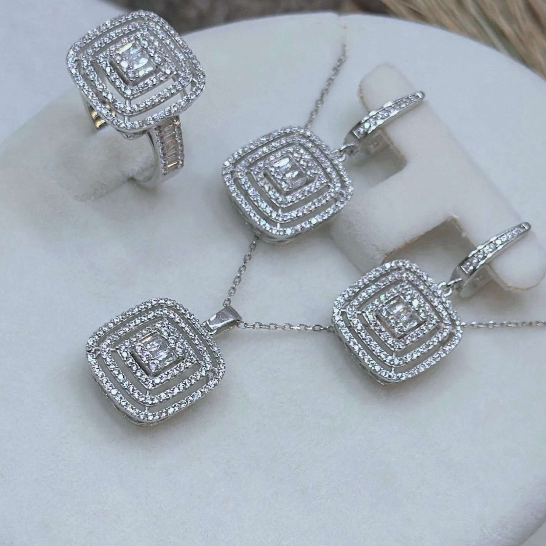 *Pırlanta Montür Gümüş Üçlü Set