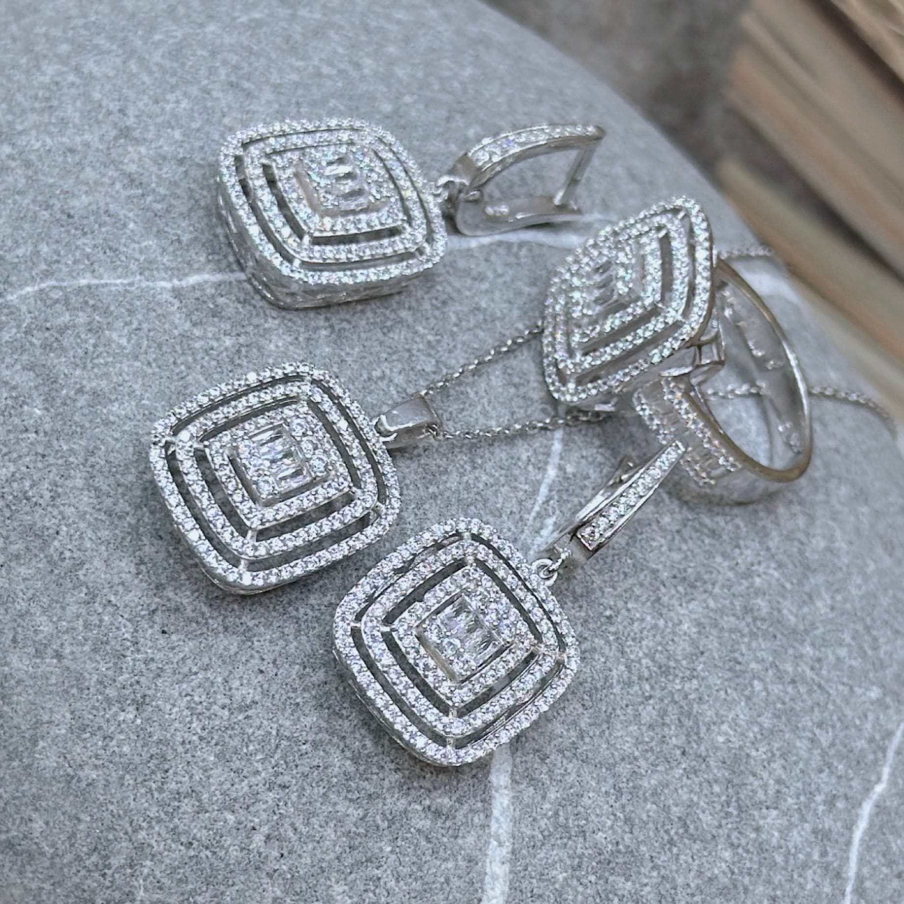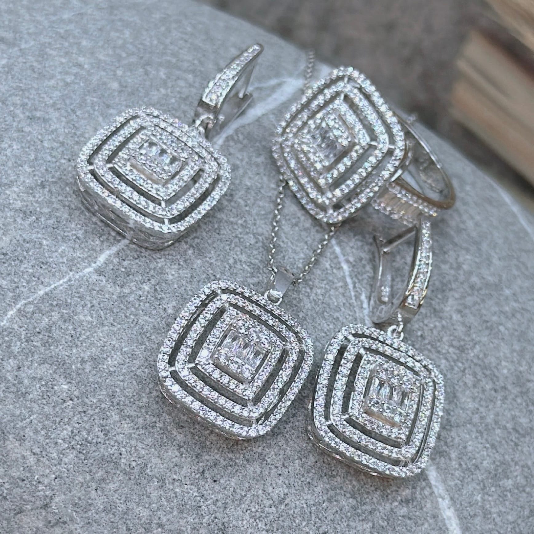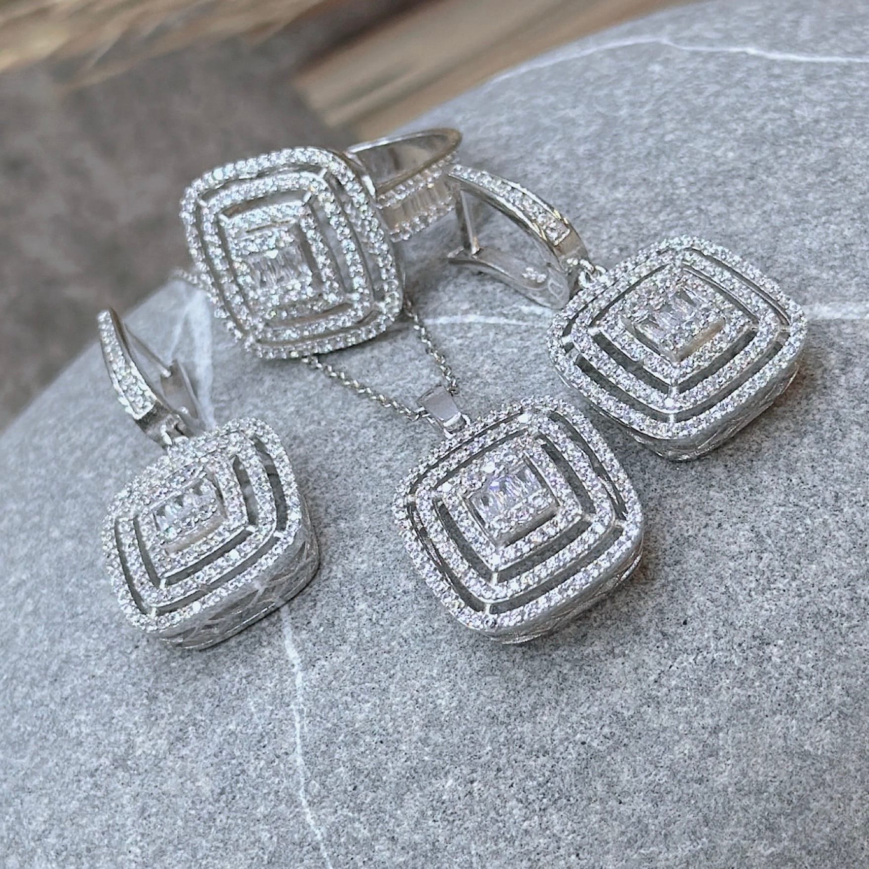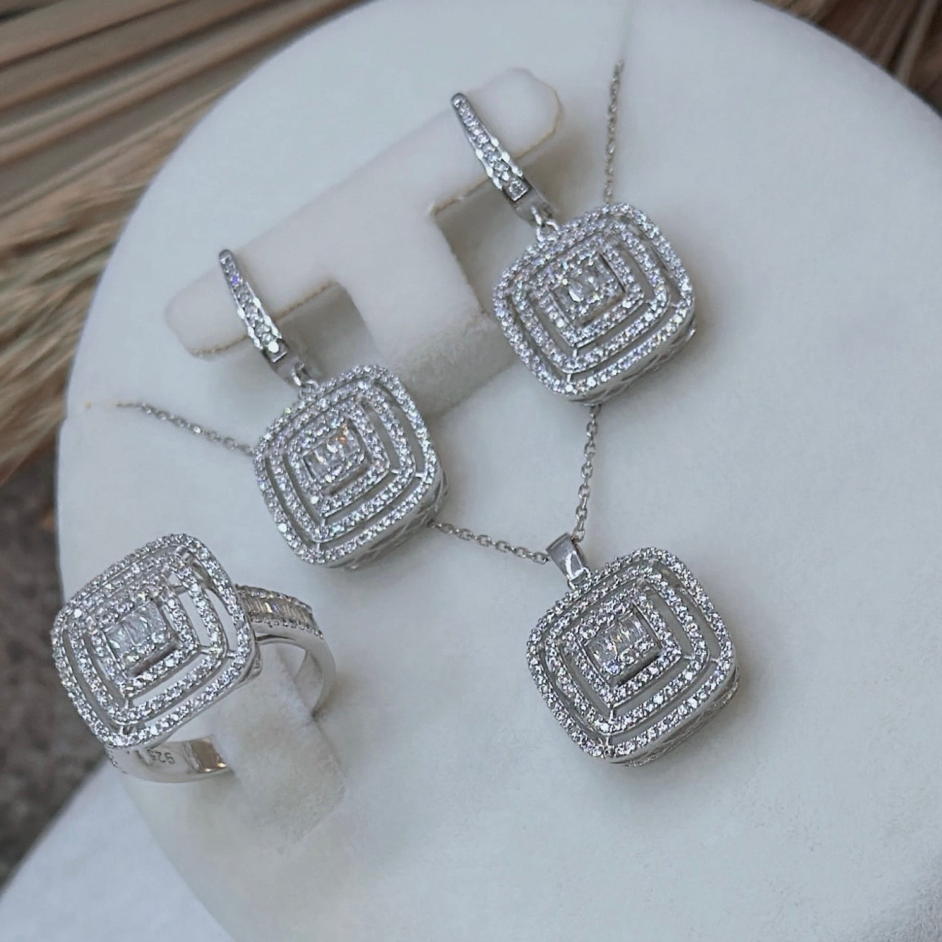 *Pırlanta Montür Gümüş Üçlü Set