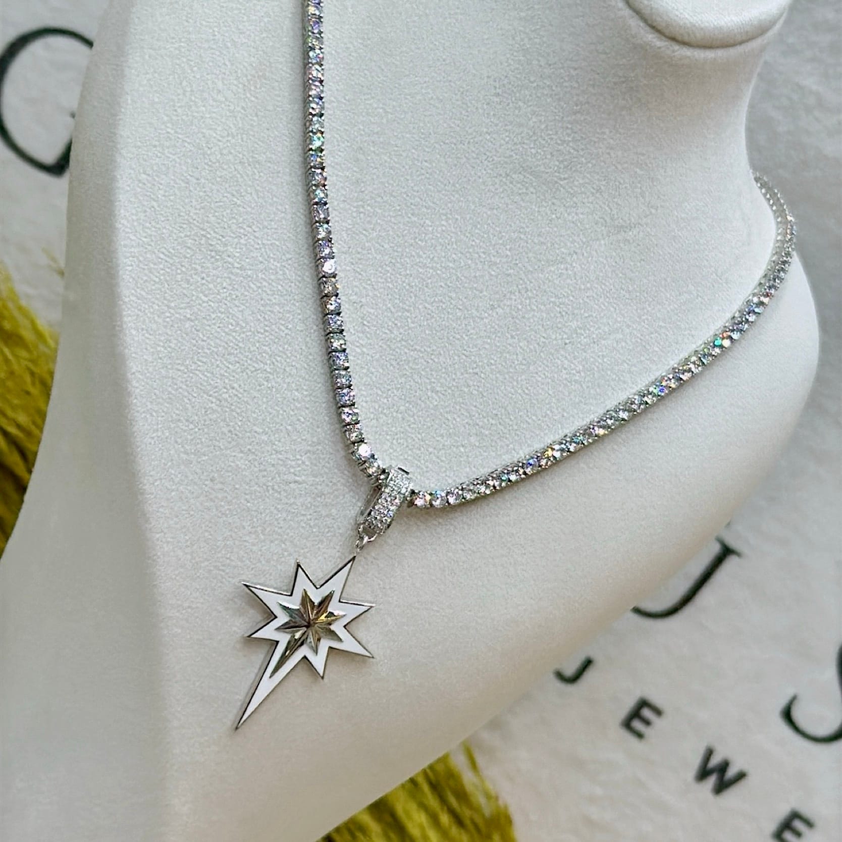 Pırlanta Montür Kutup Yıldızı Gümüş Suyolu Kolye